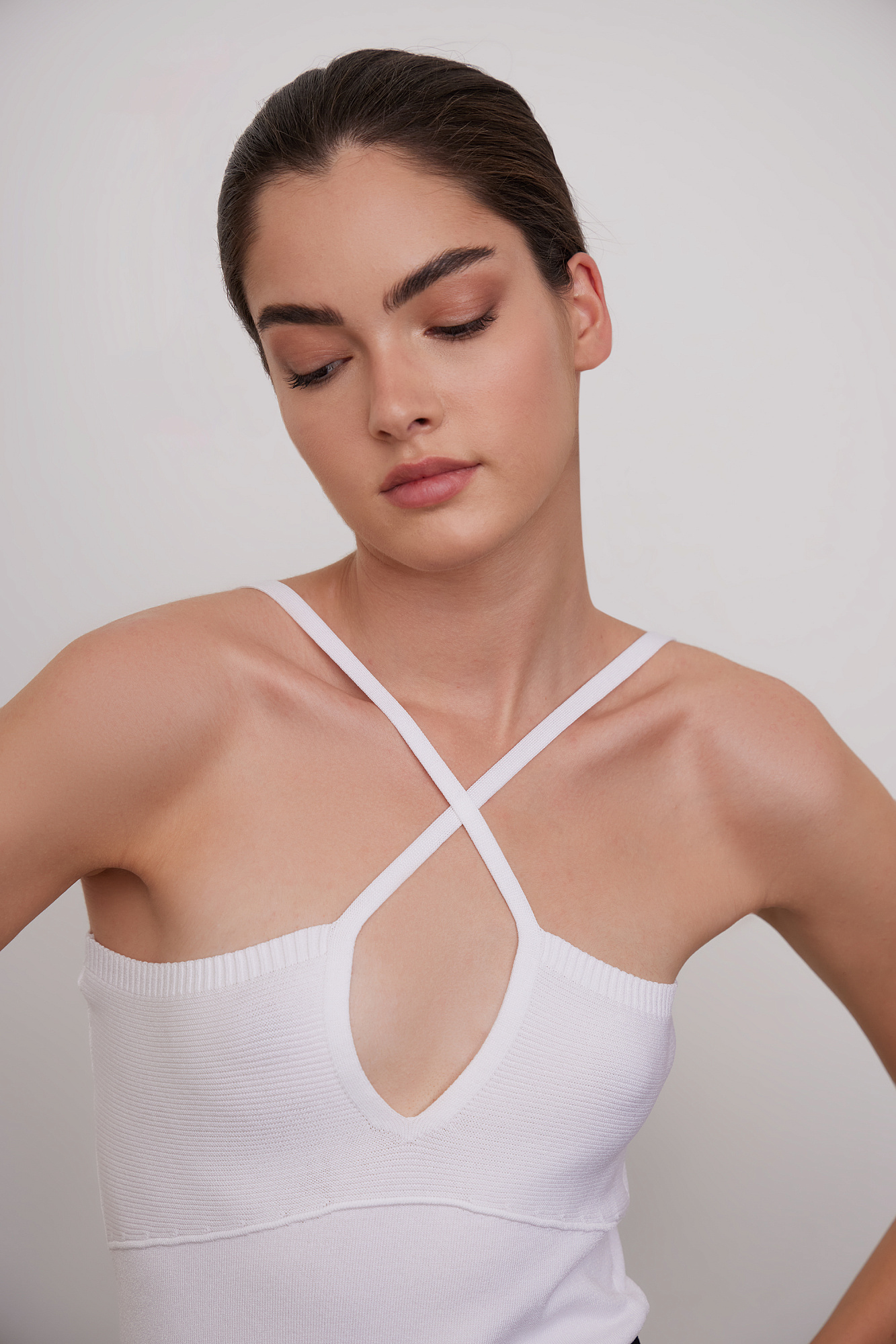 Боди из вискозы с тонкими бретелями и застежкой на крючке