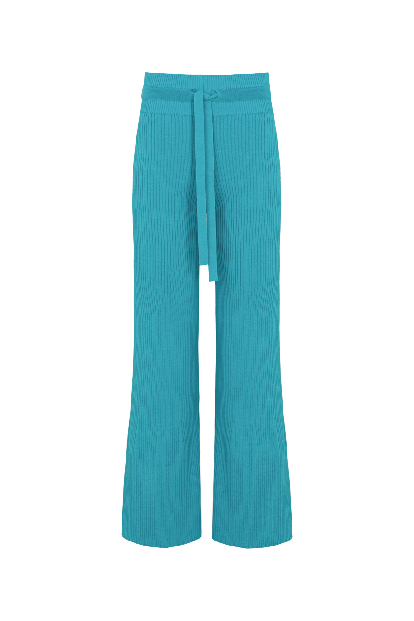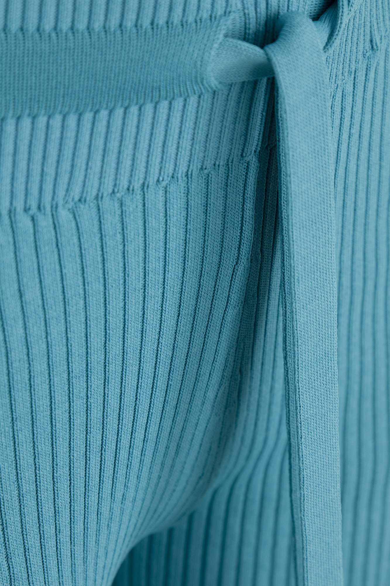 Трикотажные расклешенные брюки в рубчик, с разрезами снизу, высокая посадка, пояс на кулиске.