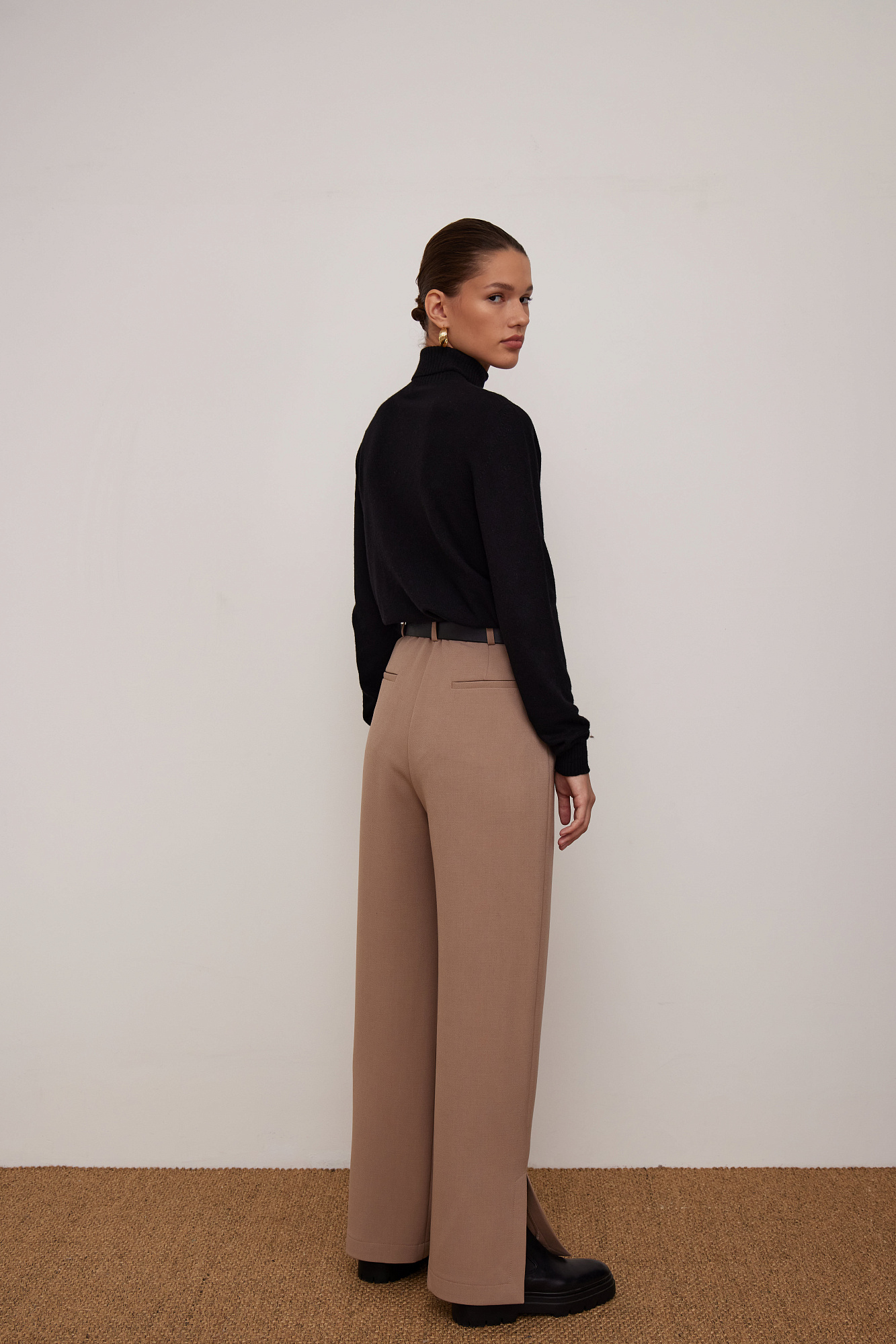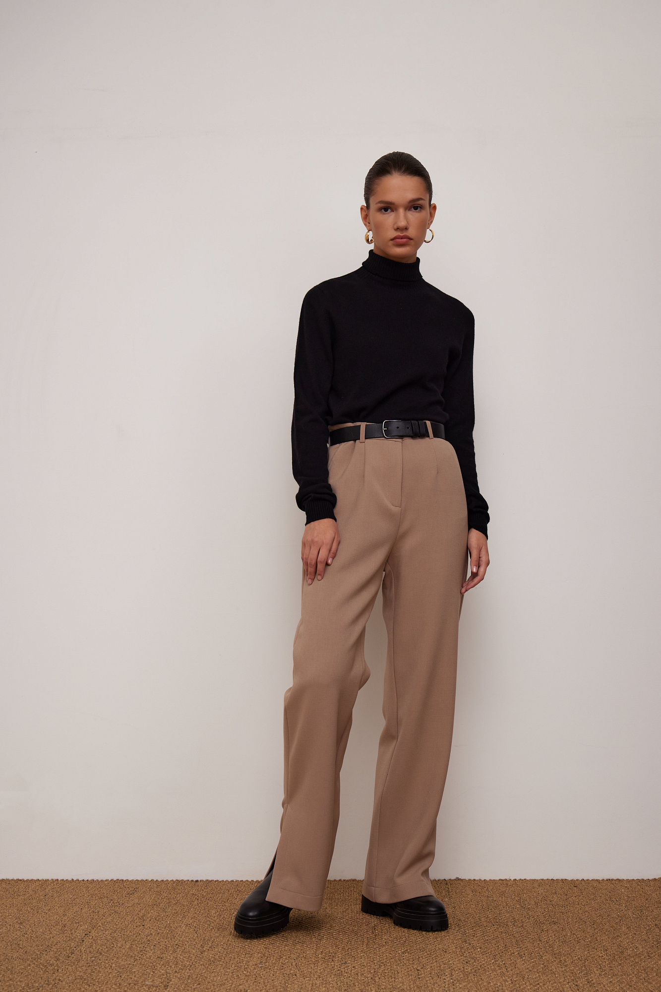 Классические брюки из поливискозы с разрезами по бокам. Модель со средней посадкой. Дополнить образ можно жакетом.