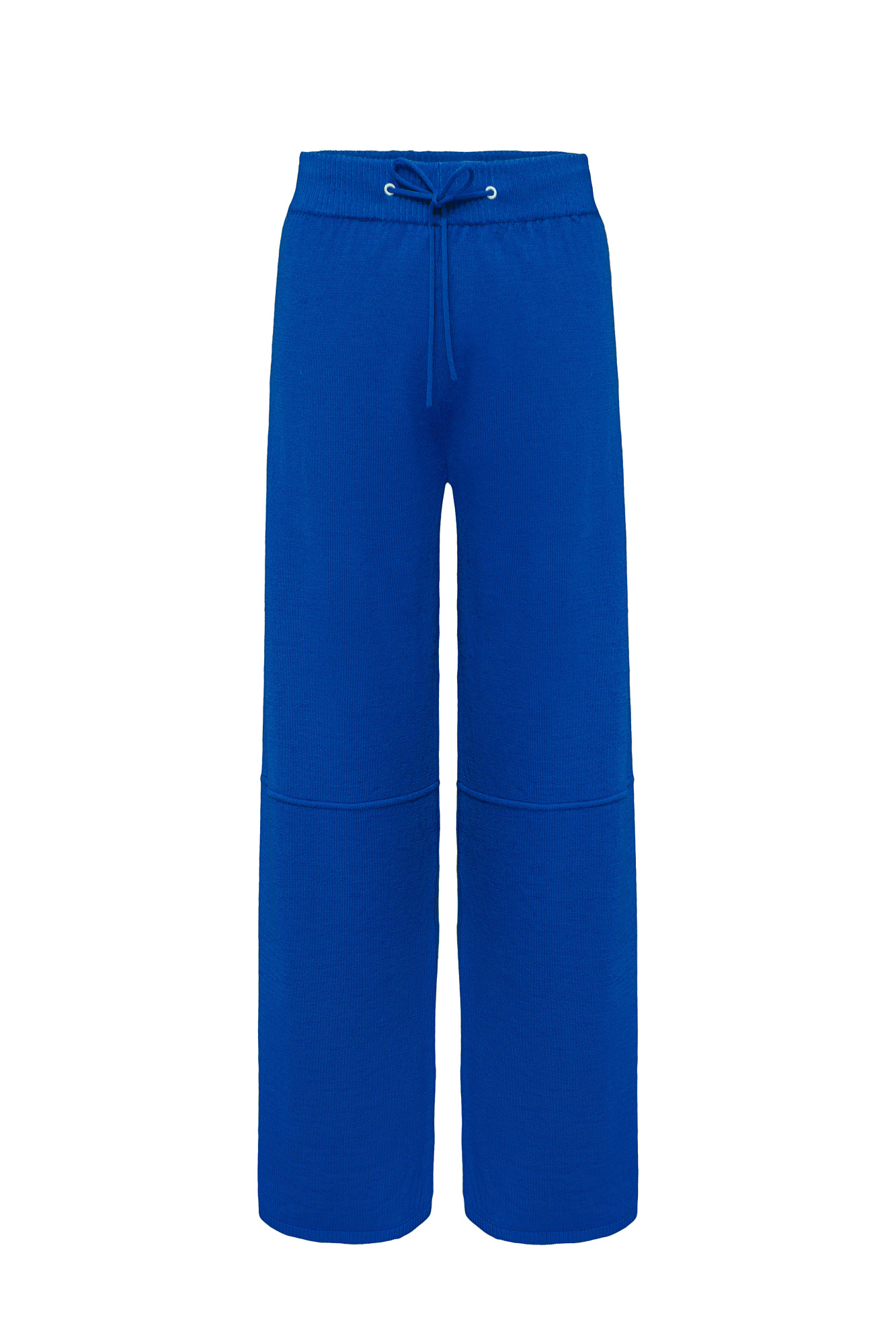 Трикотажные брюки из шерсти. Модель свободного силуэта, со средней посадкой, боковыми и задними карманами и эластичным пояс в рубчик, дополненным тонким шнурком.