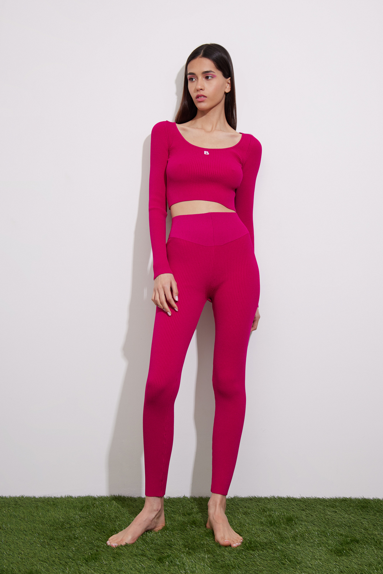 Тонкие спортивные леггинсы из вискозы. Модель с высоким эластичным поясом. Изделие выполнено в рубчик.