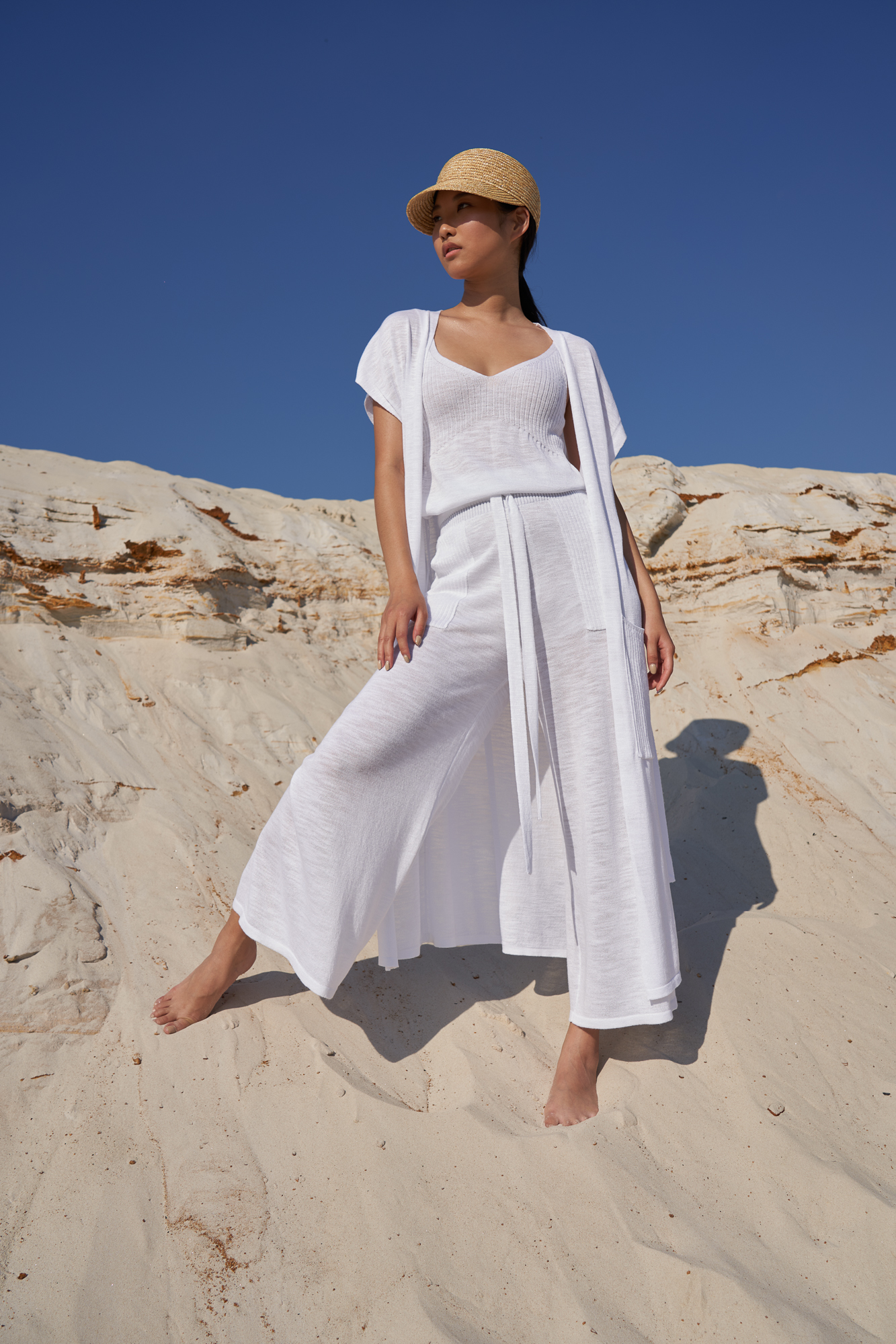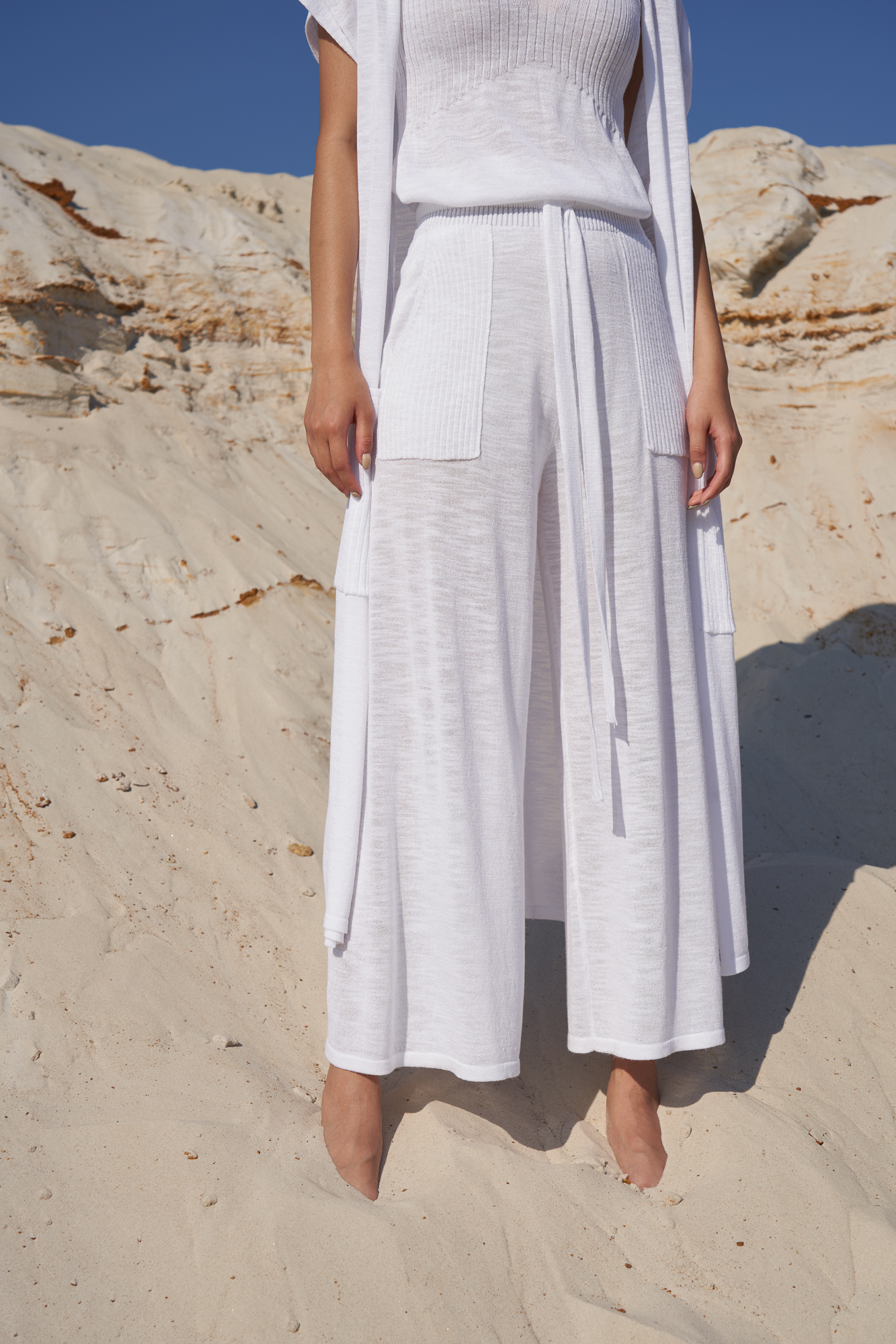 Прямые брюки из вискозы с наклаными карманами и регулируемой кулиской на талии