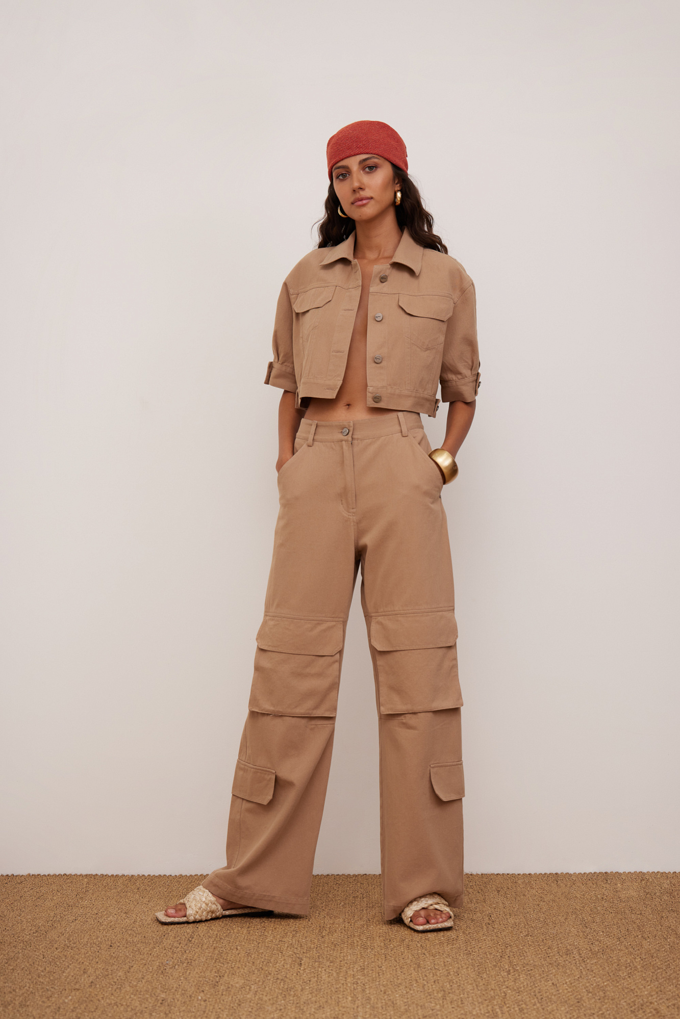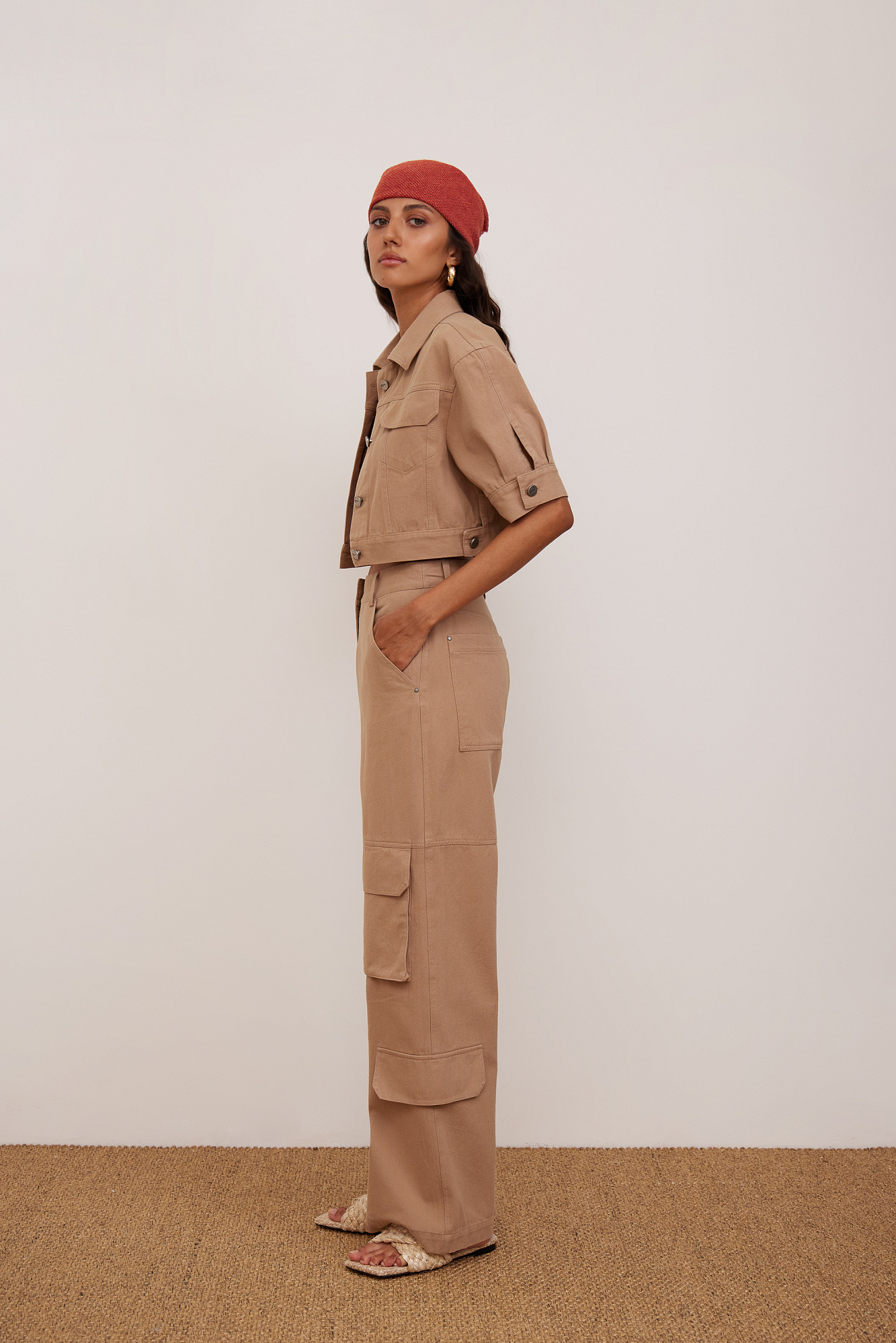 Брюки карго из 100% хлопка. Застежка на молнию и пуговицу.
