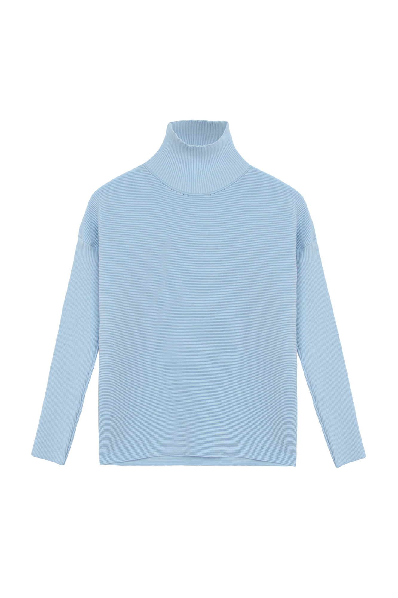 Трикотажный джемпер из вискозы в мелкий валик. Модель с длинным рукавом и воротником-стойкой.