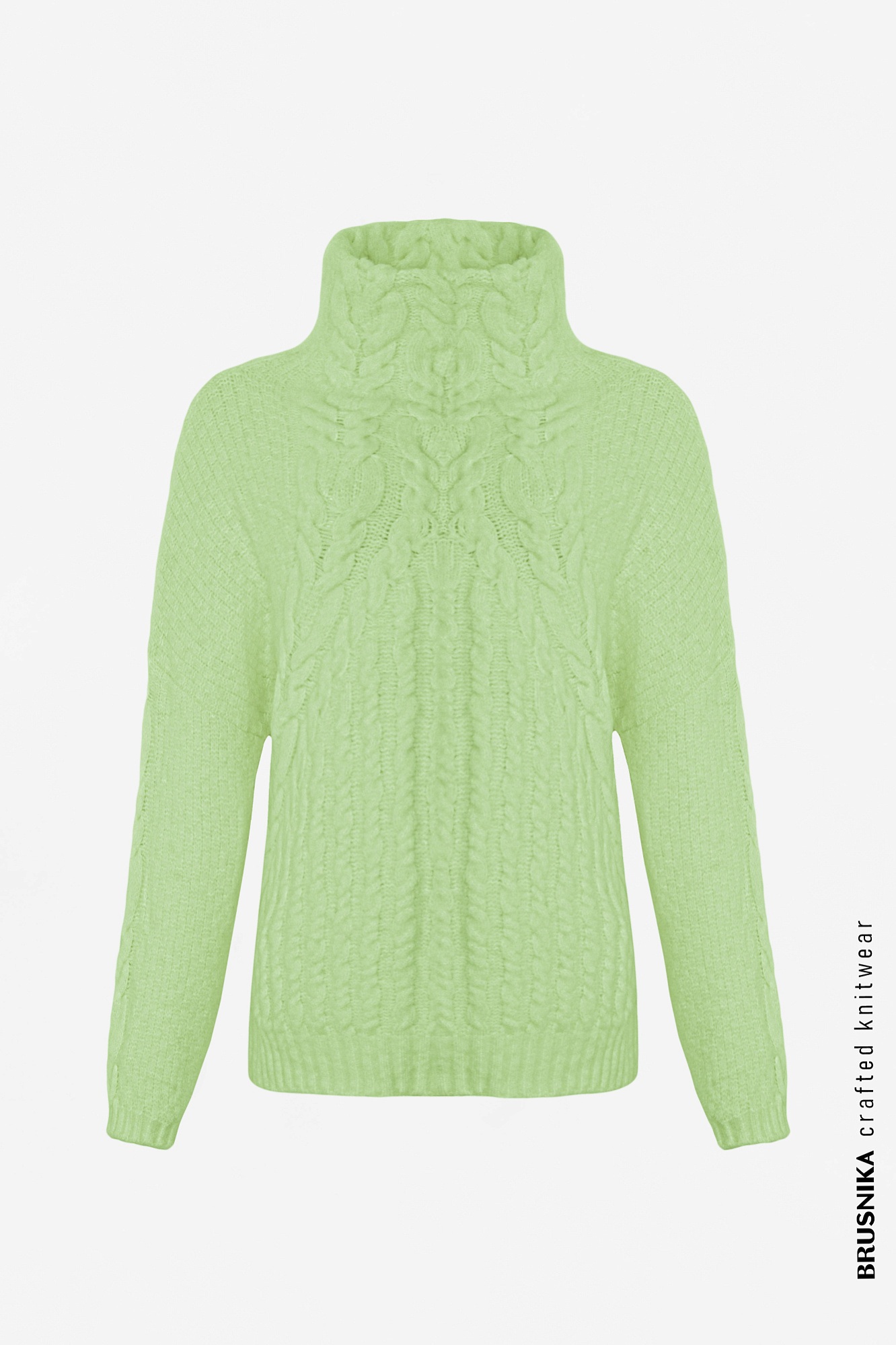 Объемный джемпер из шерсти и мохера с высоким горлом. Фактурный узор из кос.