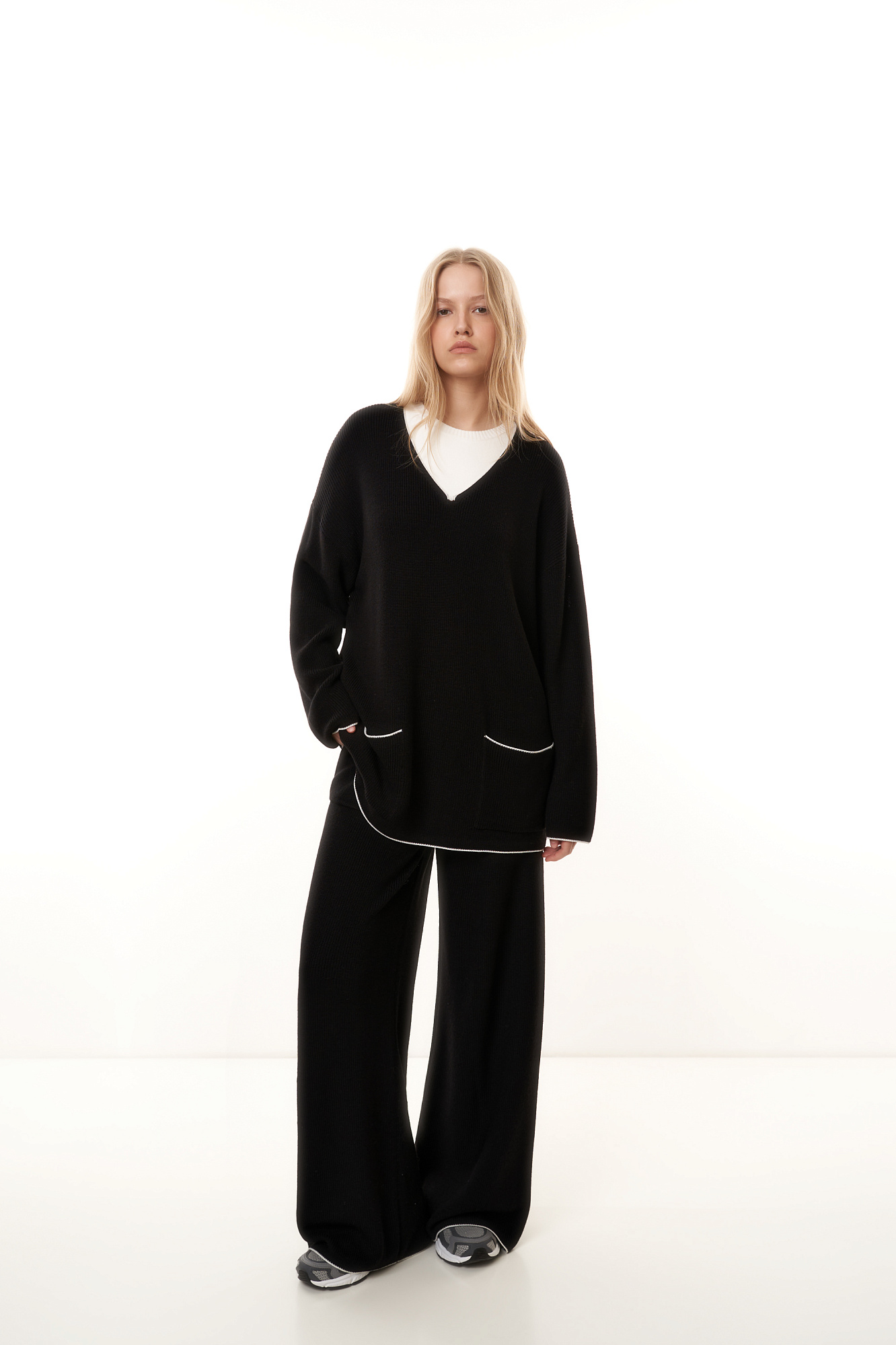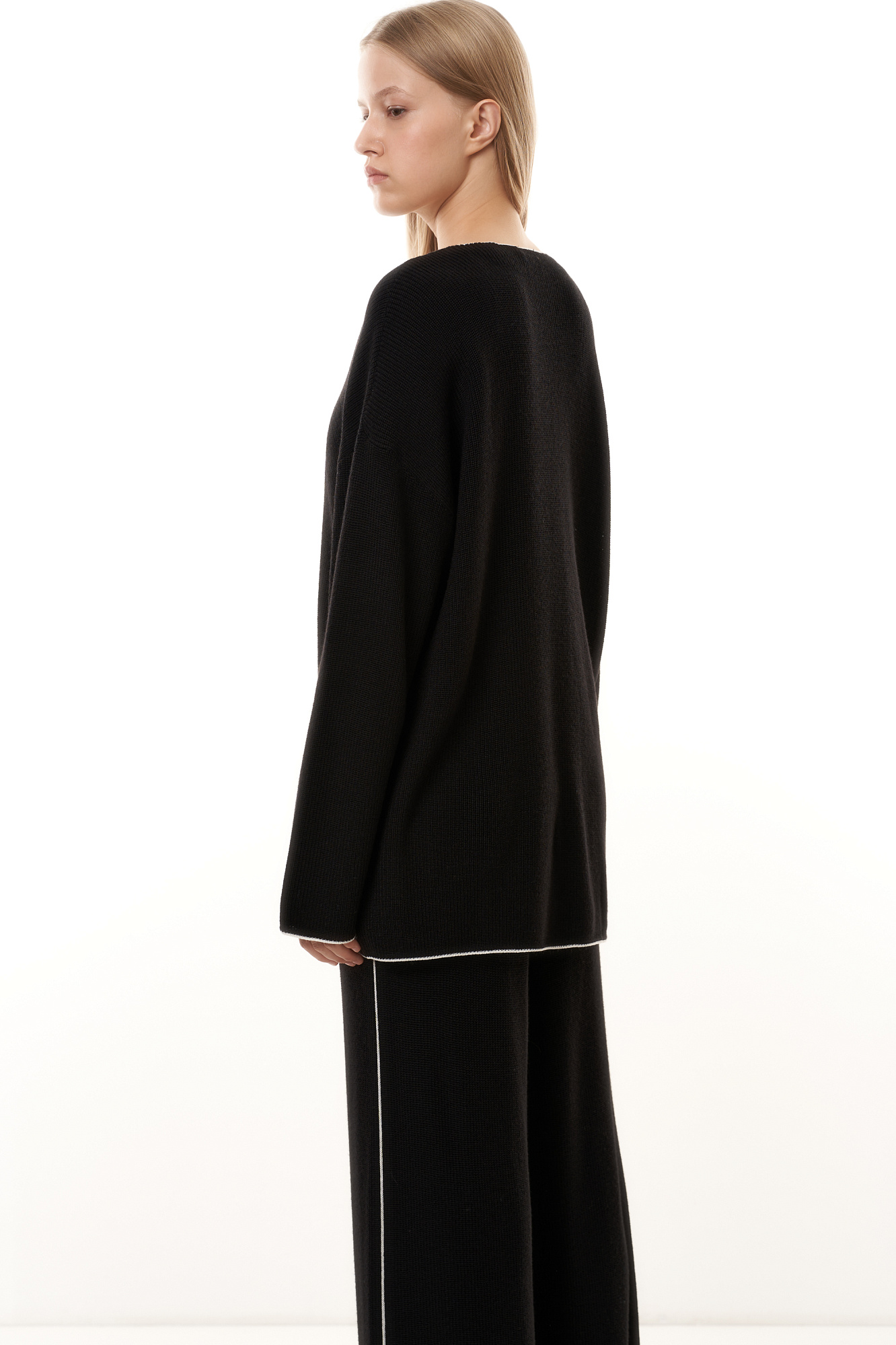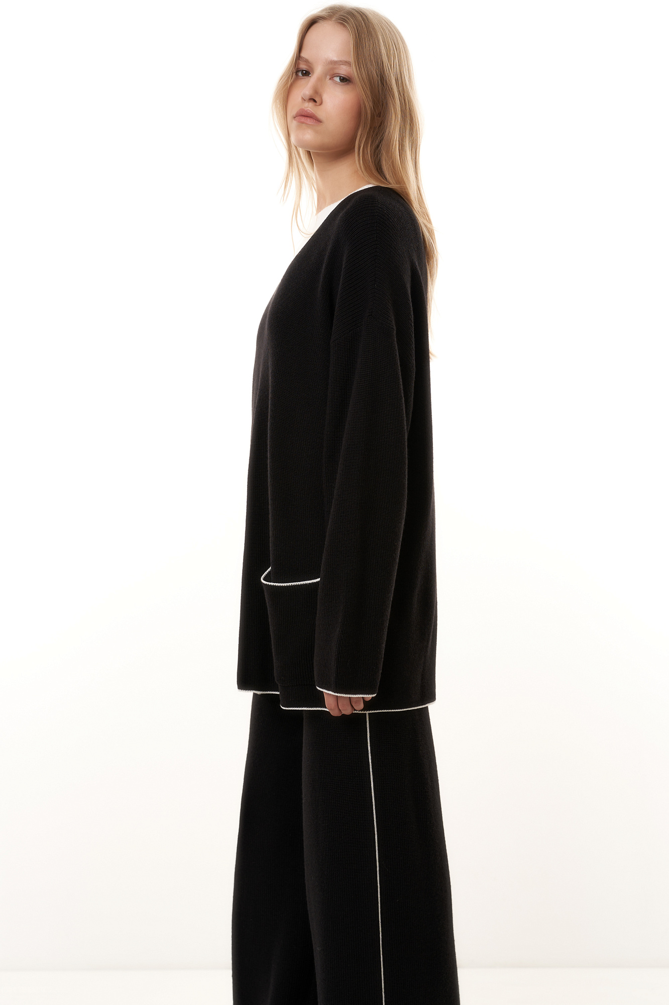 Джемпер из шерсти с карманами и контрастной окантовкой