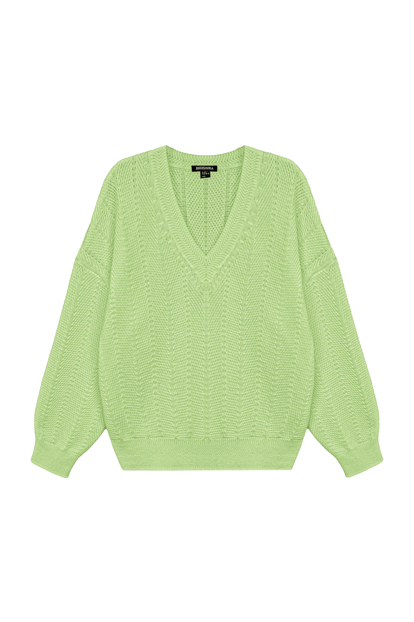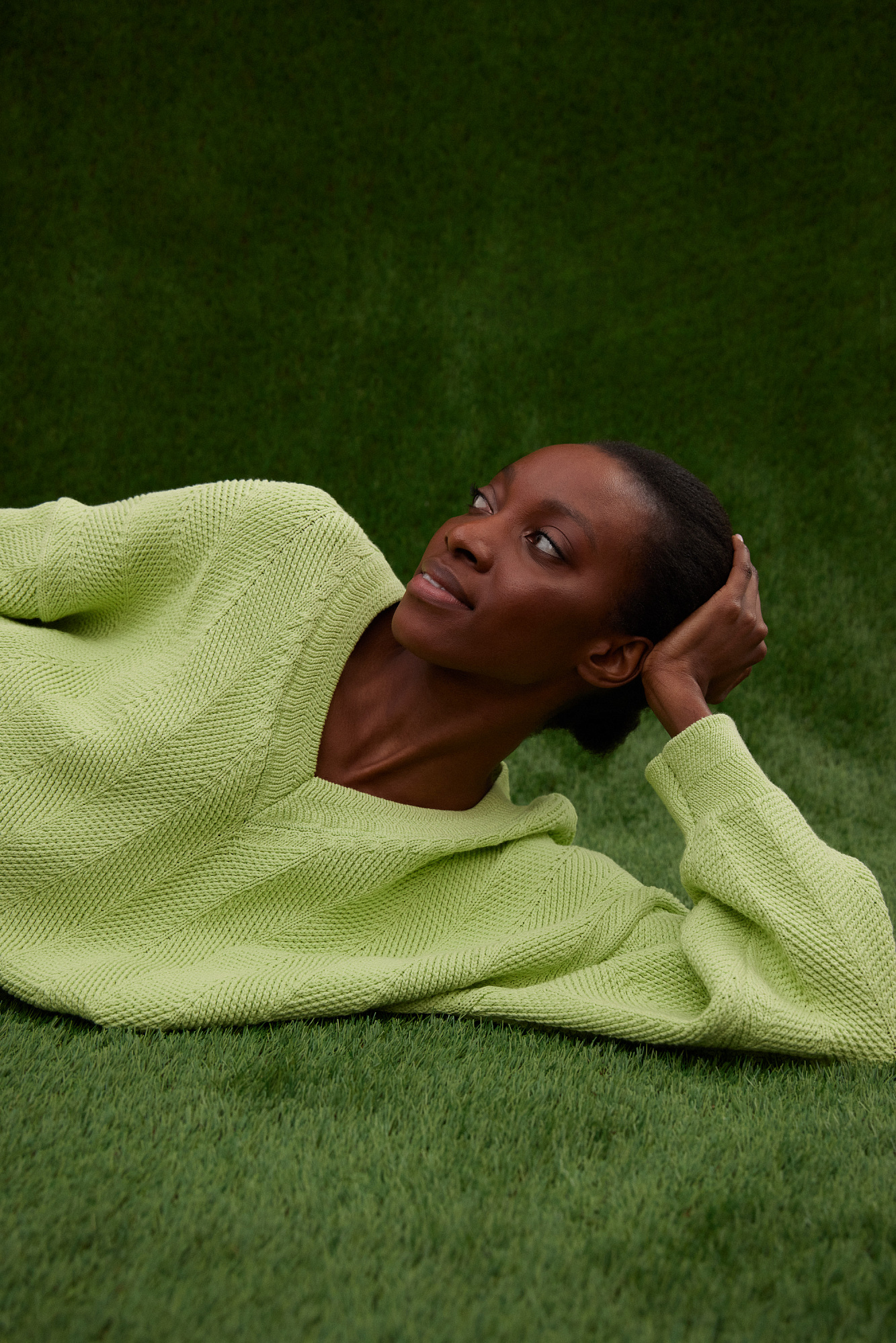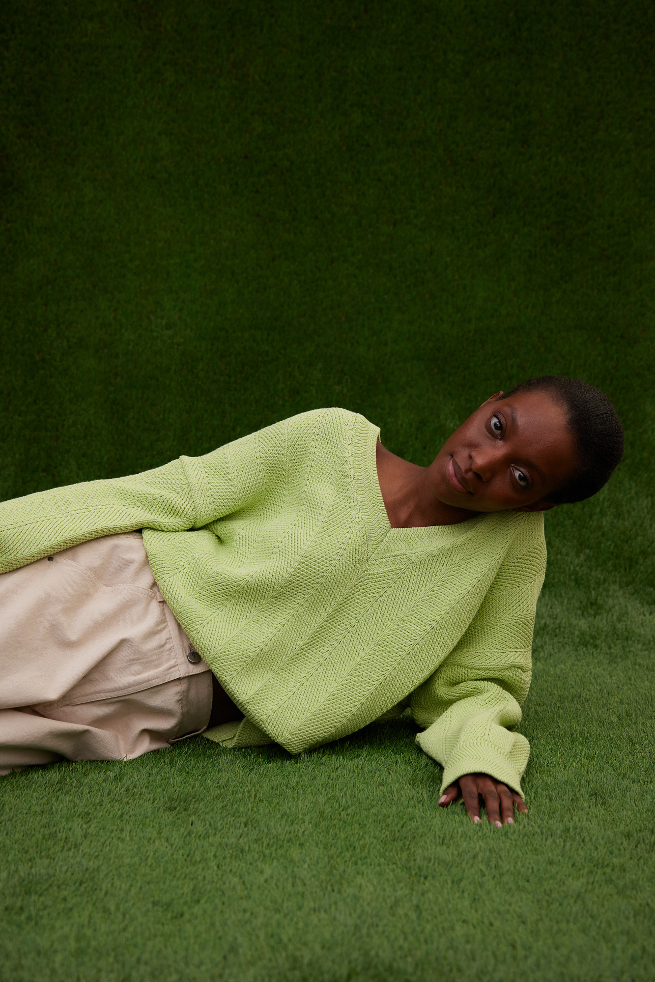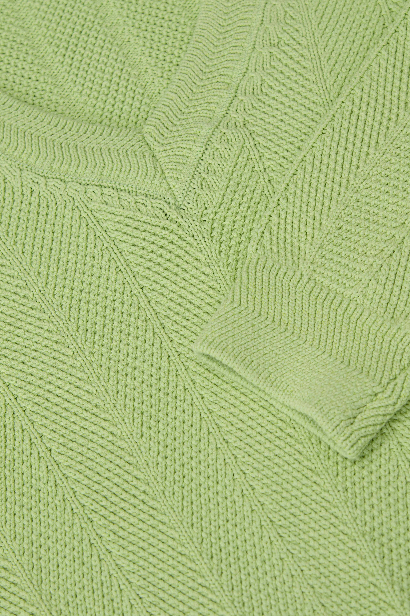 Джемпер фактурной вязки из хлопка с V-образным вырезом.