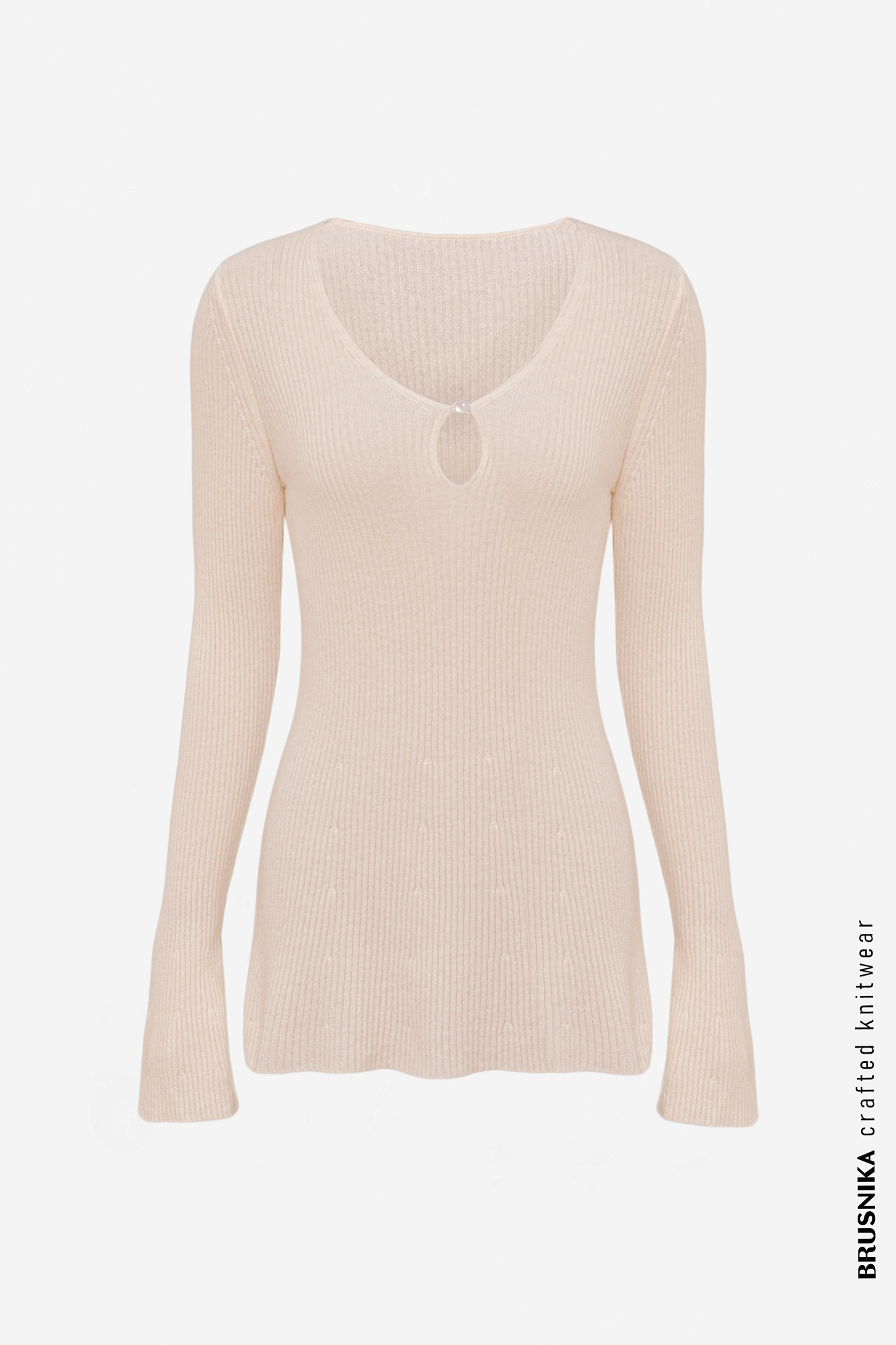 Джемпер из 100% кашемира с V-образным вырезом и "капелькой" на груди на пуговице