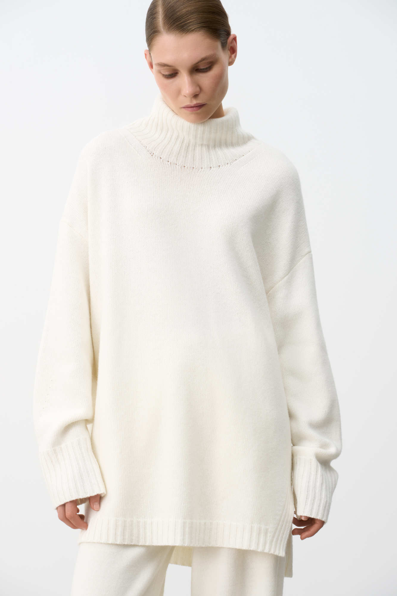 Джемпер свободного силуэта из кашемира и шерсти с высоким воротом и с боковыми разрезами
