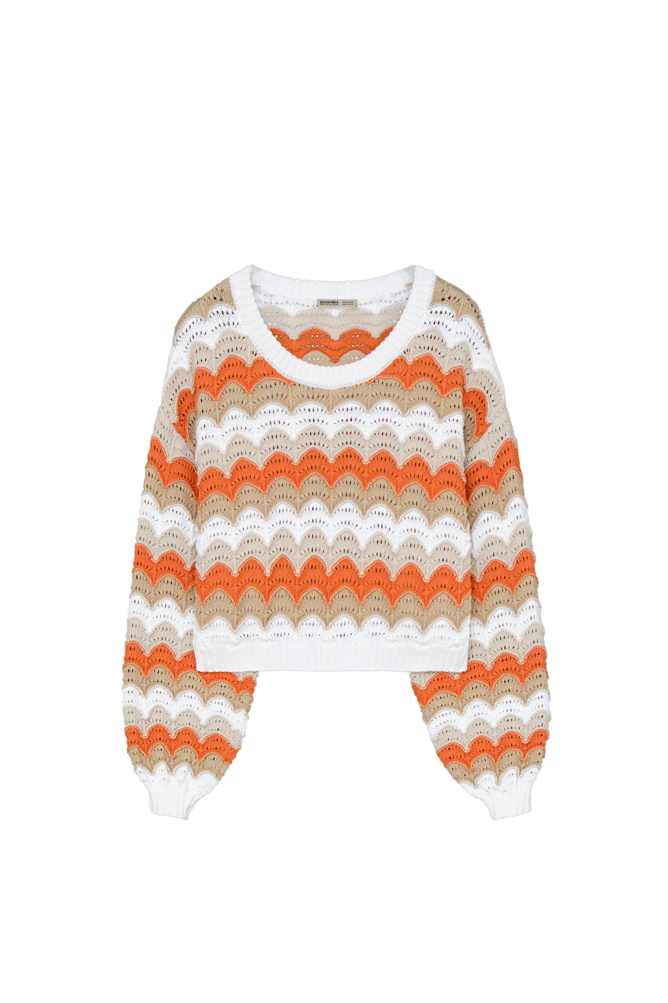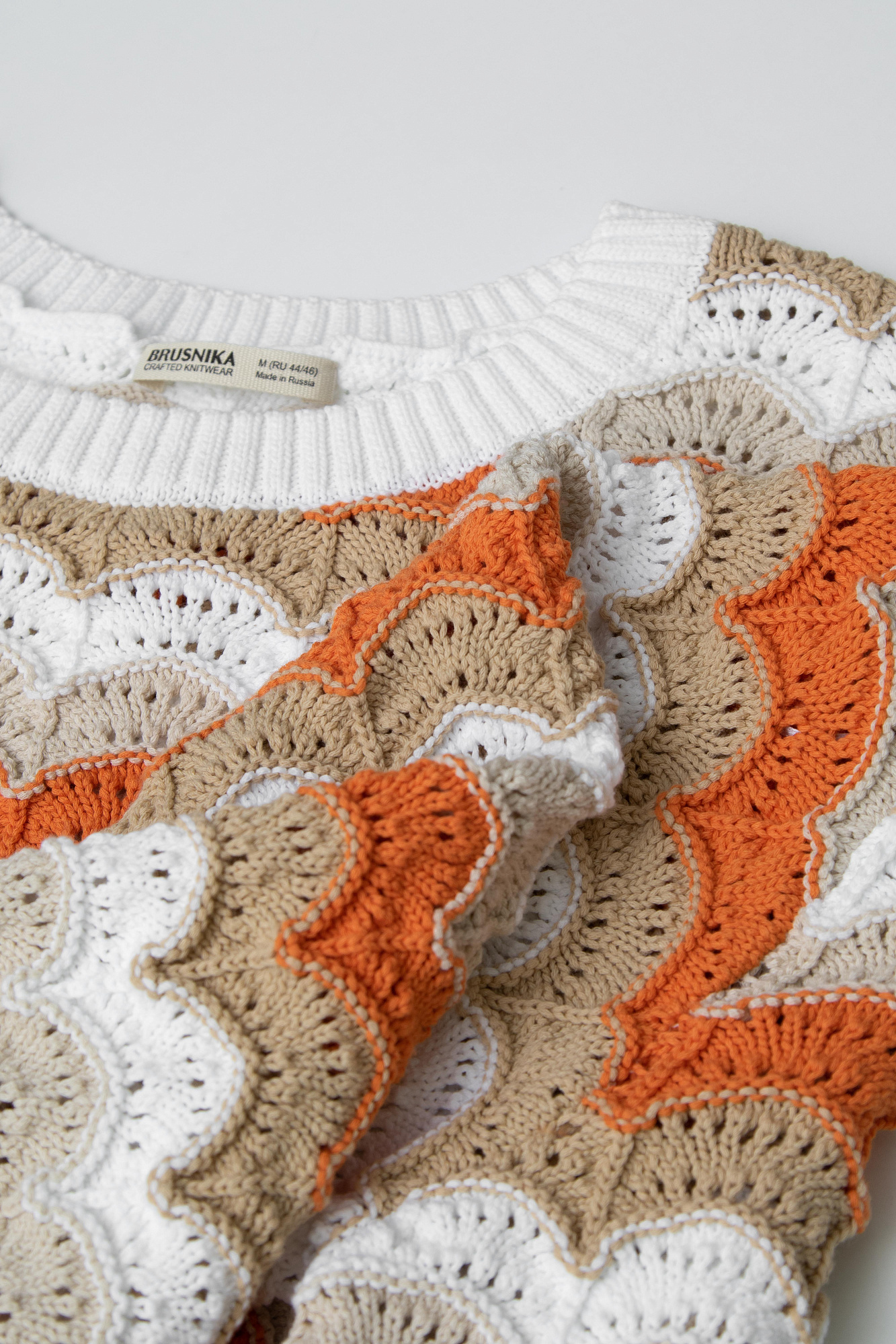 Трикотажный джемпер из хлопка с волнистым узором. Манжеты и низ изделия из эластичной ленты в рубчик