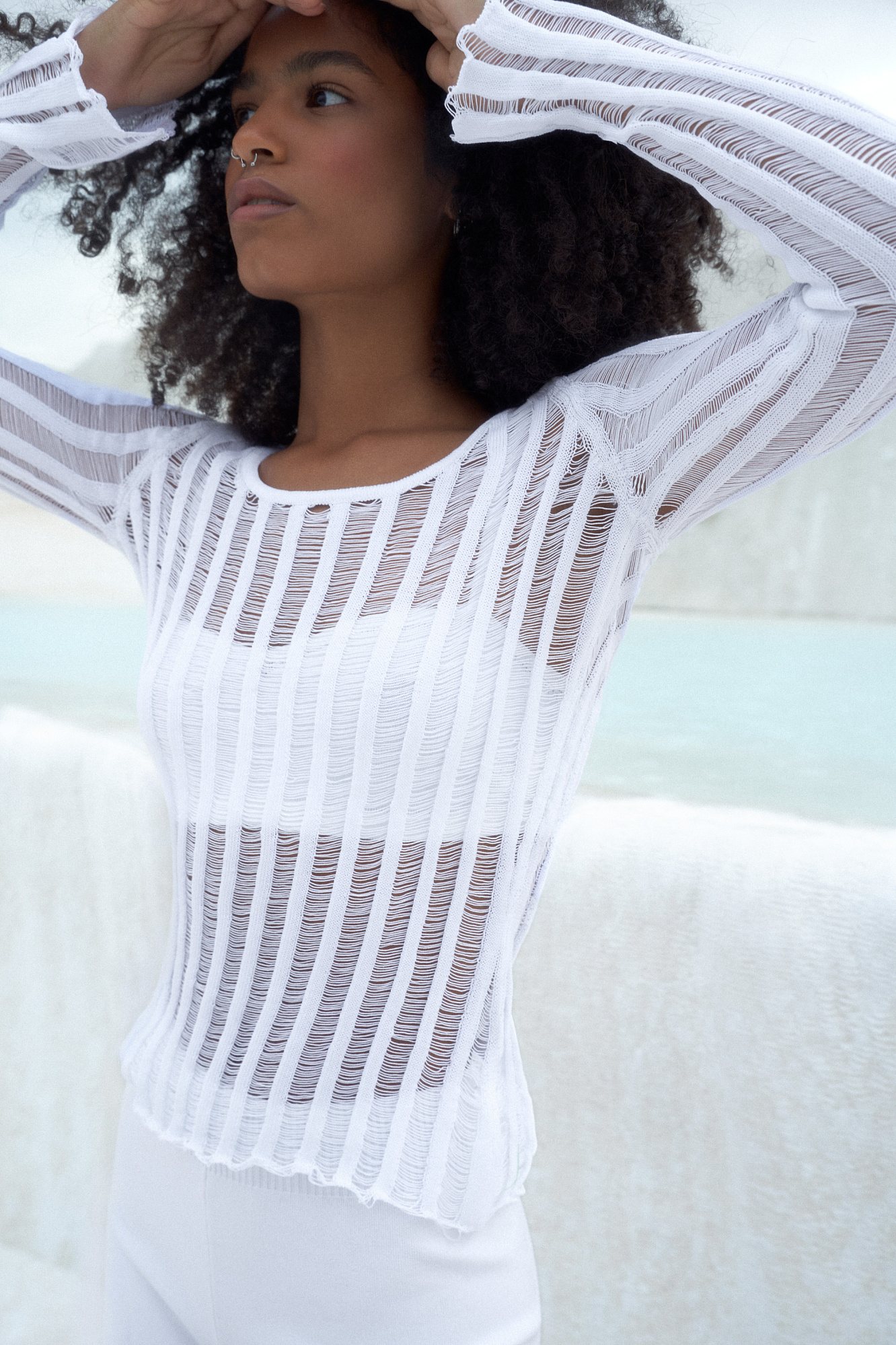 Трикотажный джемпер выполнен из полупрозрачного мерсеризованного хлопка, который является прочным, гипоаллергенным и имеет лучшие характеристики по сравнению с обычным хлопком. Он не подвержен деформации, не выцветает, при этом сохраняет мягкость и комфорт при ношении.