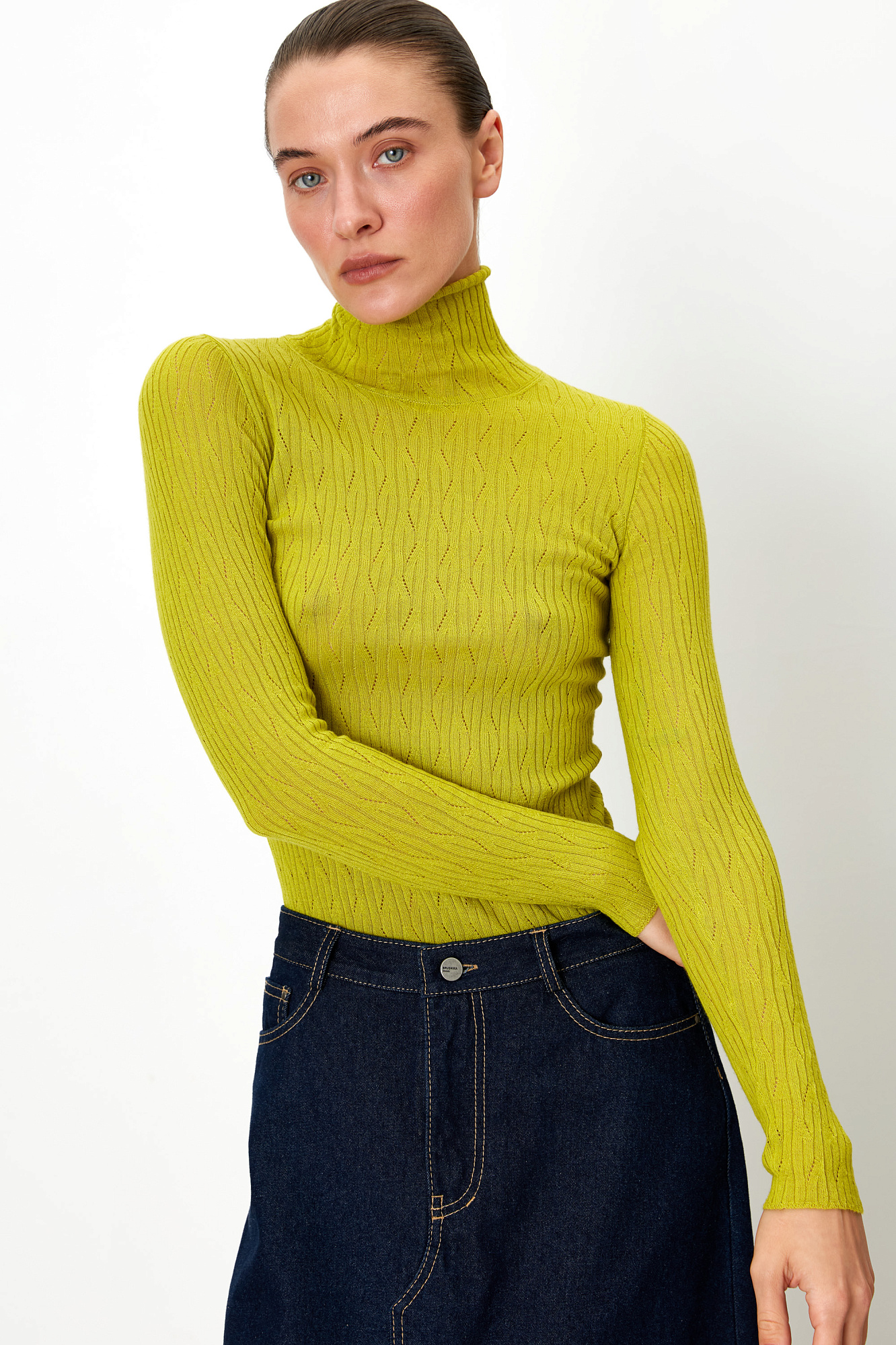 Ажурная водолазка из шерсти мериноса экстрафайн
