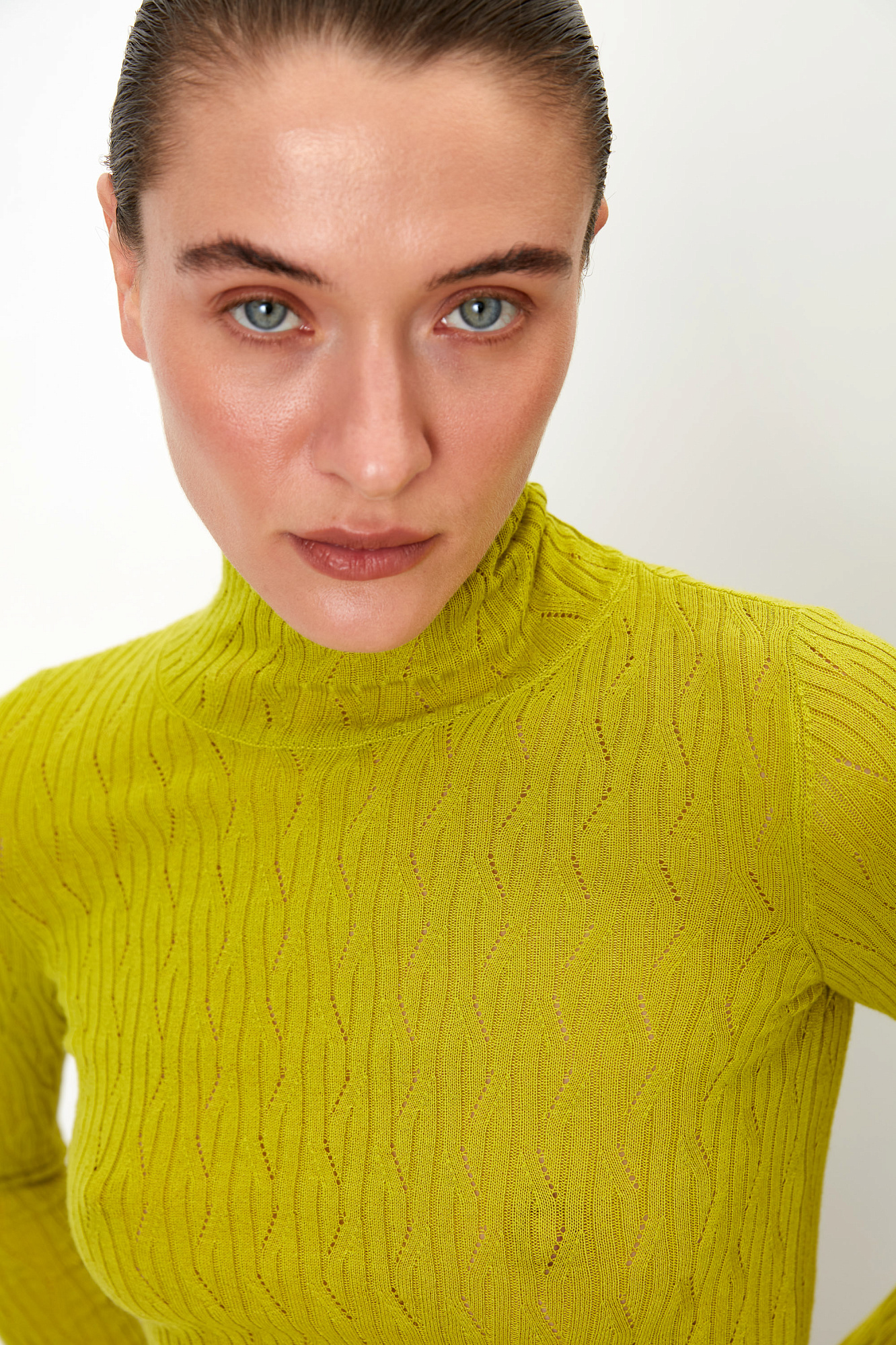 Ажурная полупрозрачная водолазка из шерсти мериноса экстрафайн.