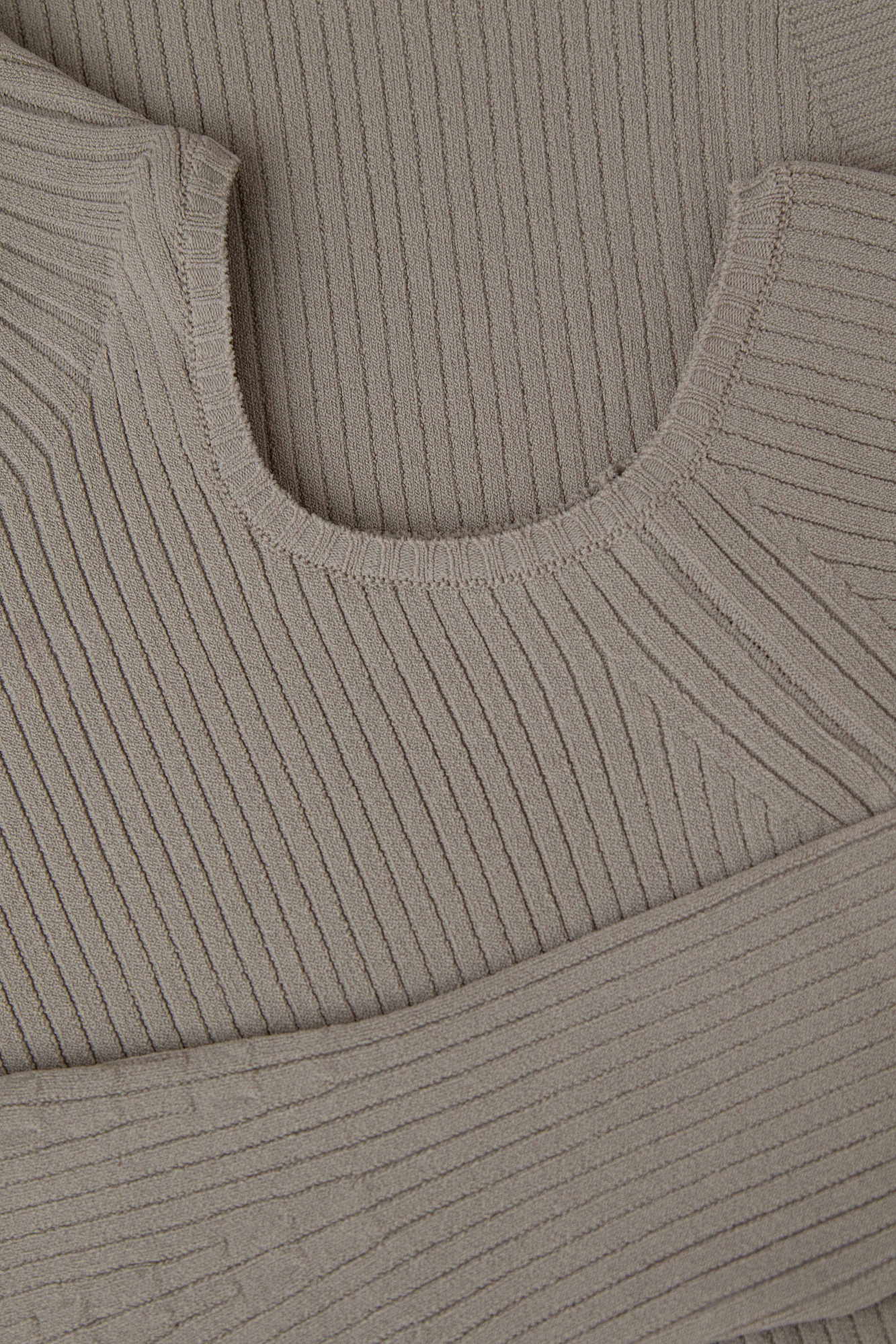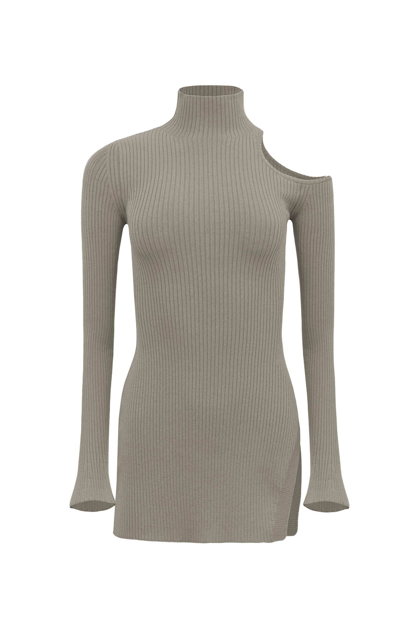 Удлиненная водолазка с вырезом на плече. Расклешенные к низу рукава.