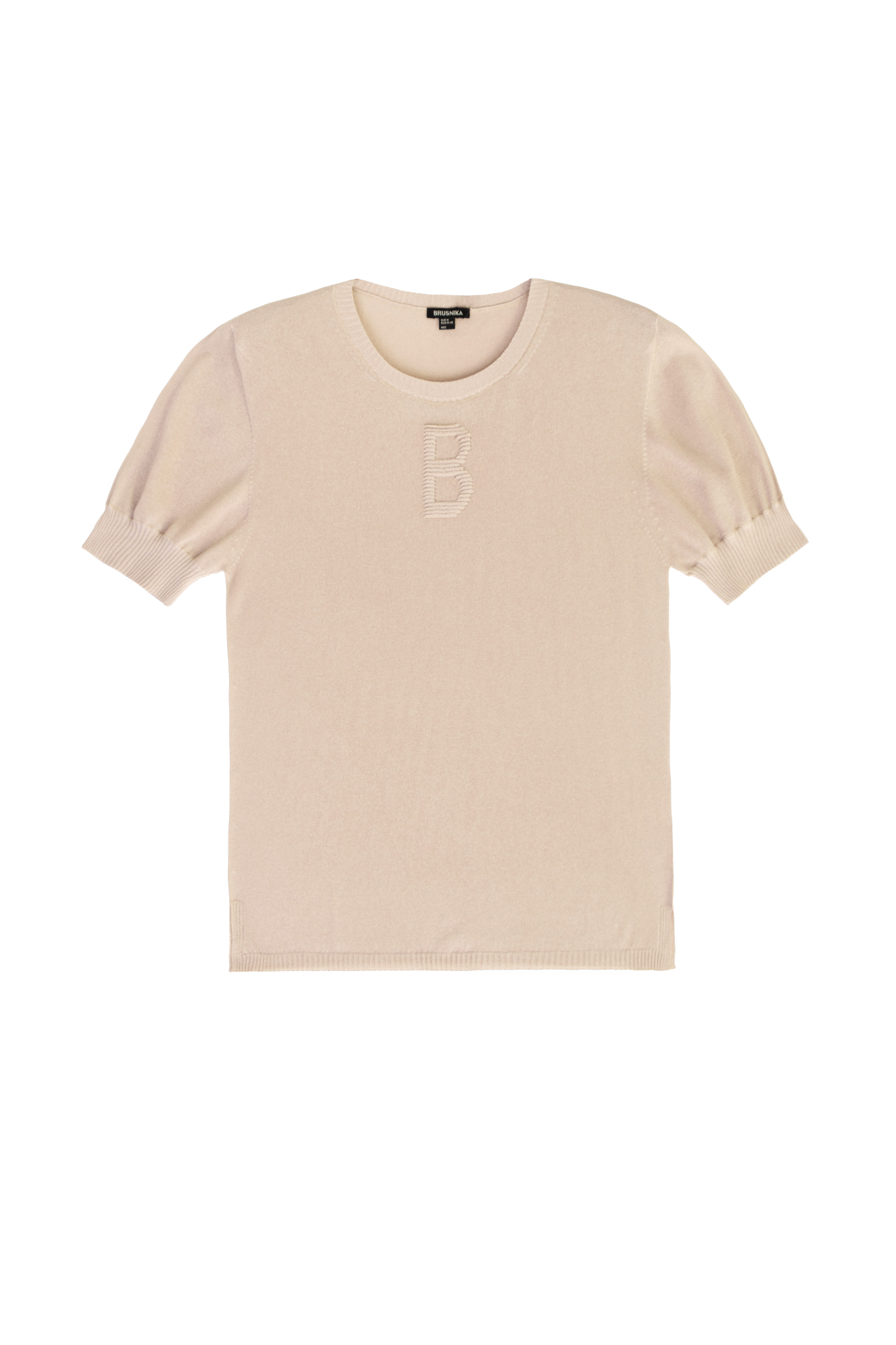 Цельновязаная футболка с рукавами фонарики. По бокам небольшие разрезы