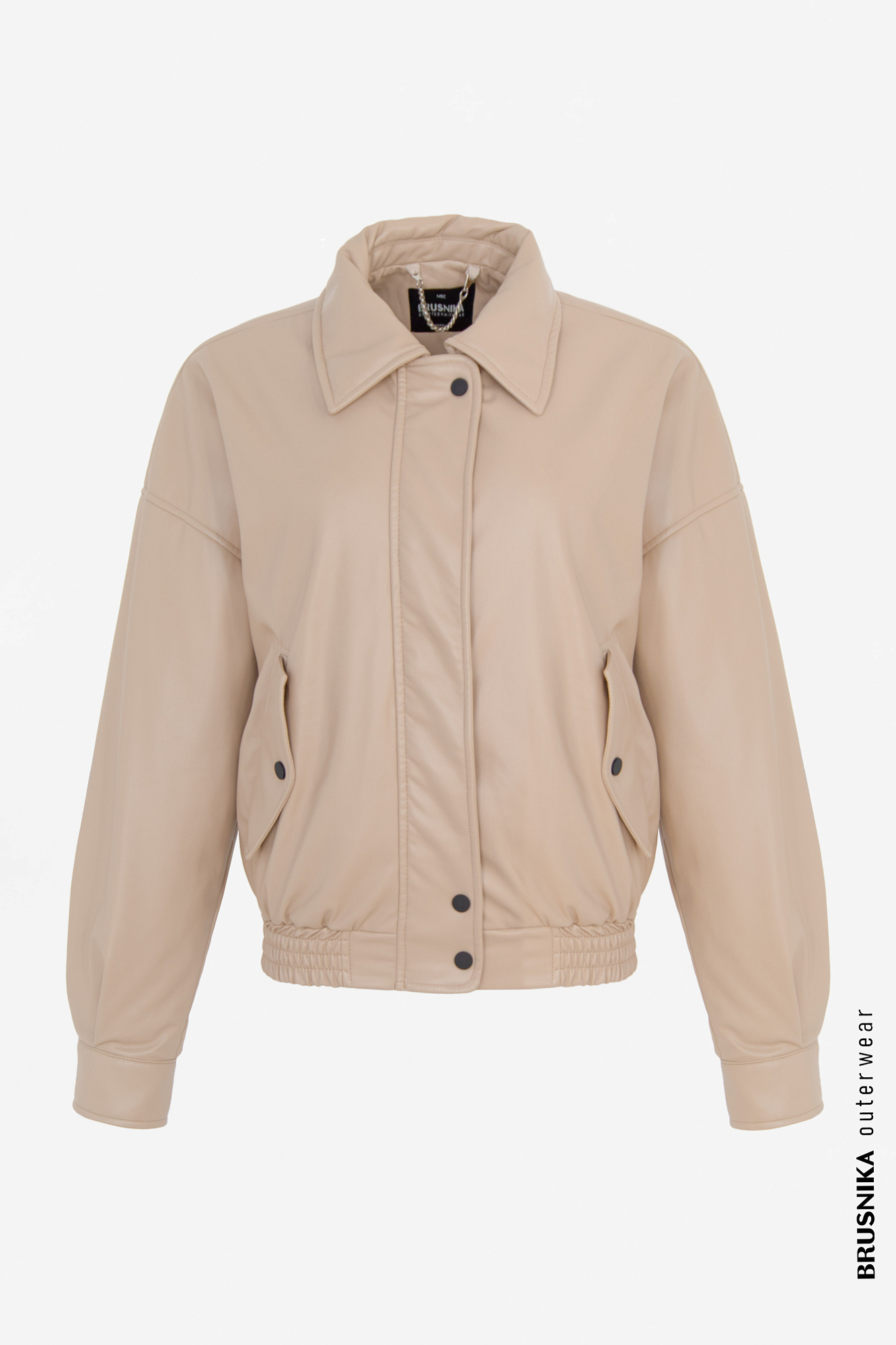 Куртка-бомбер из экокожи. На резинке внизу. Застежка на молнии.