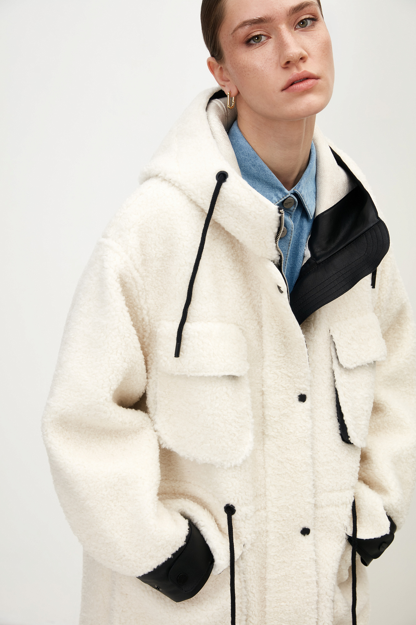 Пальто-дубленка из шерсти с капюшоном