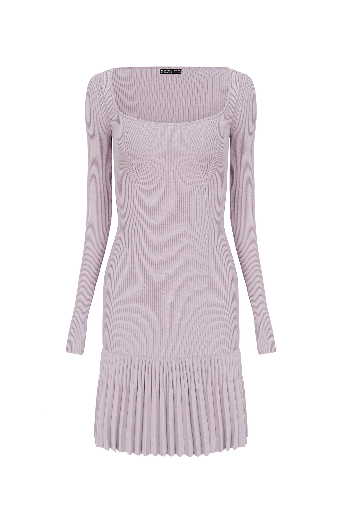 Трикотажное платье из вискозы с плиссированной юбкой, длинным рукавом и квадратным вырезом.
