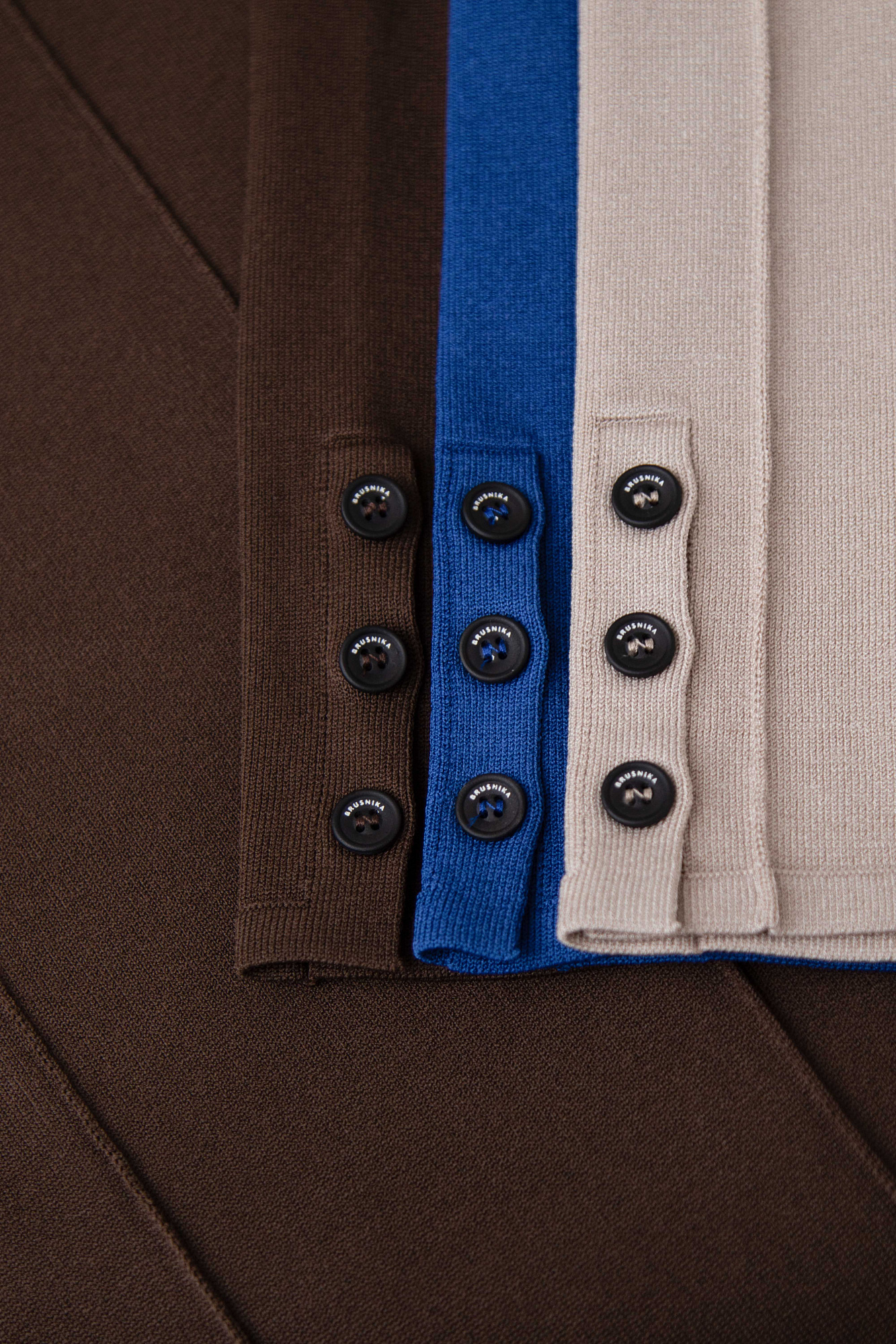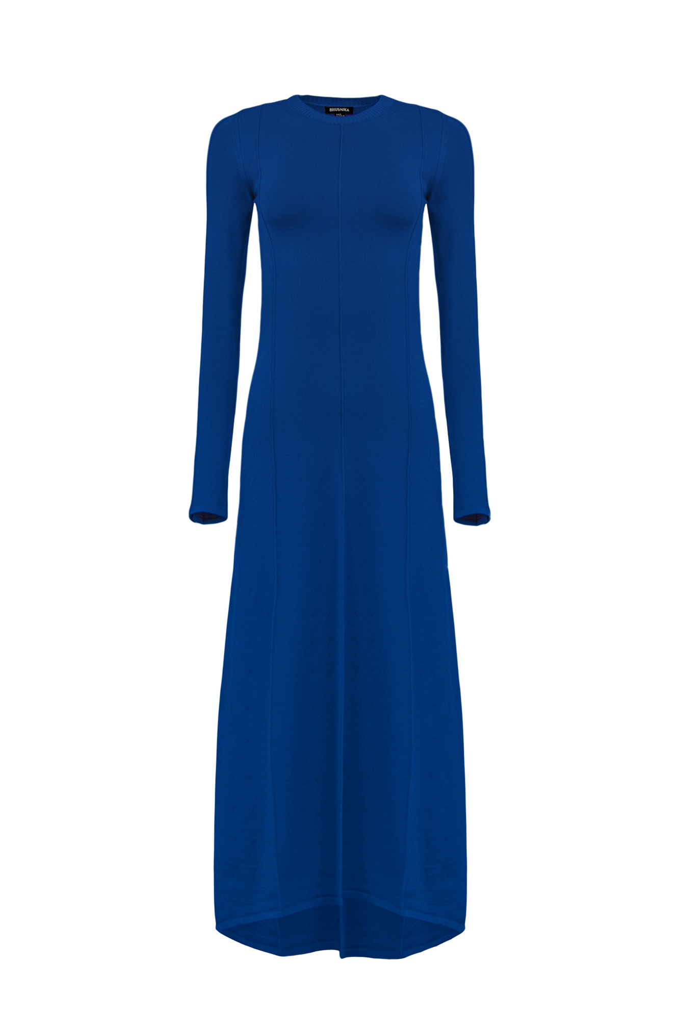 Трикотажное платье из вискозы с удлиненной спинкой, декорировано рельефными швами, длинный рукав с брендированными пуговицами.
