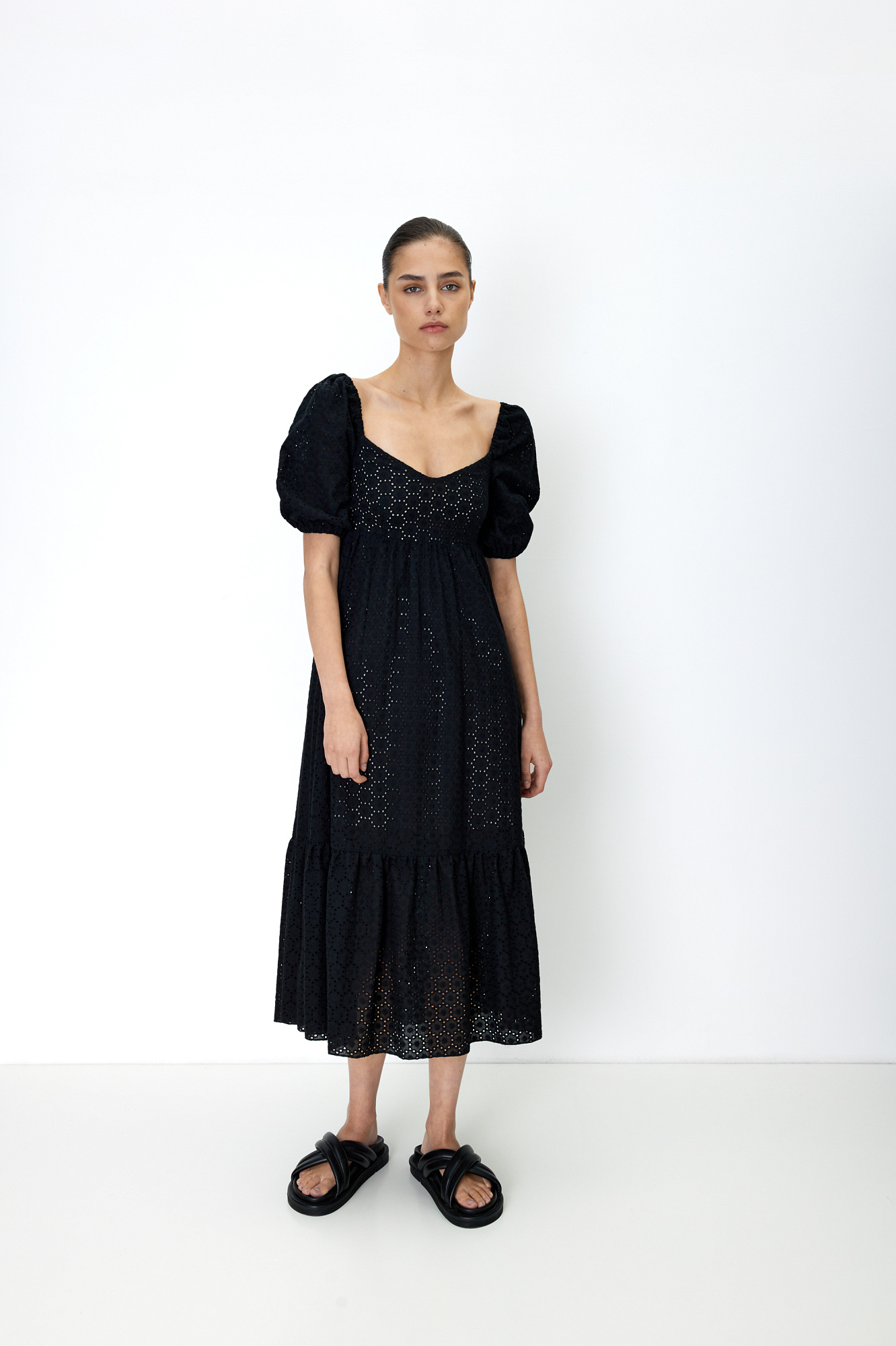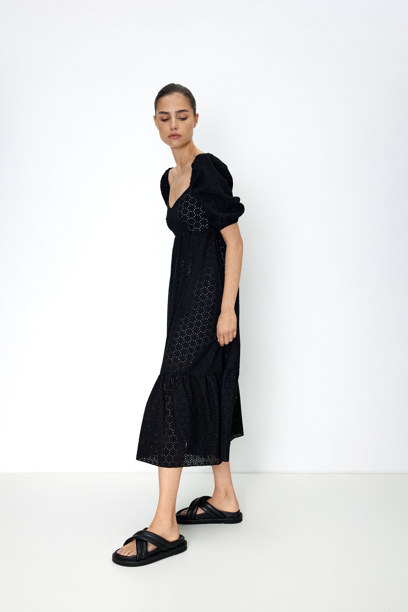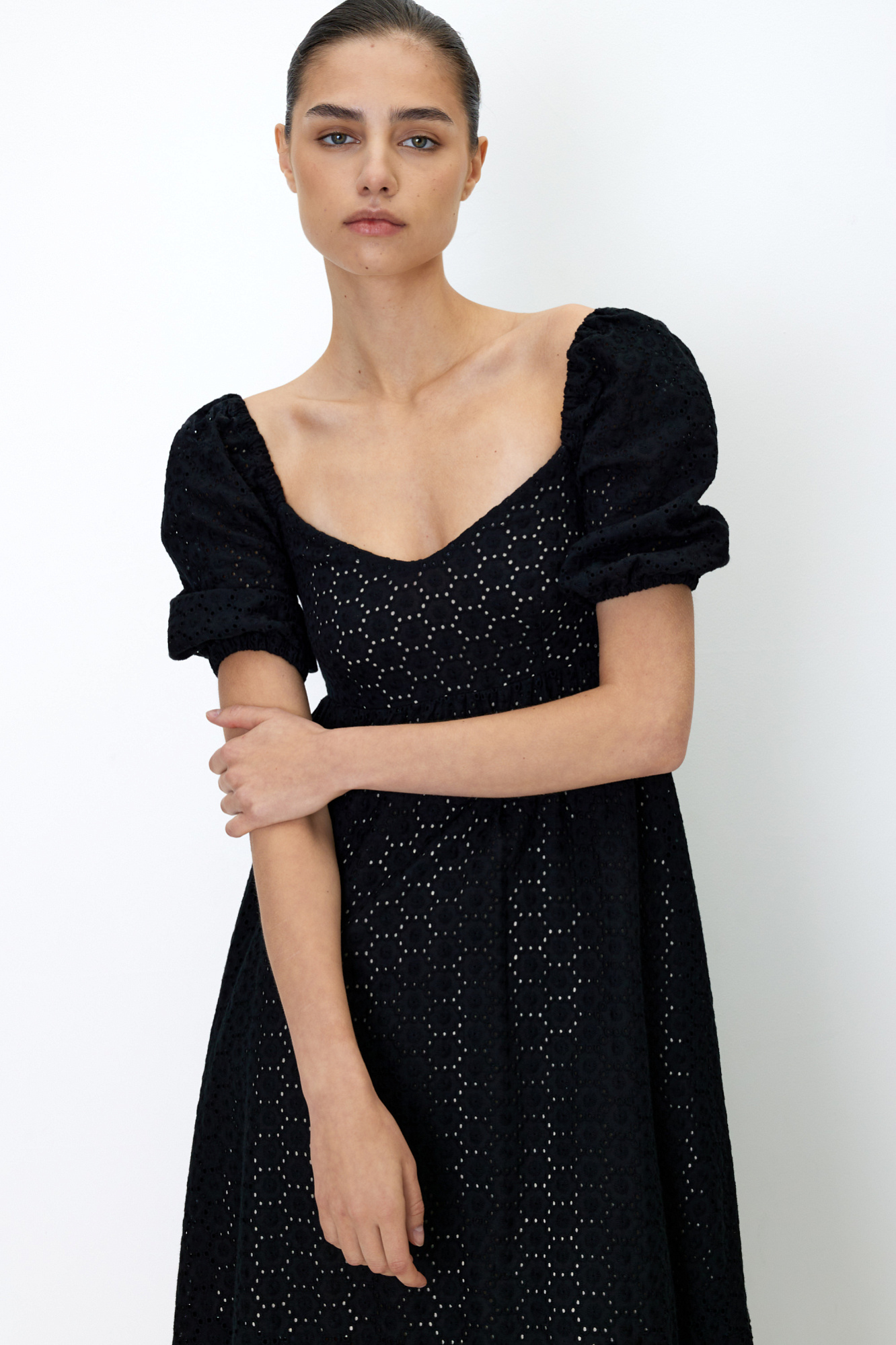 Платье из 100% хлопка с рукавами-фонариками и завышенной талией.