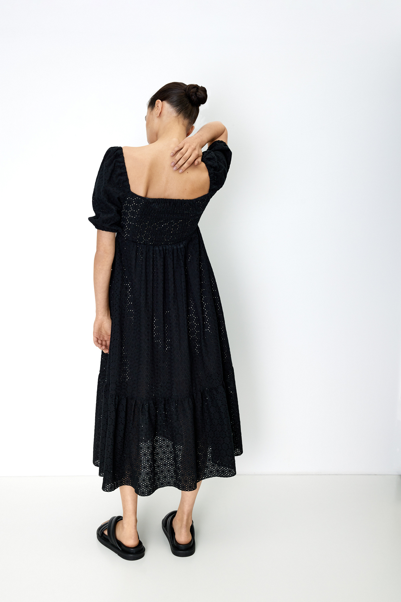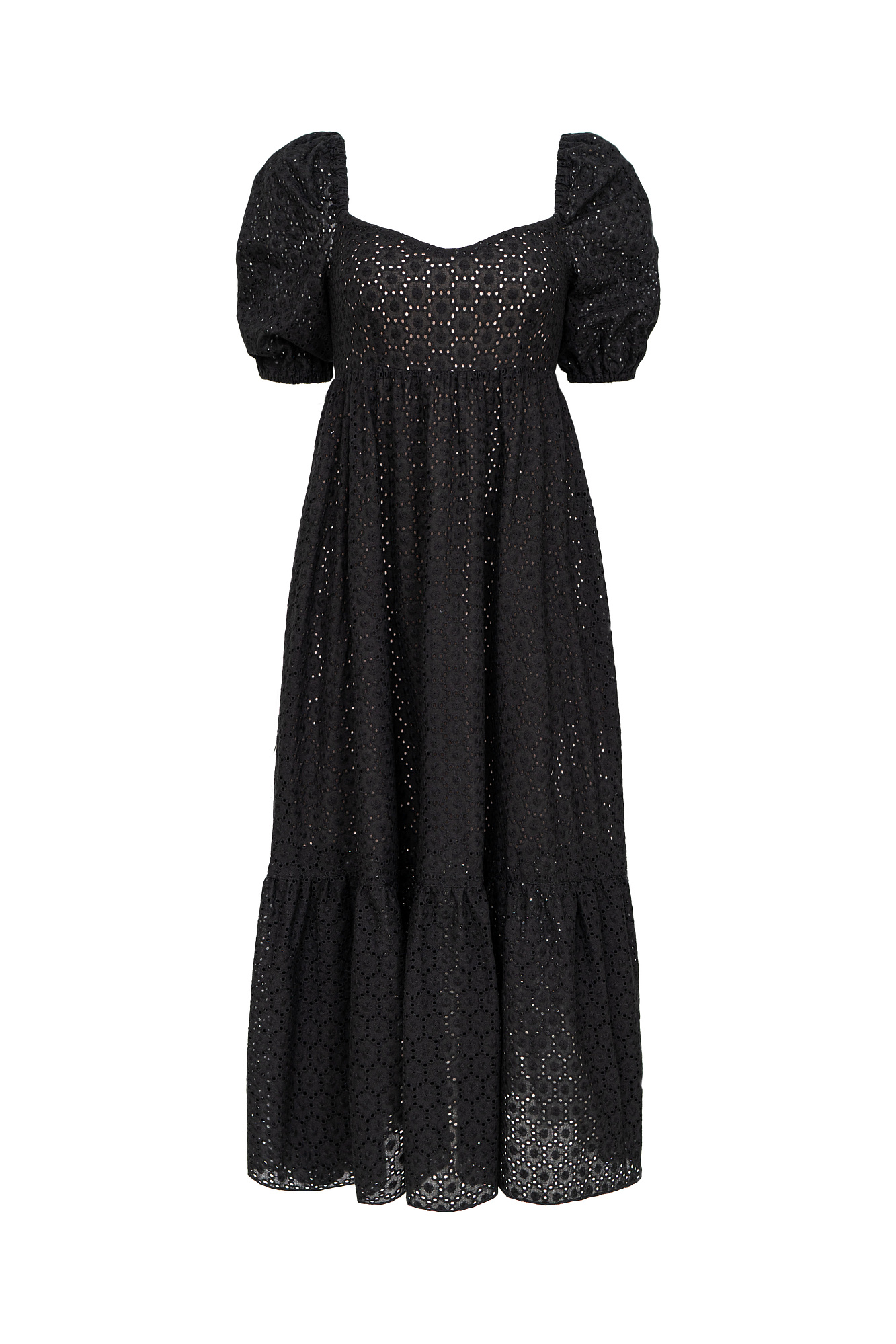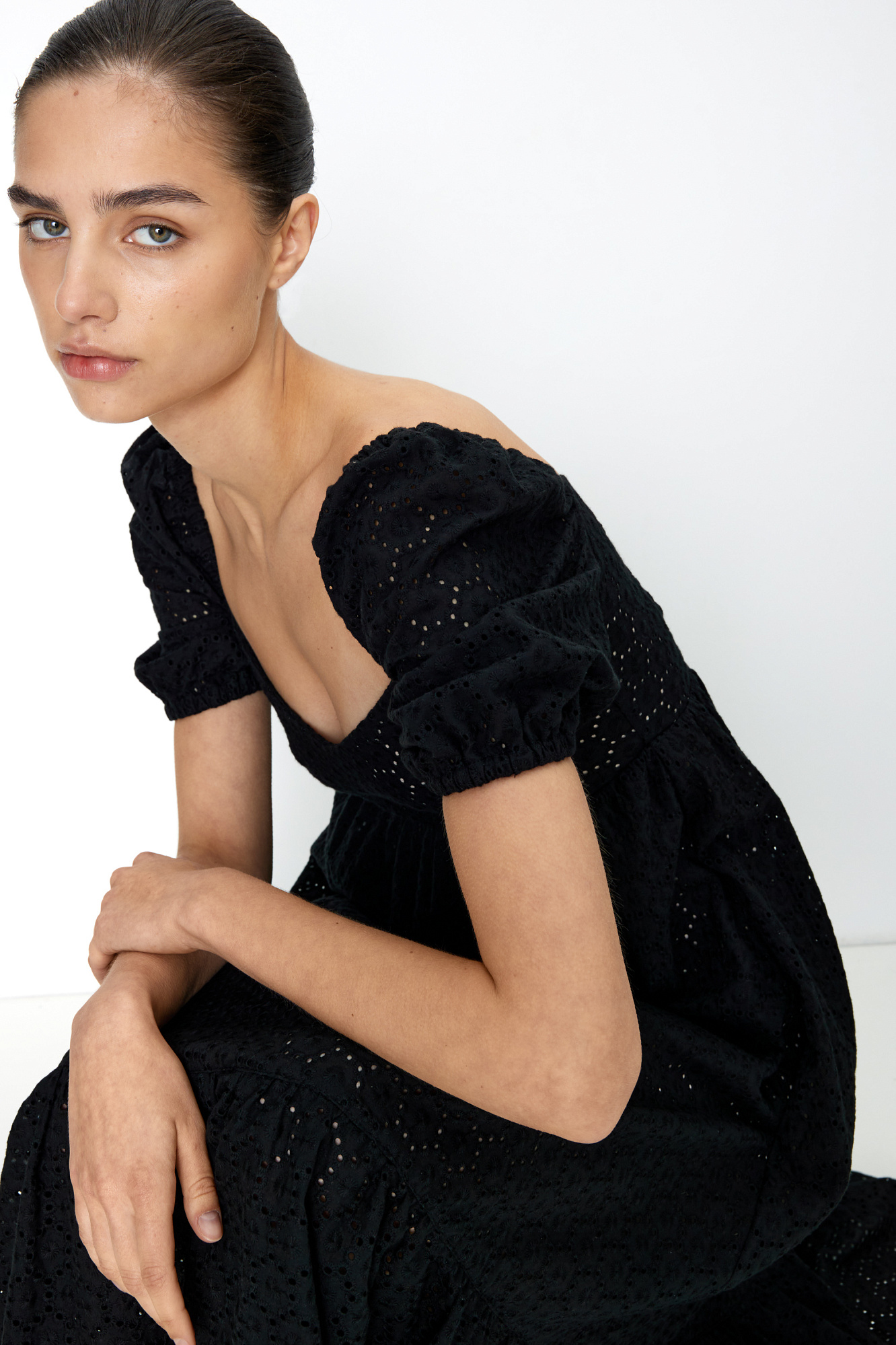 Платье из 100% хлопка с рукавами-фонариками и завышенной талией.