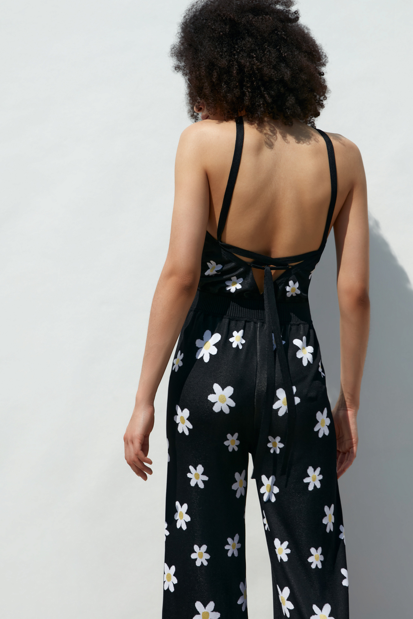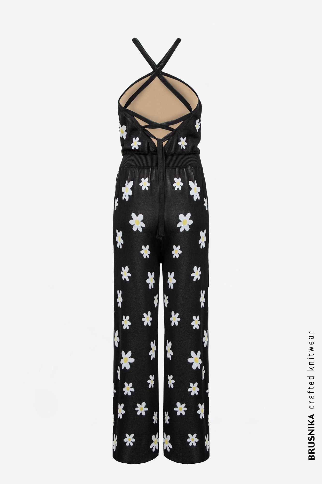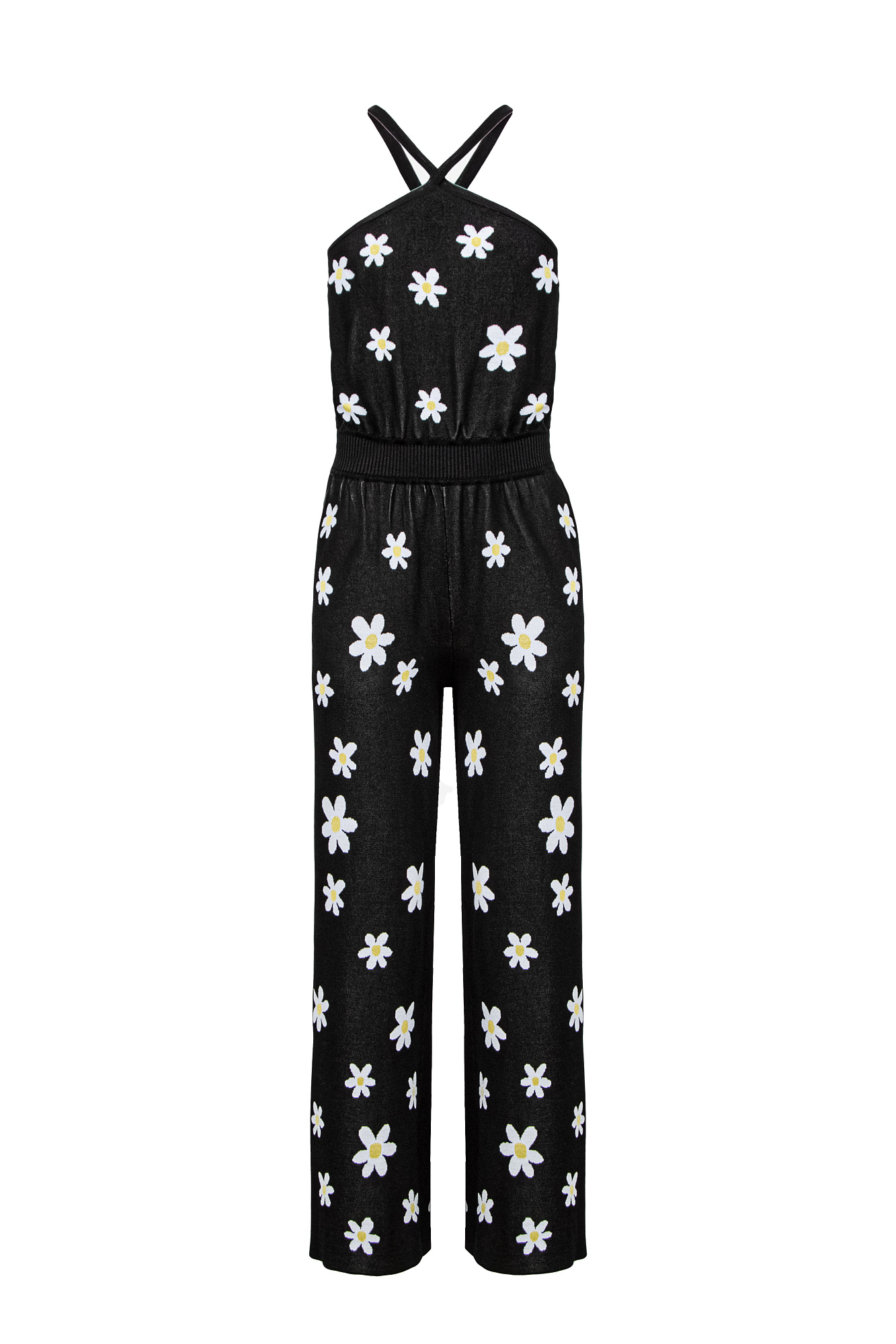 Комбинезон из вискозы с открытыми плечами. Рисунок "Ромашки".