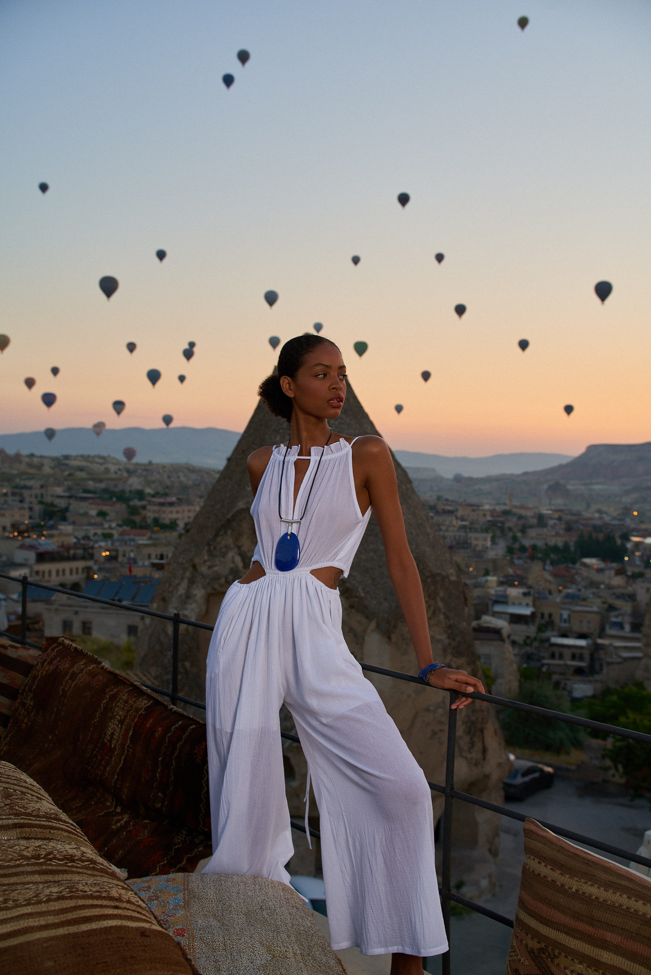 Комбинезон из 100% хлопка, на лямках. Майка и брюки связаны кулиской.