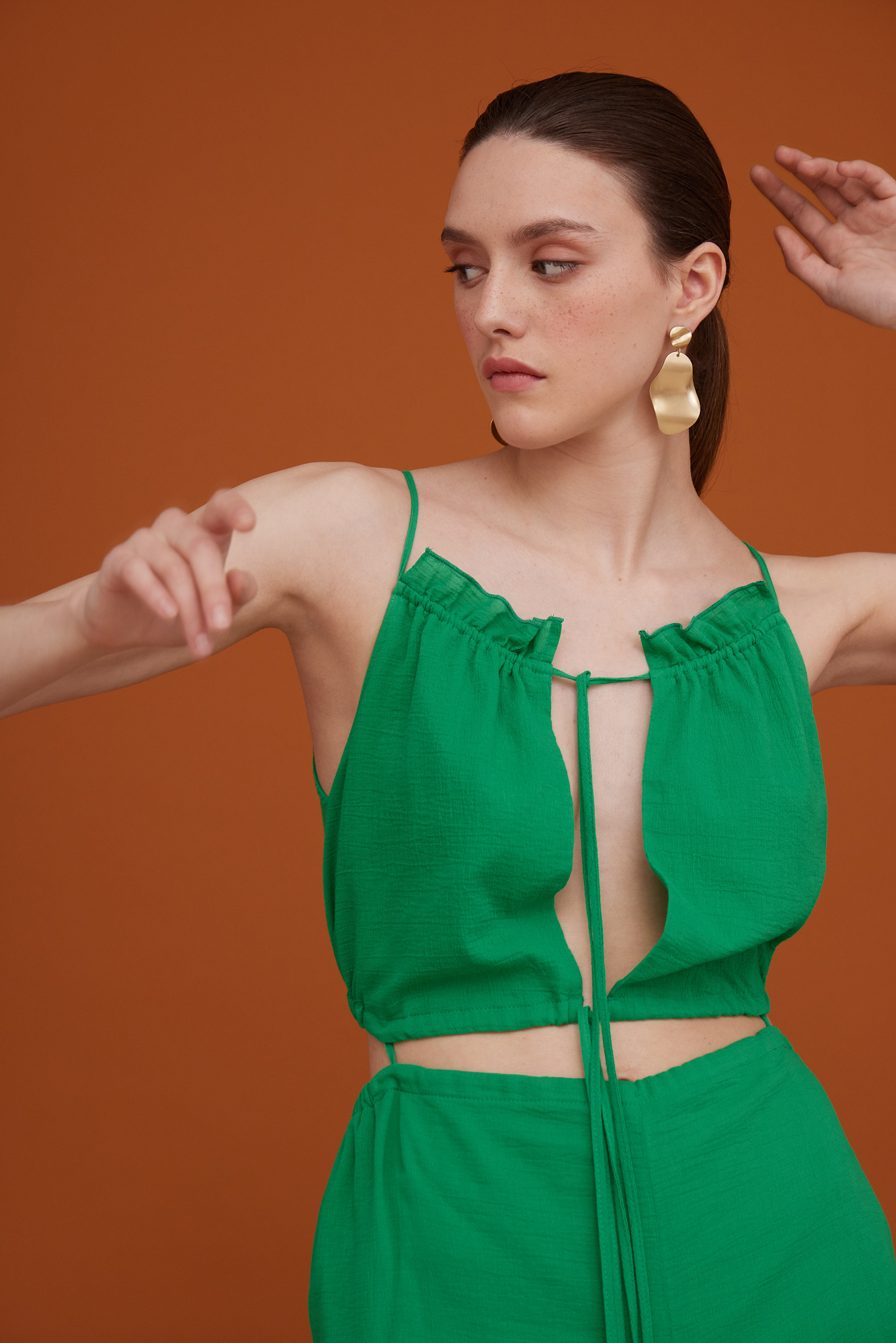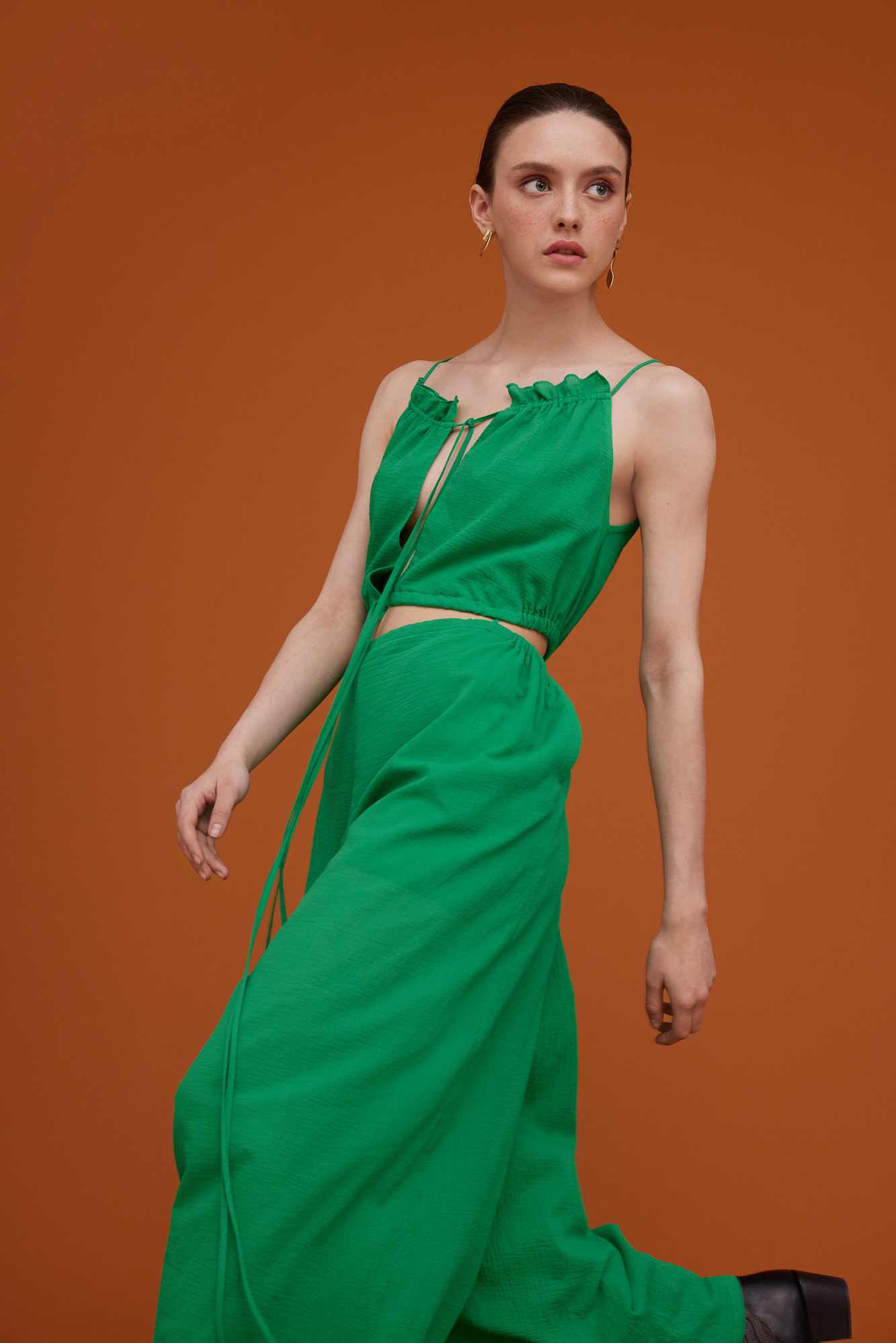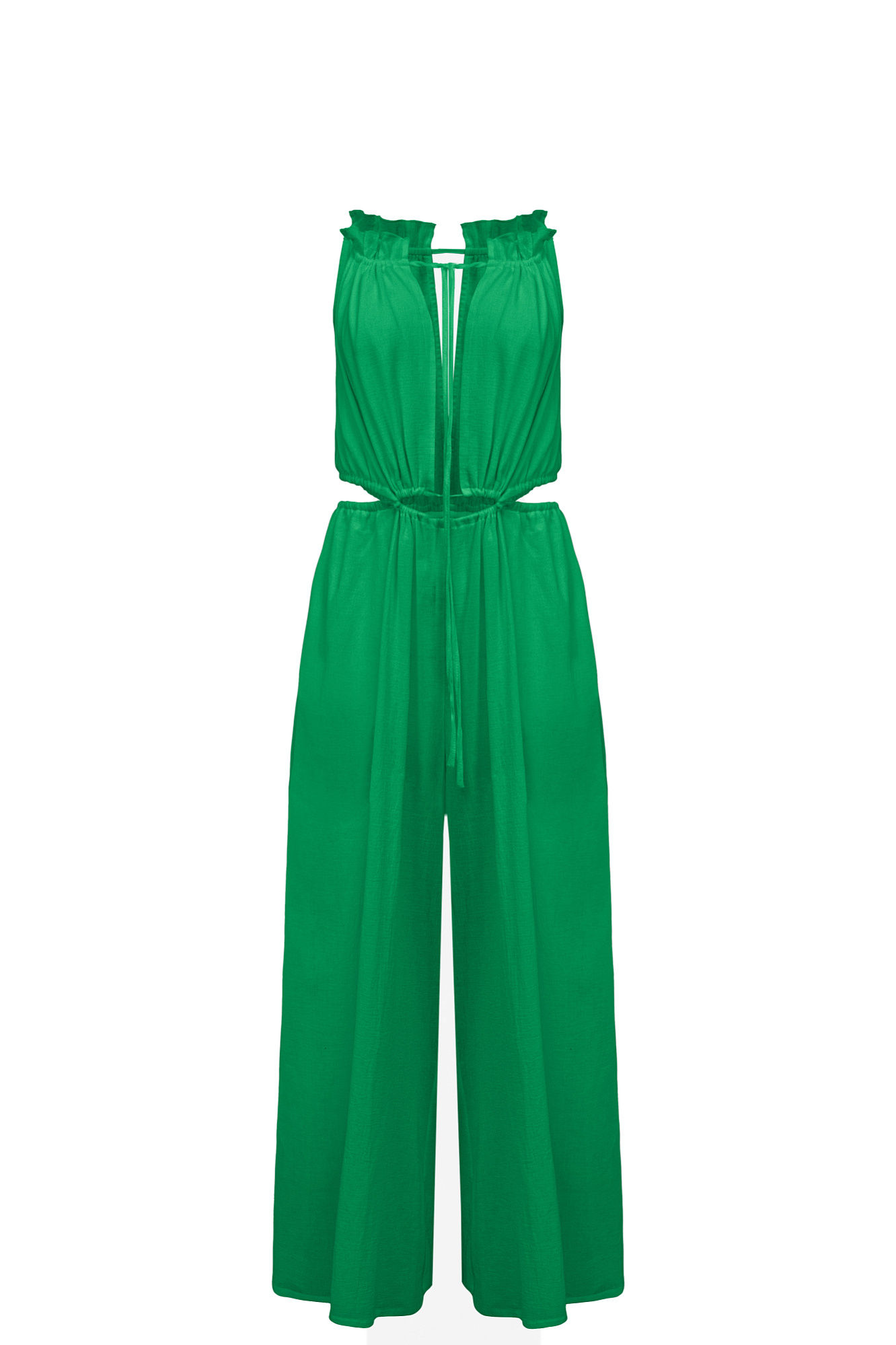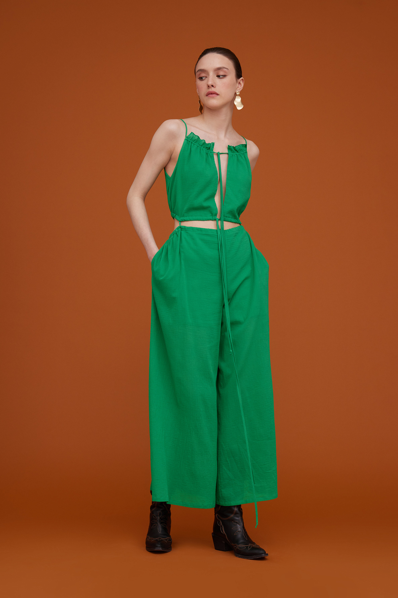 Комбинезон из 100% хлопка, на лямках. Майка и брюки связаны кулиской.
