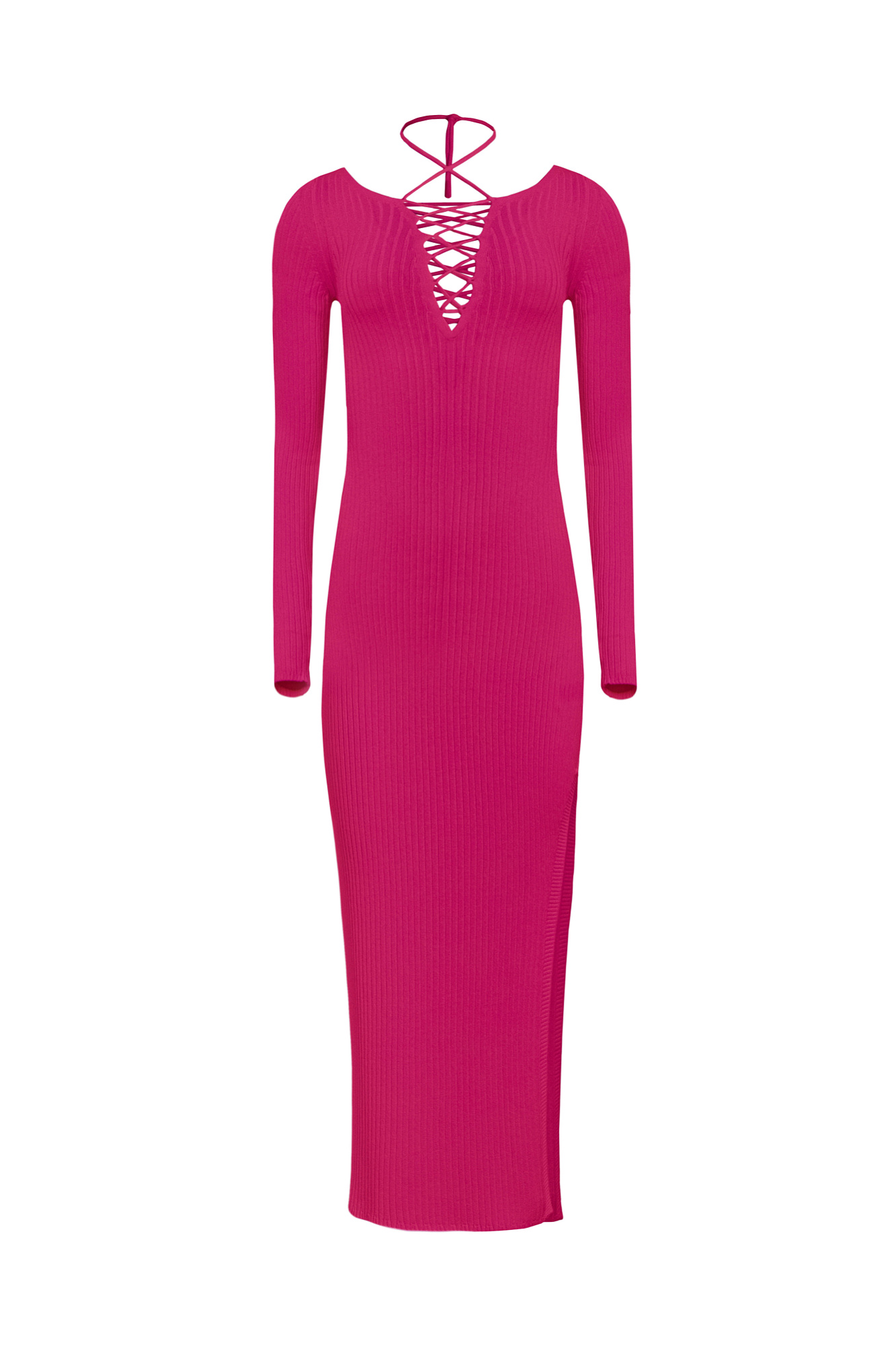 Длинное платье из вискозы с разрезом сбоку. Двойная шнуровка на груди и спине.