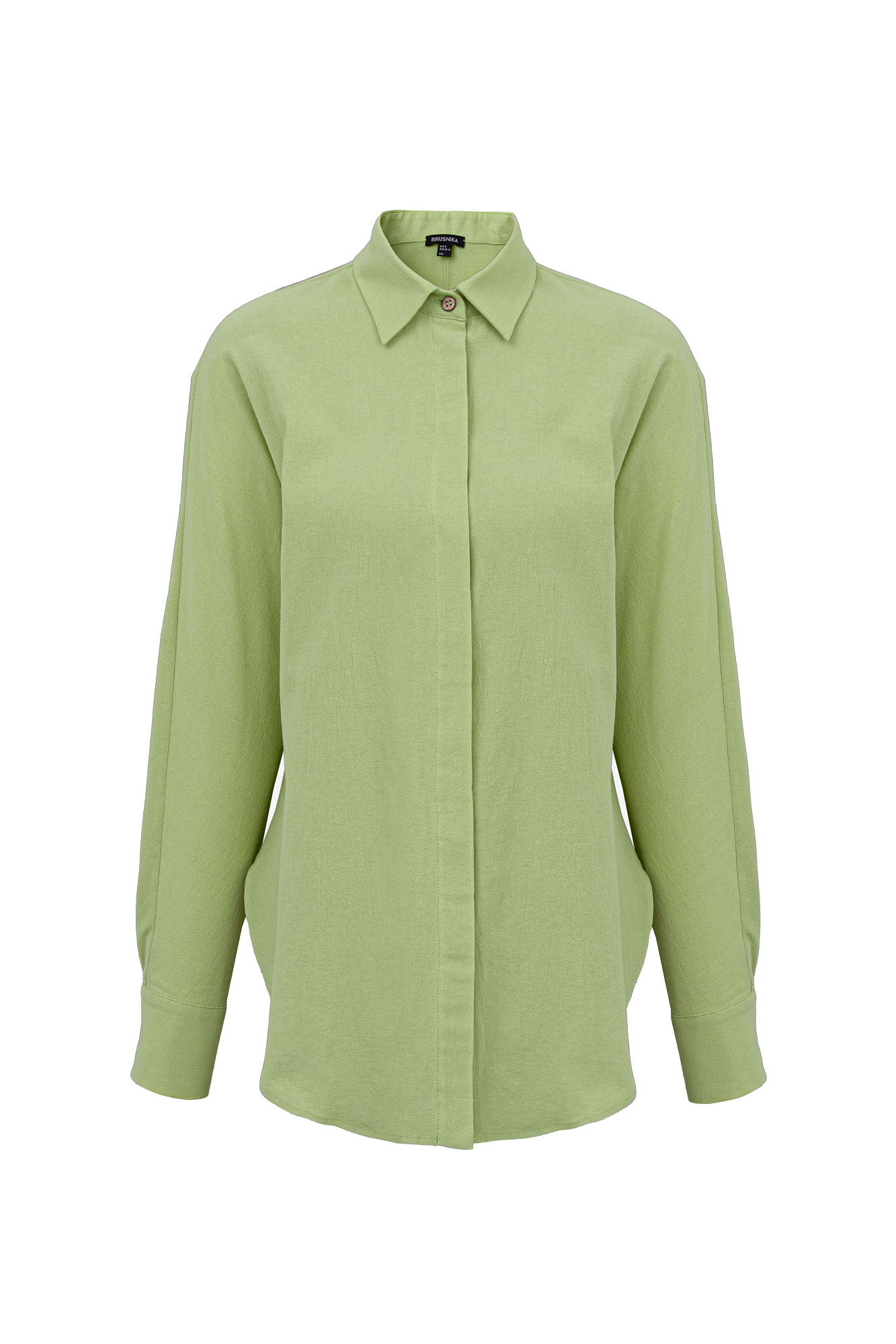 Классическая рубашка из 100% хлопка с потайной застежкой на пуговицы. Дополнить образ можно брюками.