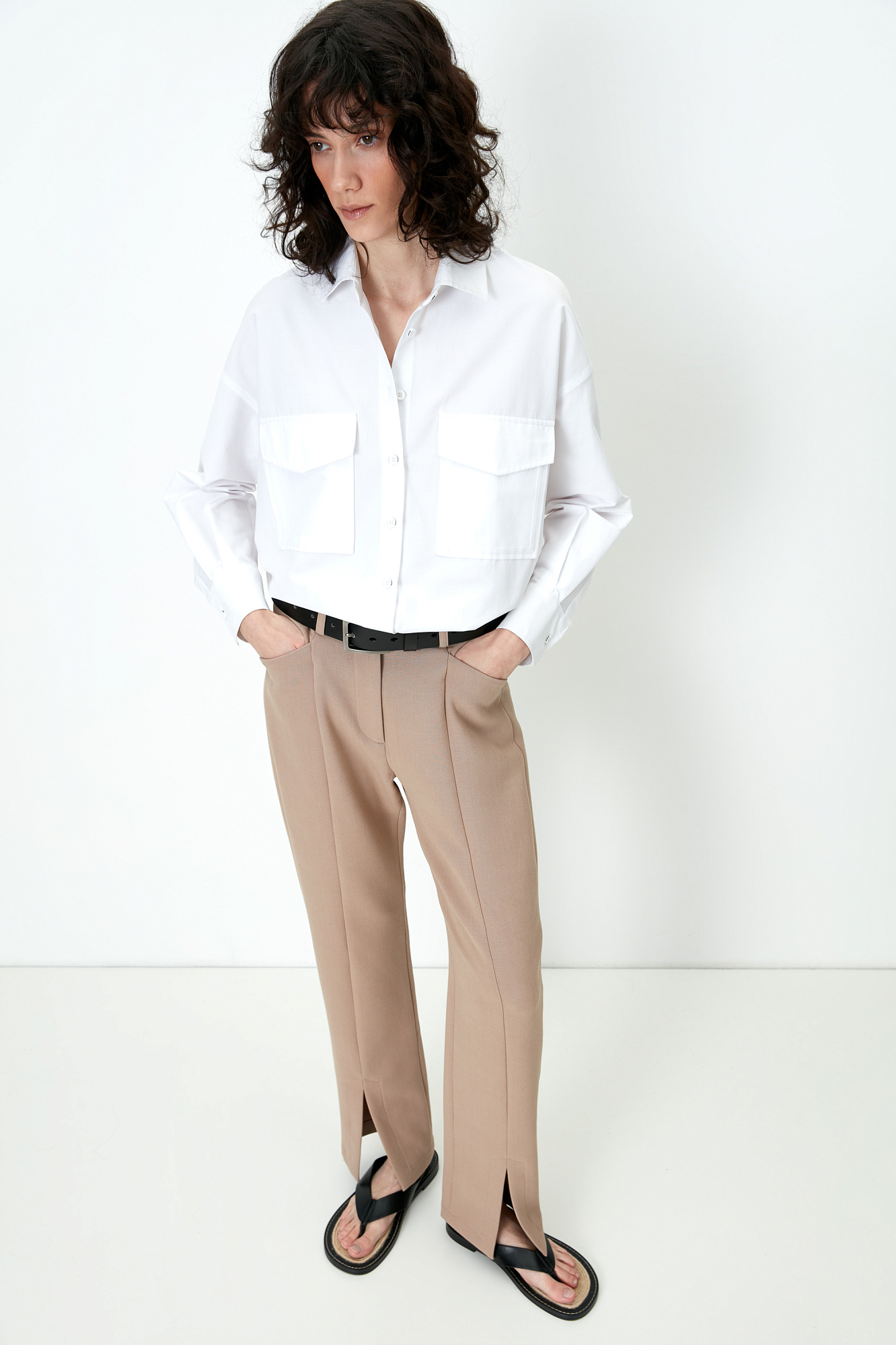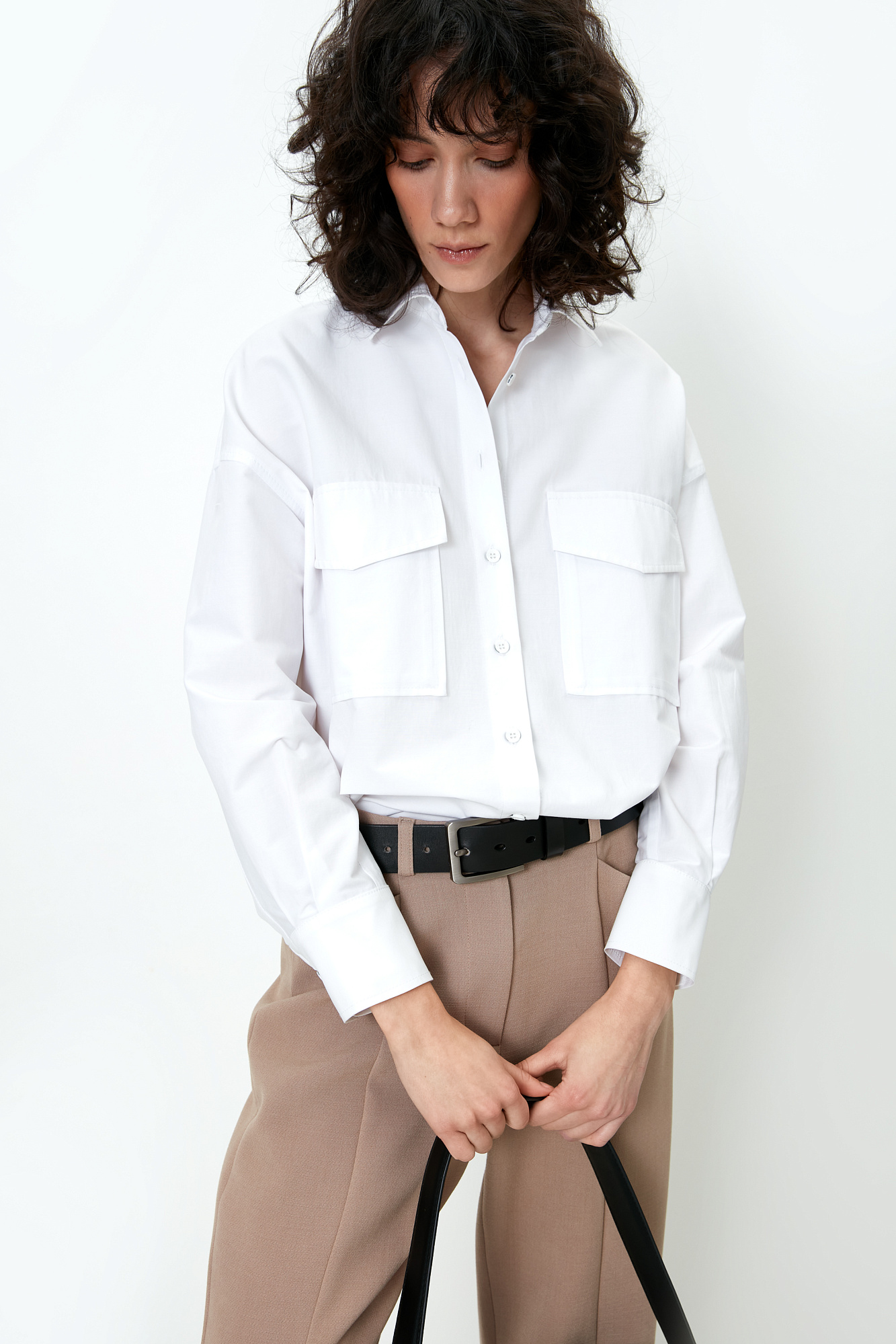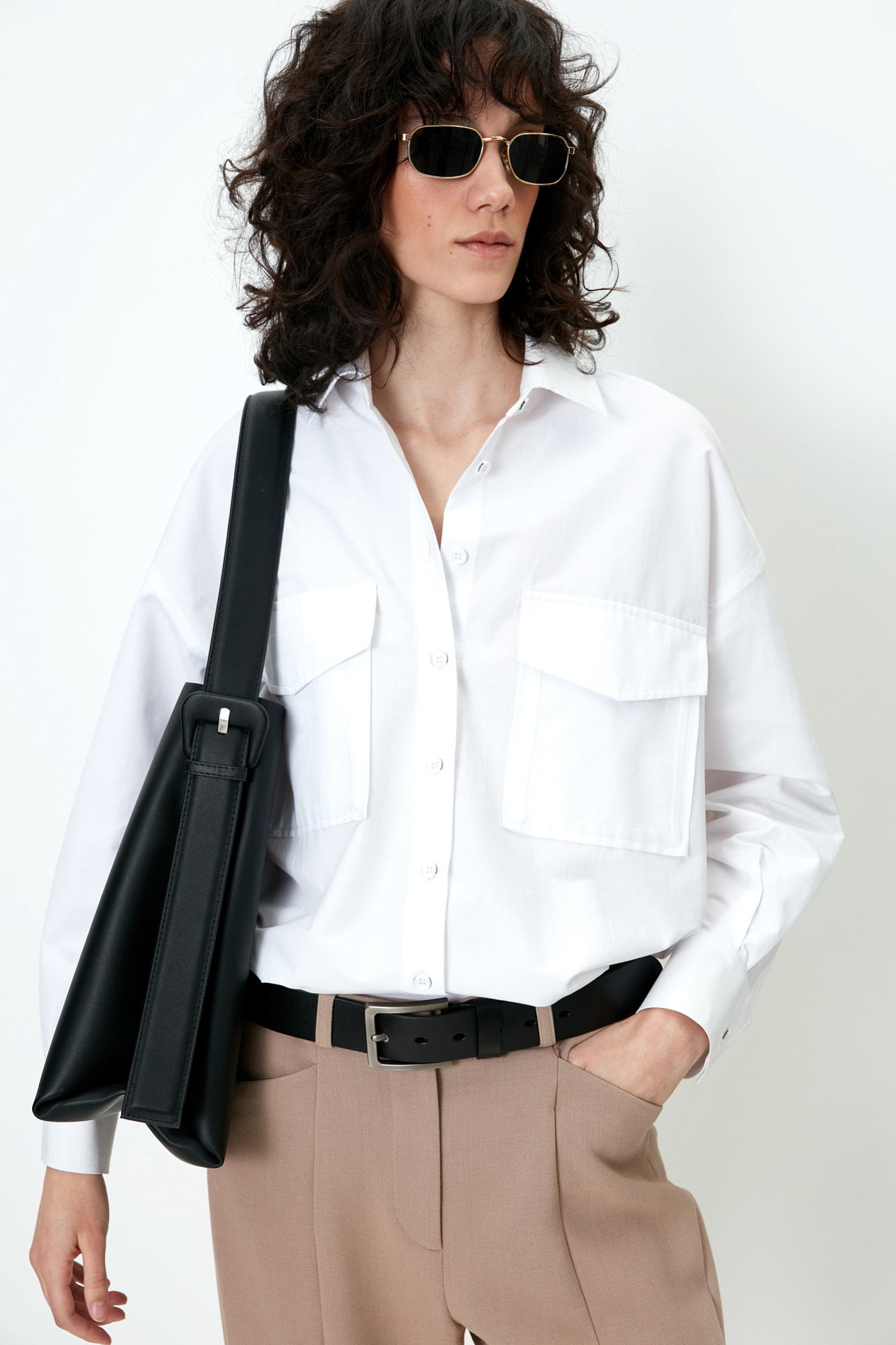 Классическая рубашка из хлопка с накладными карманами на груди.