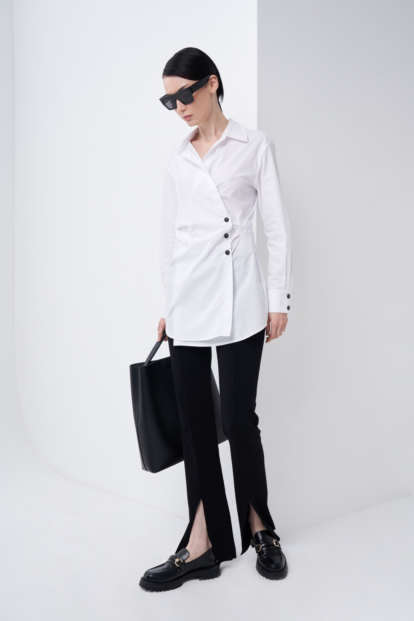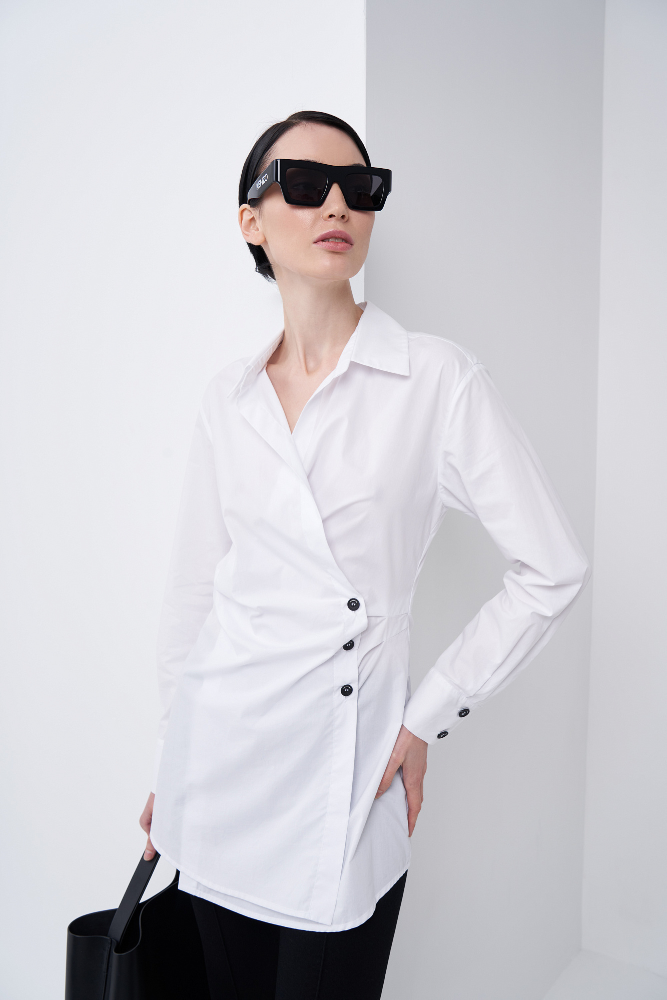 Туника с принтом с длинным рукавом на пуговицах из 100% хлопка. Более тонкая ткань.