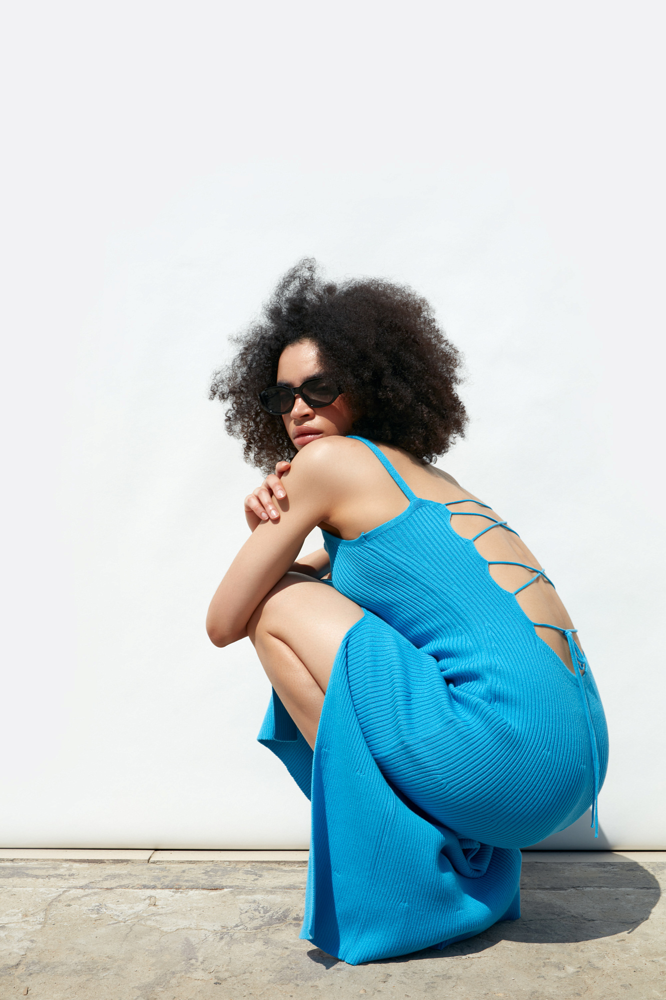 Сарафан из 100% хлопка с разрезом сбоку и открытой спинкой