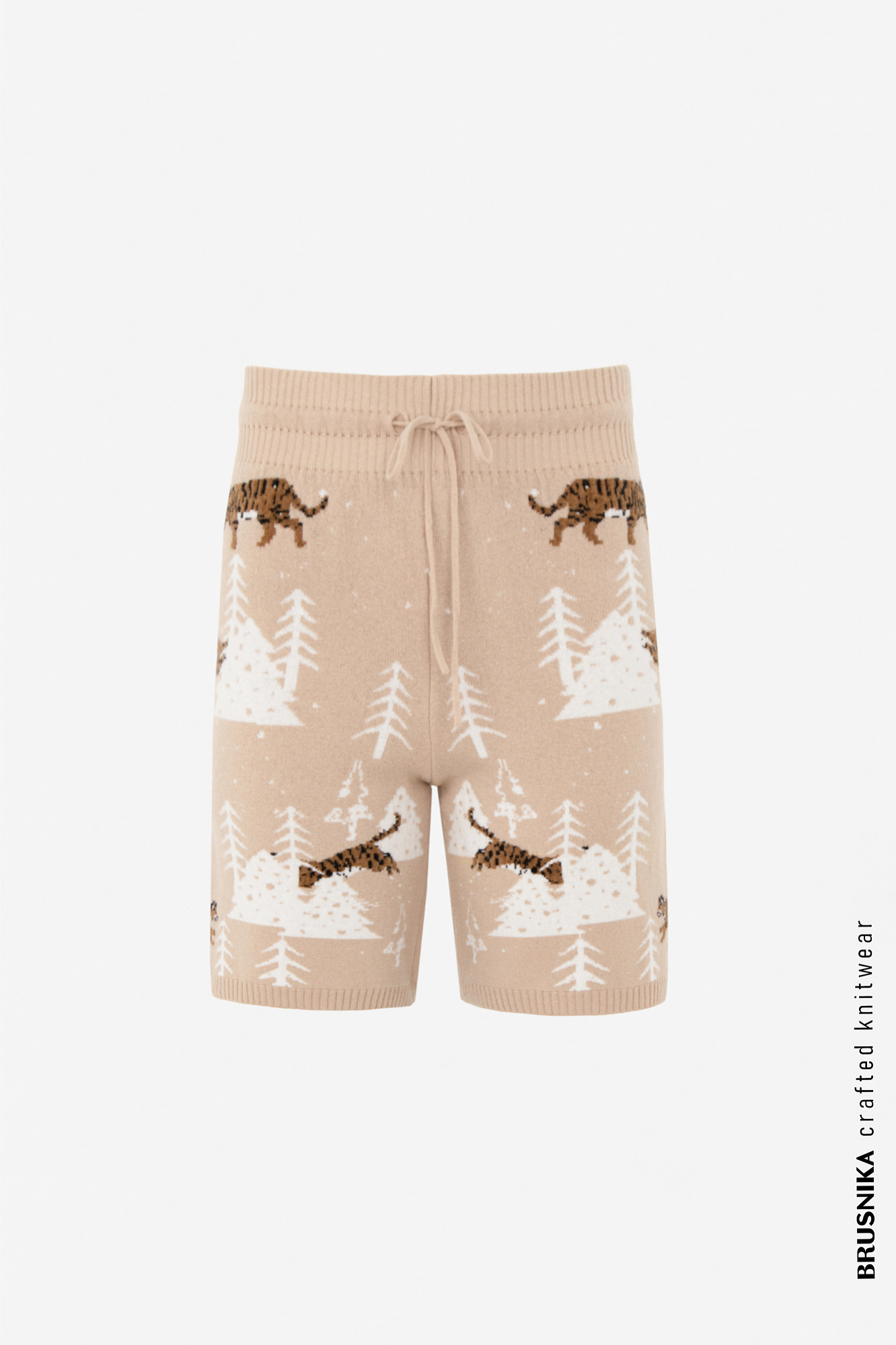 Шорты из шерсти и кашемира с рисунком тигров в снежных елях