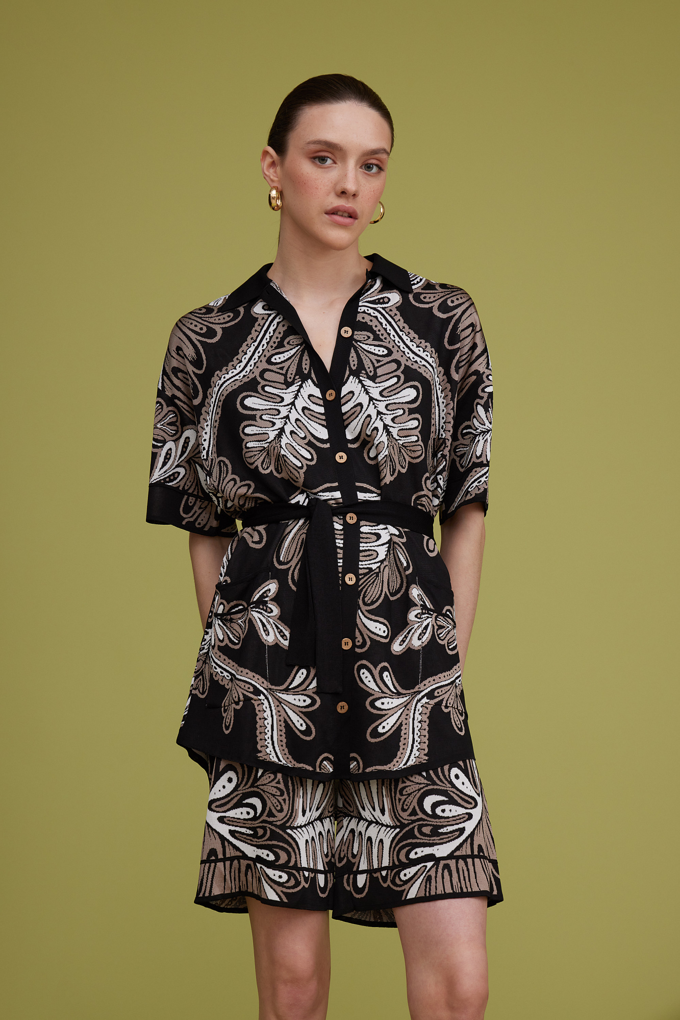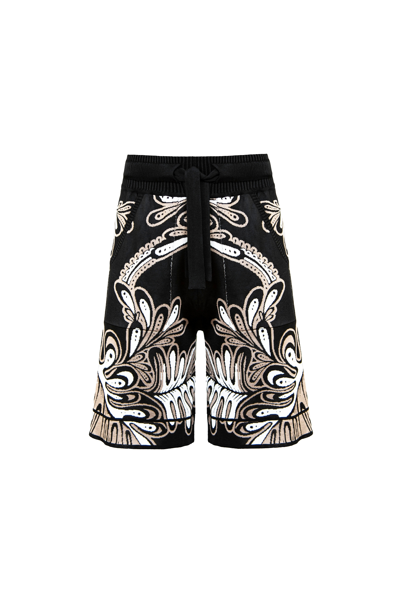Трикотажные шорты с принтом на кулиске с боковыми карманами.