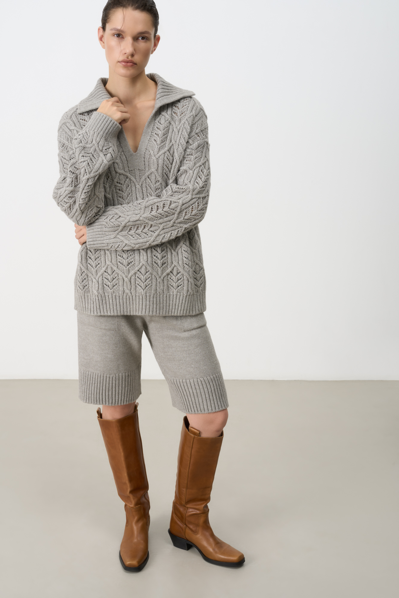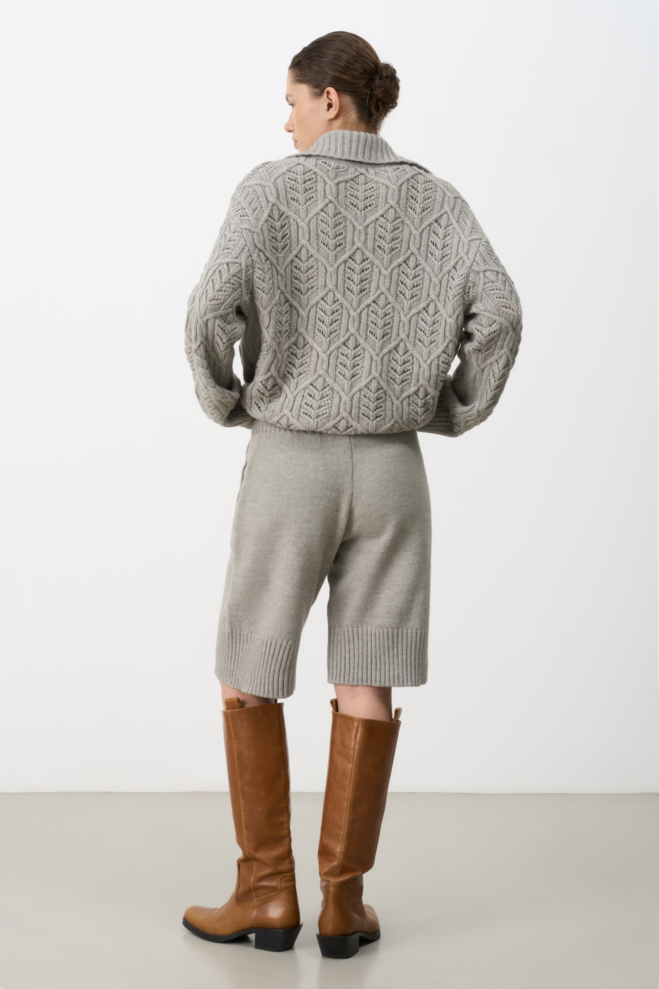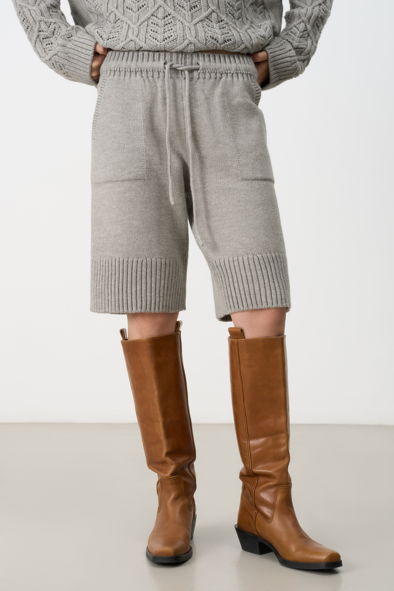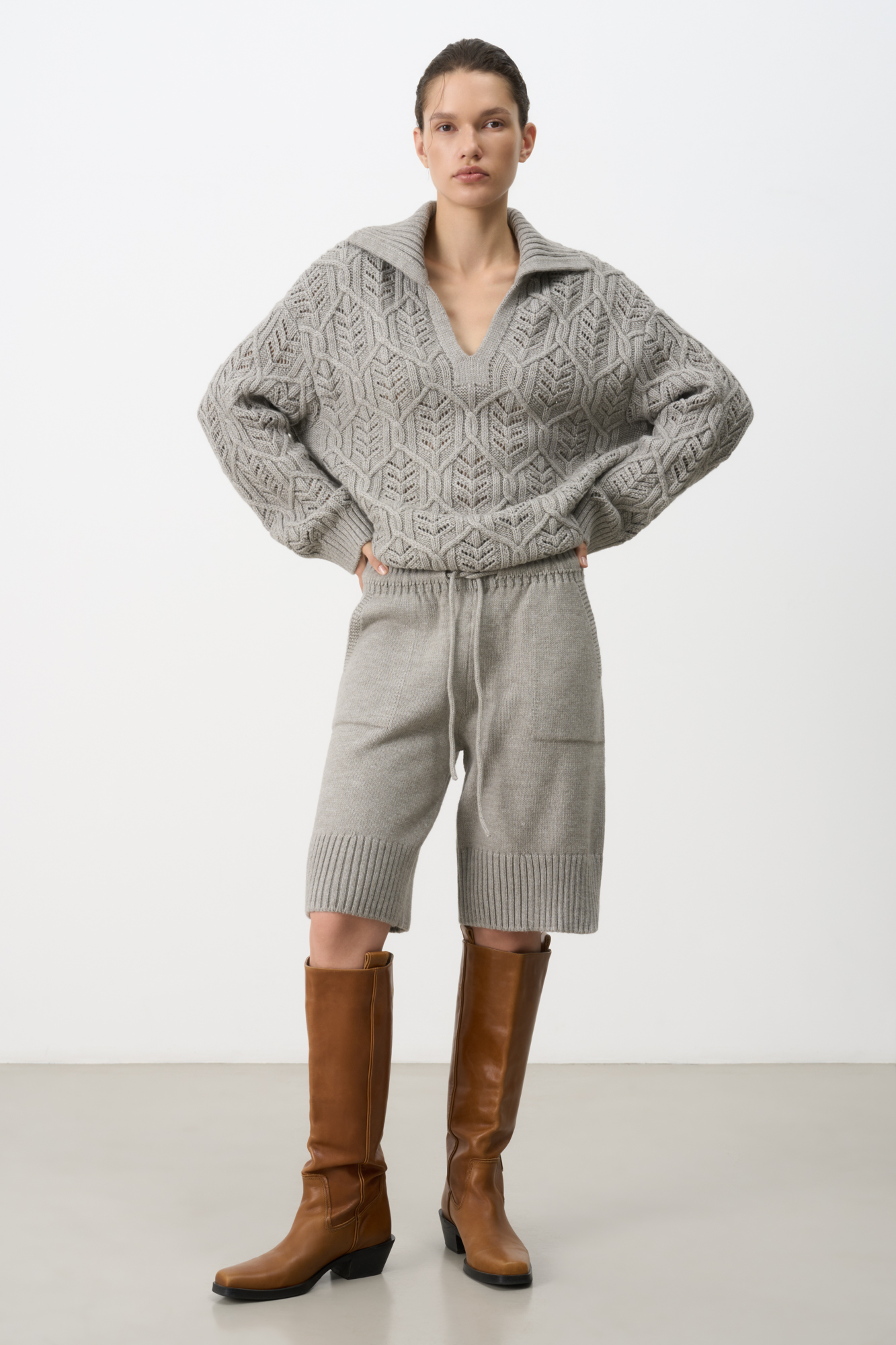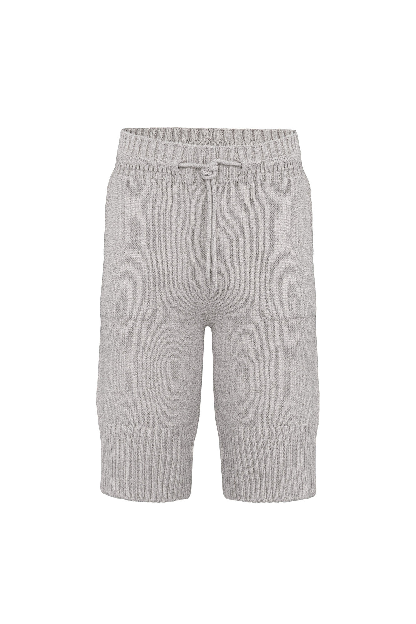 Трикотажные шорты из шерсти альпака. Модель свободного силуэта с боковыми карманами и эластичным поясом на кулиске.