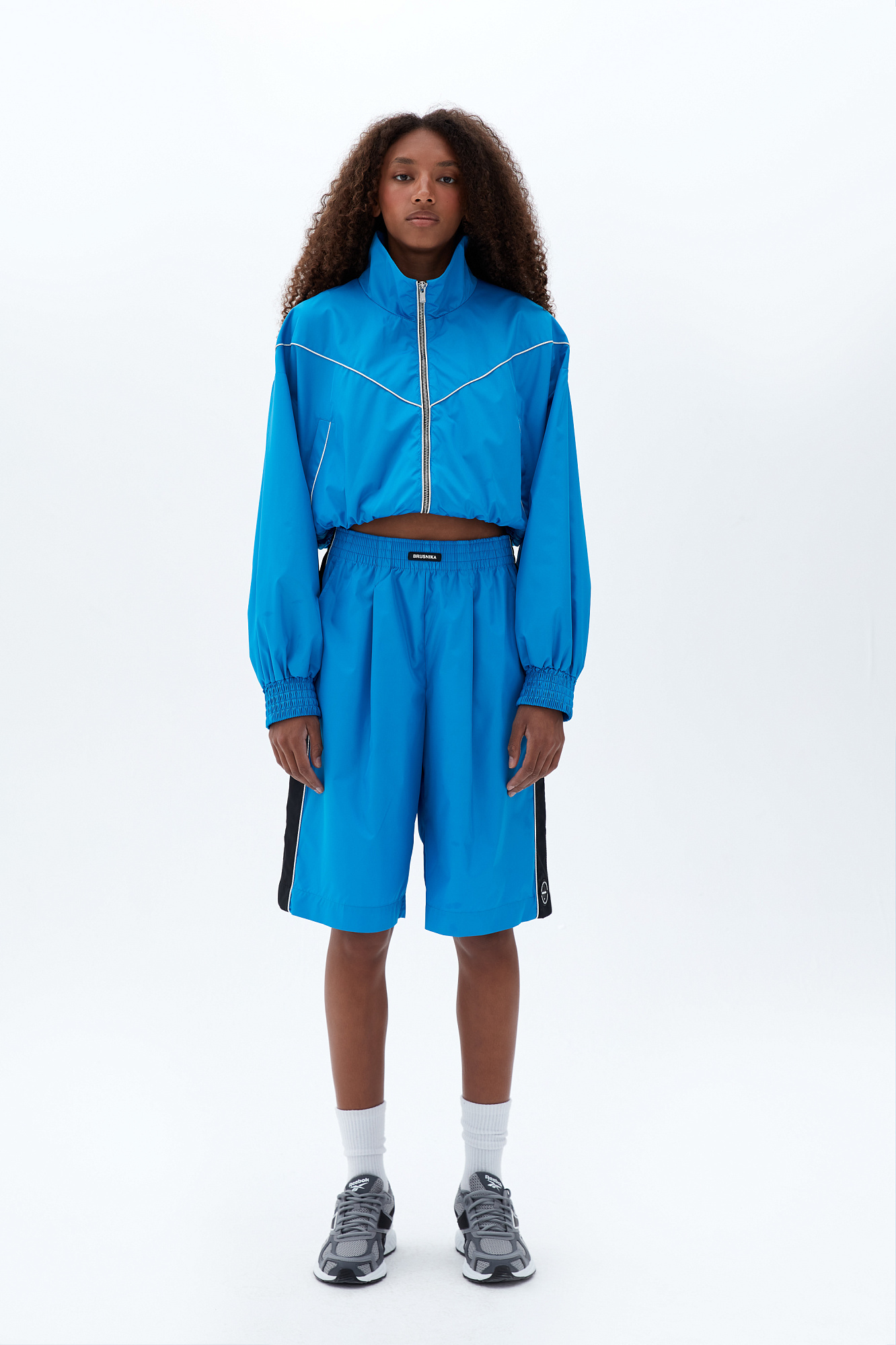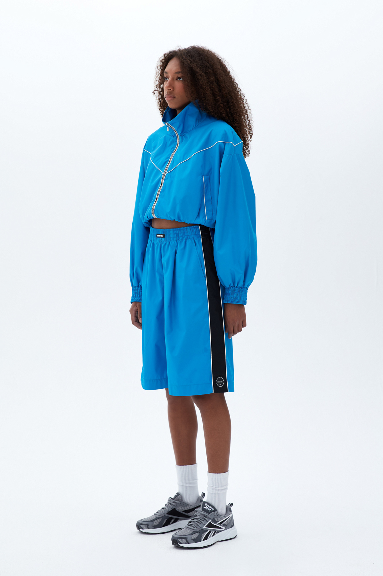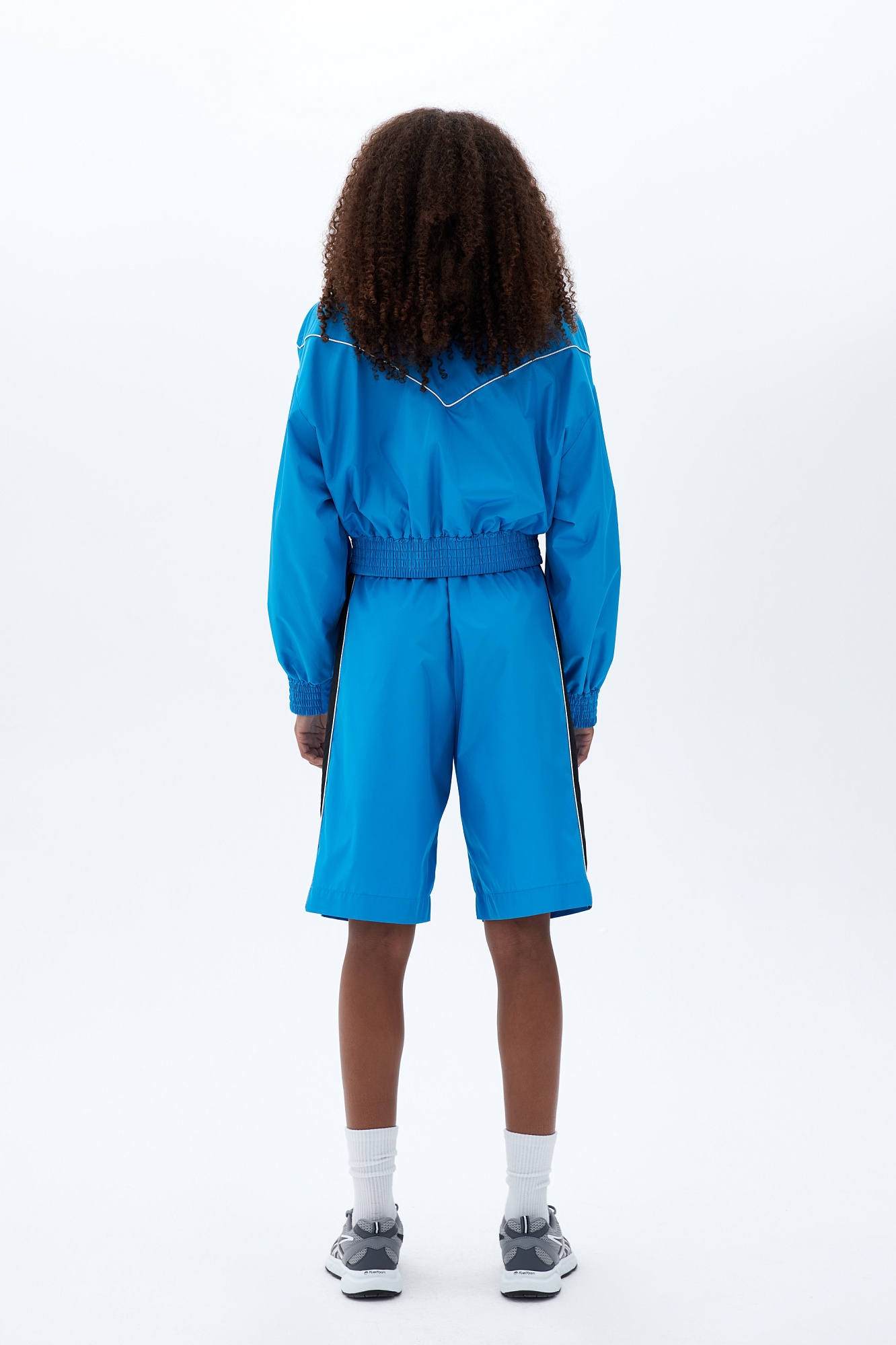 Шорты в спортивном стиле с карманами по бокам, белым кантом и широким лампасом. Пояс на эластичной ленте с брендированным ярлыком. Дополнить образ можно бомбером или курткой в том же стиле.