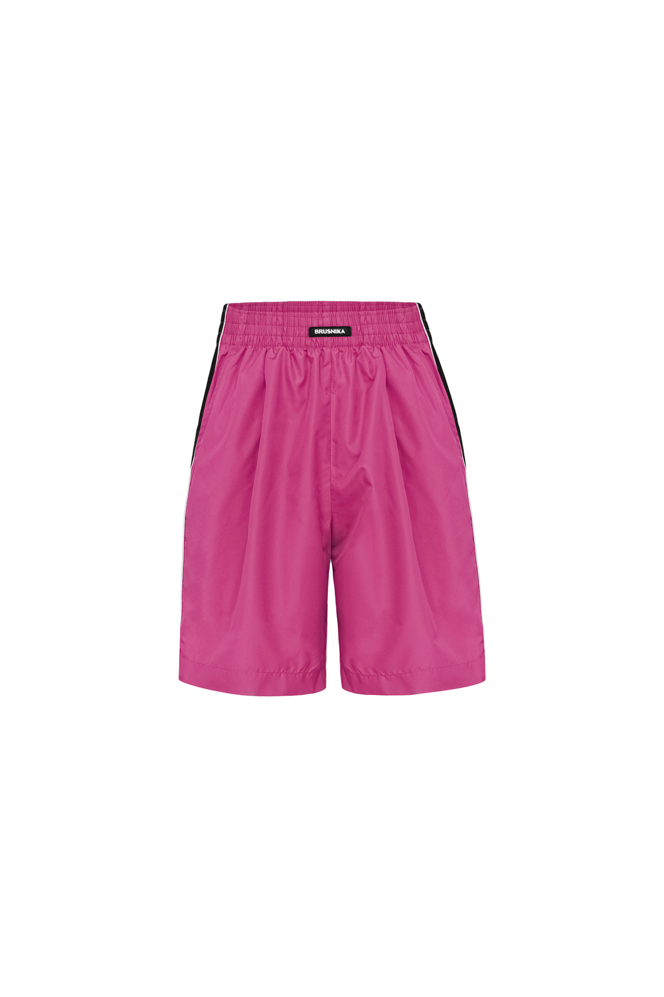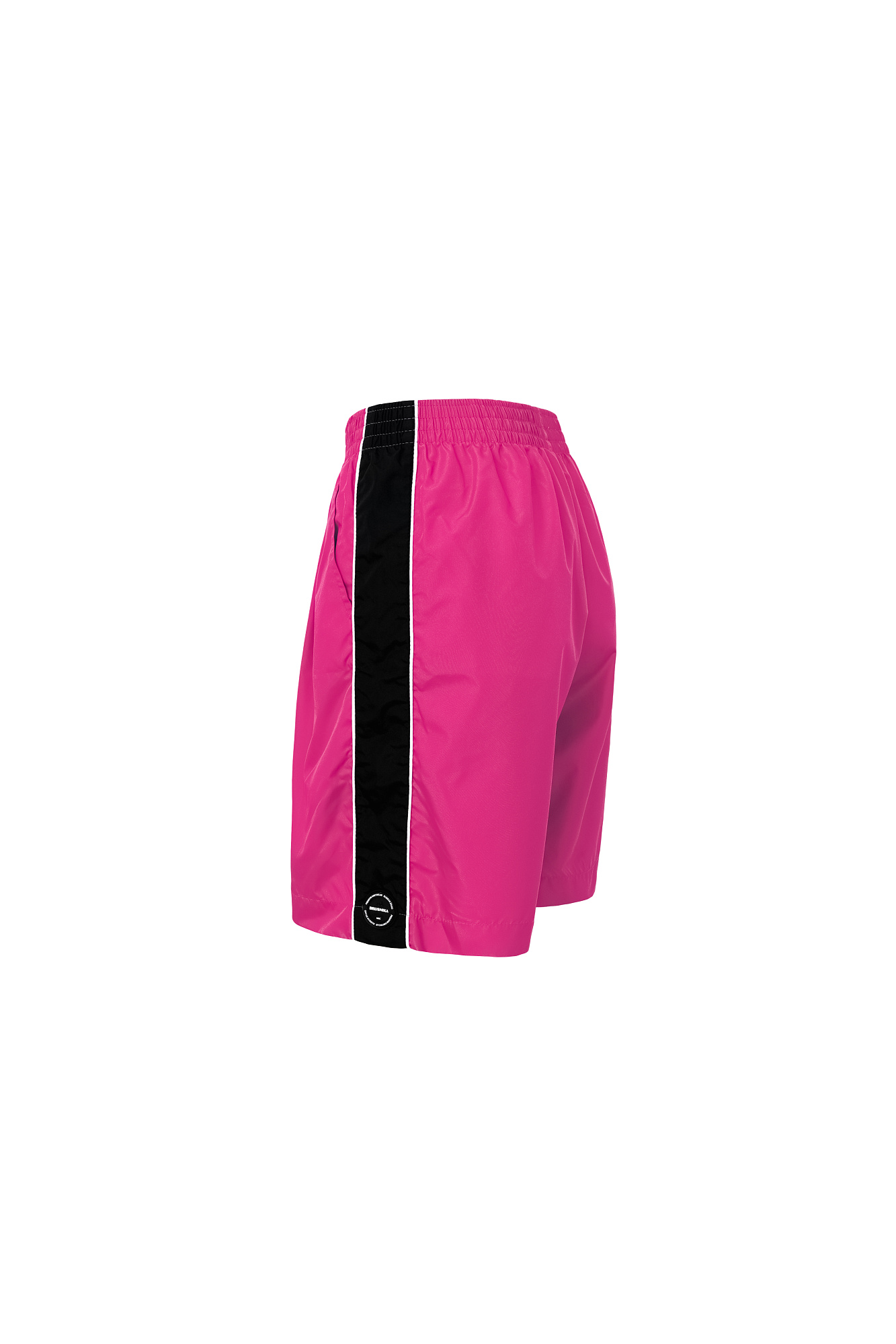 Детские шорты в спортивном стиле с карманами по бокам, белым кантом и широким лампасом. Пояс на эластичной ленте с брендированным ярлыком. Дополнить образ можно бомбером или курткой в том же стиле.