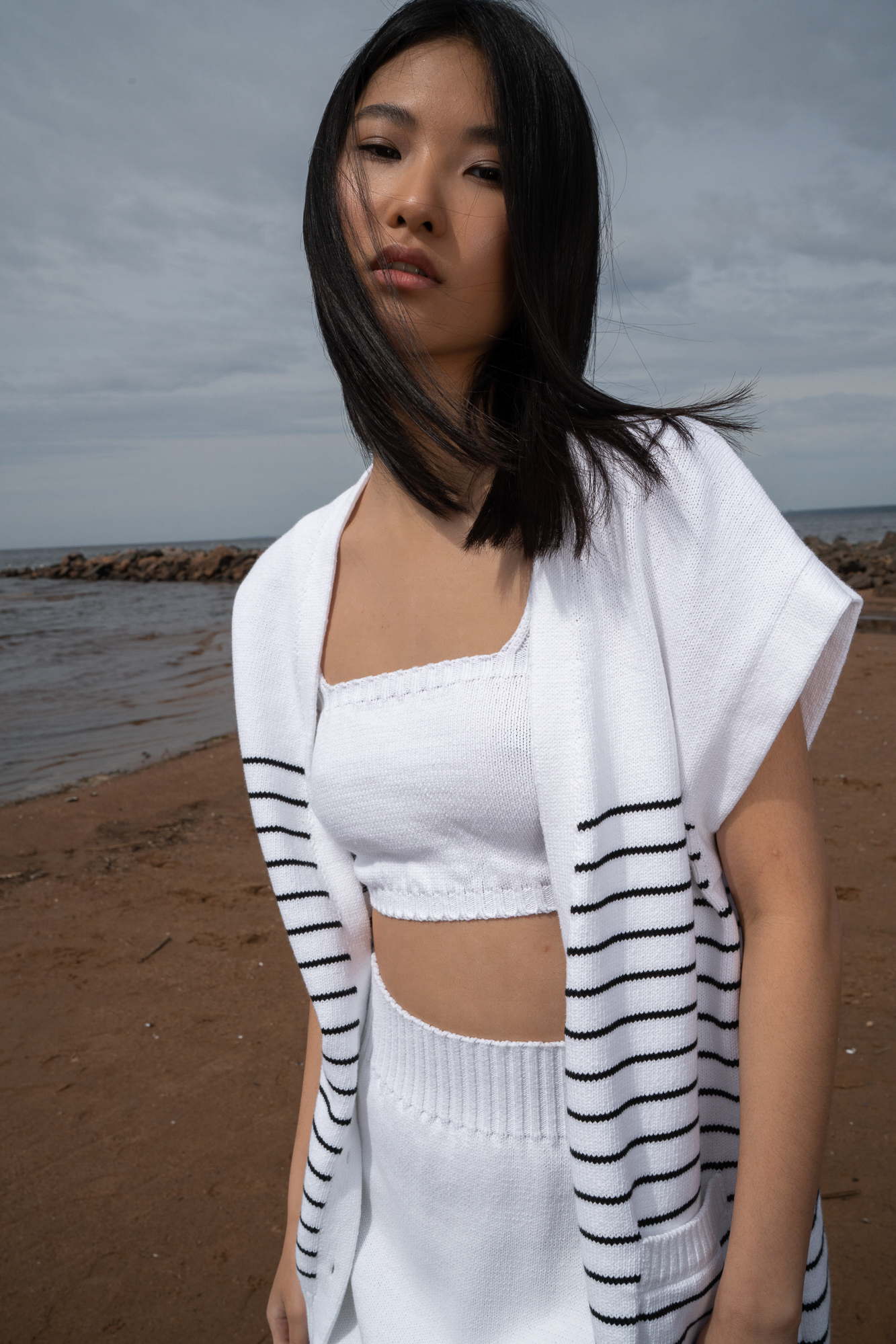 Вязанный хлопковый топ на бретелях.