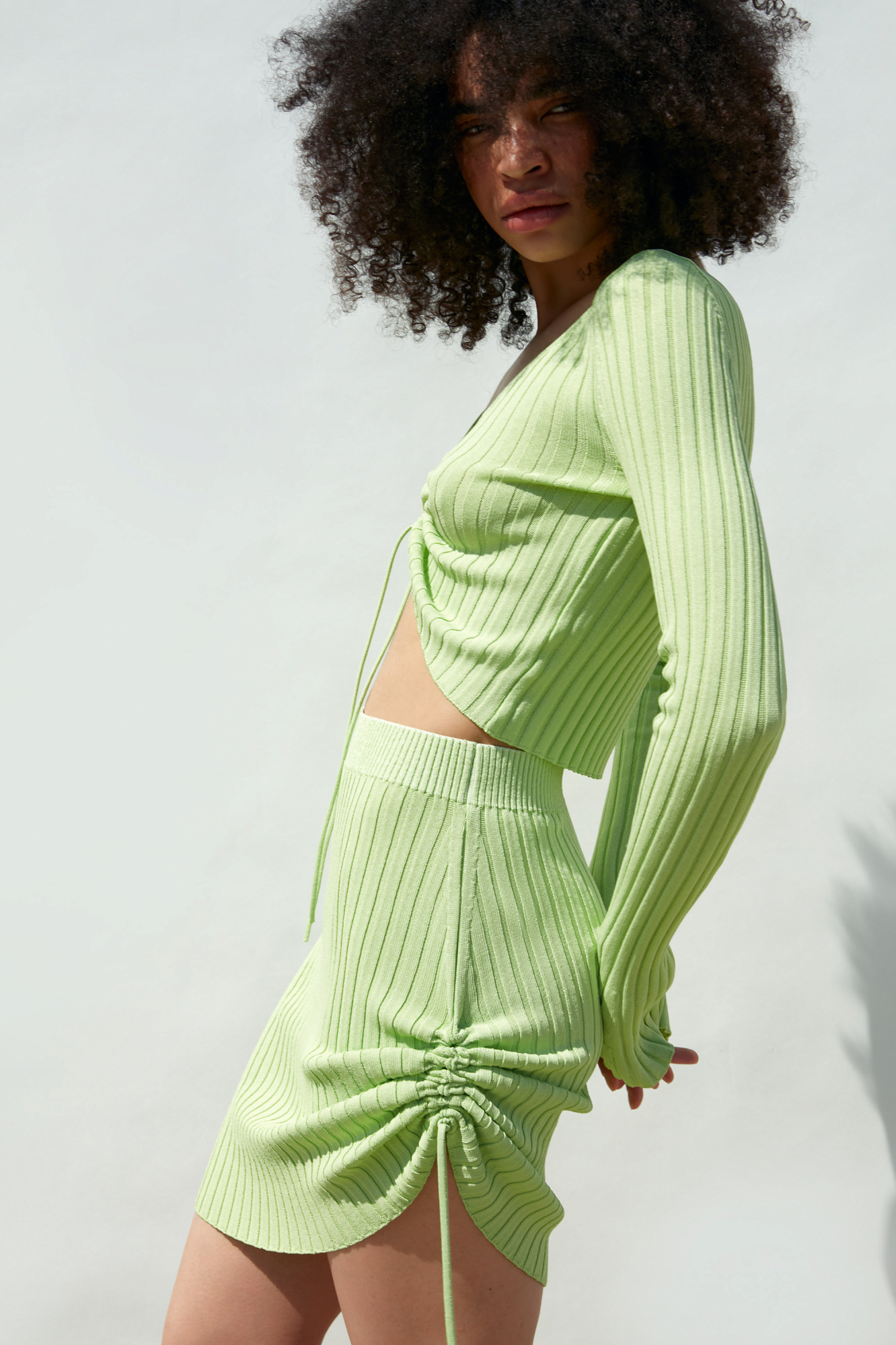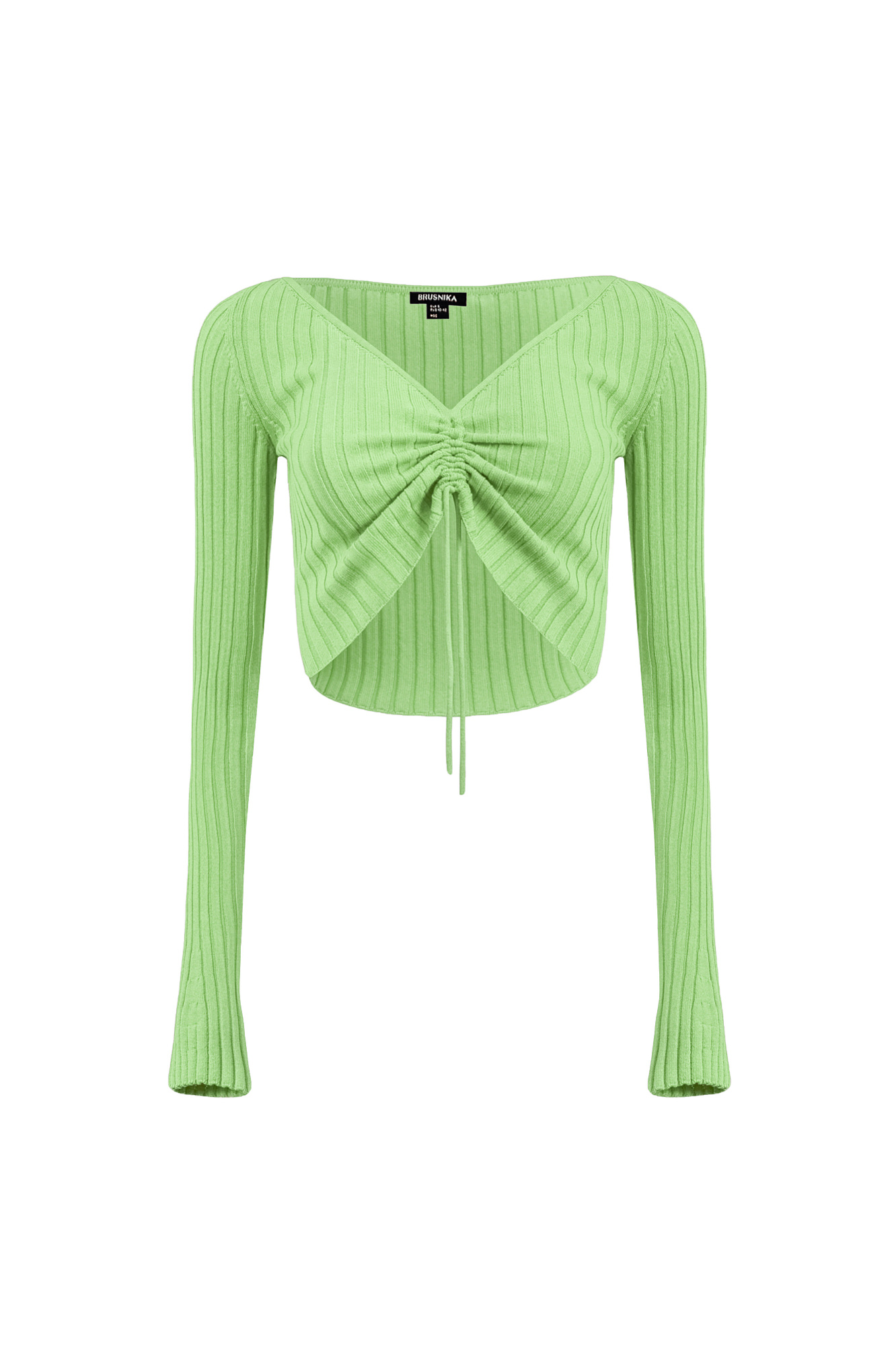 Трикотажный топ из вискозы с длинным рукавом. Модель с V-вырезом и регулируемой кулиской спереди.