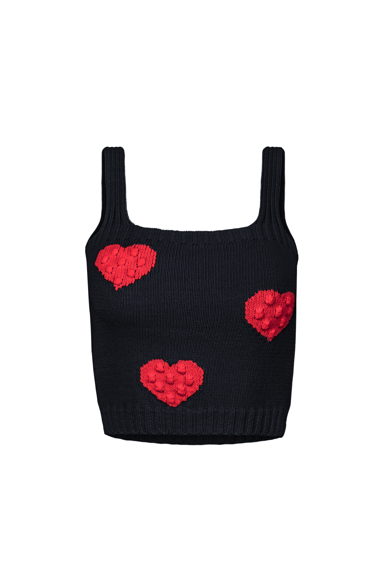 Трикотажный топ из хлопка с фактурными сердцами на бретелях. Края изделия в рубчик.