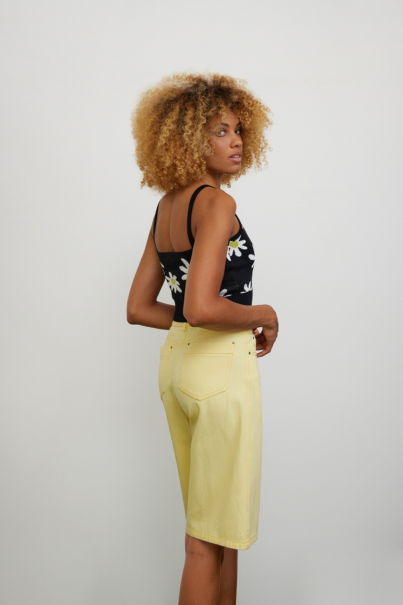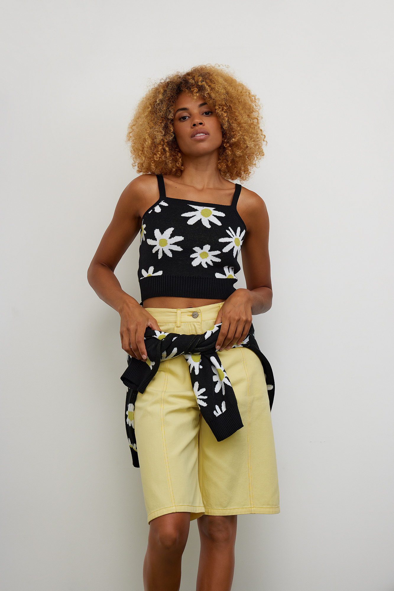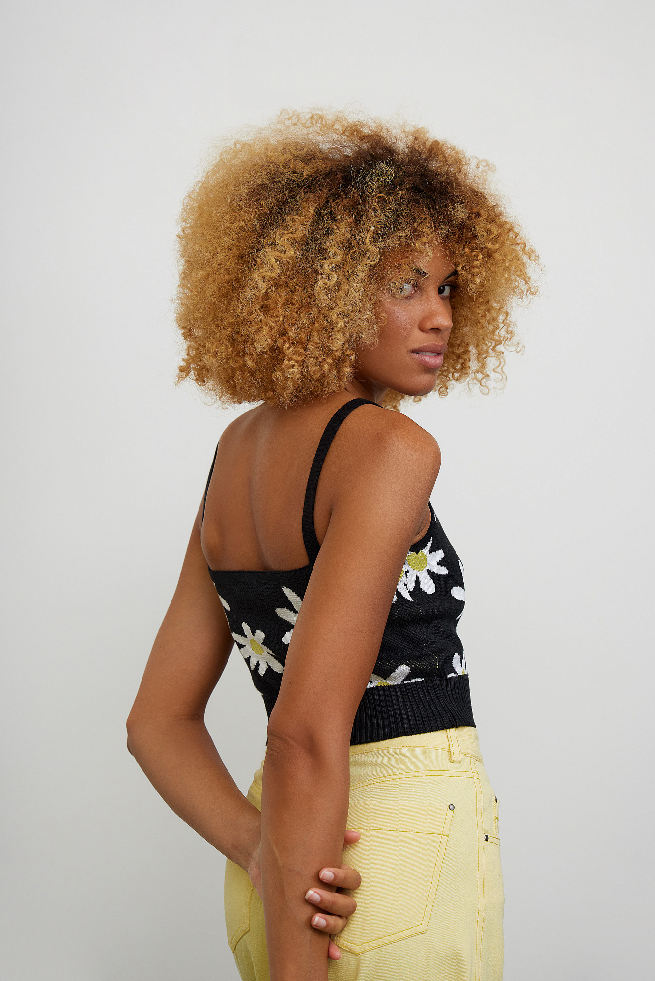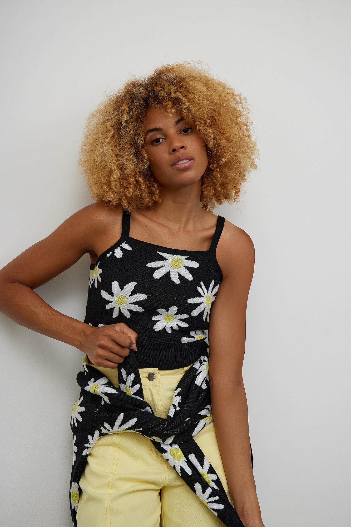 Топ из хлопка на тонких бретелях с рисунком ромашек.