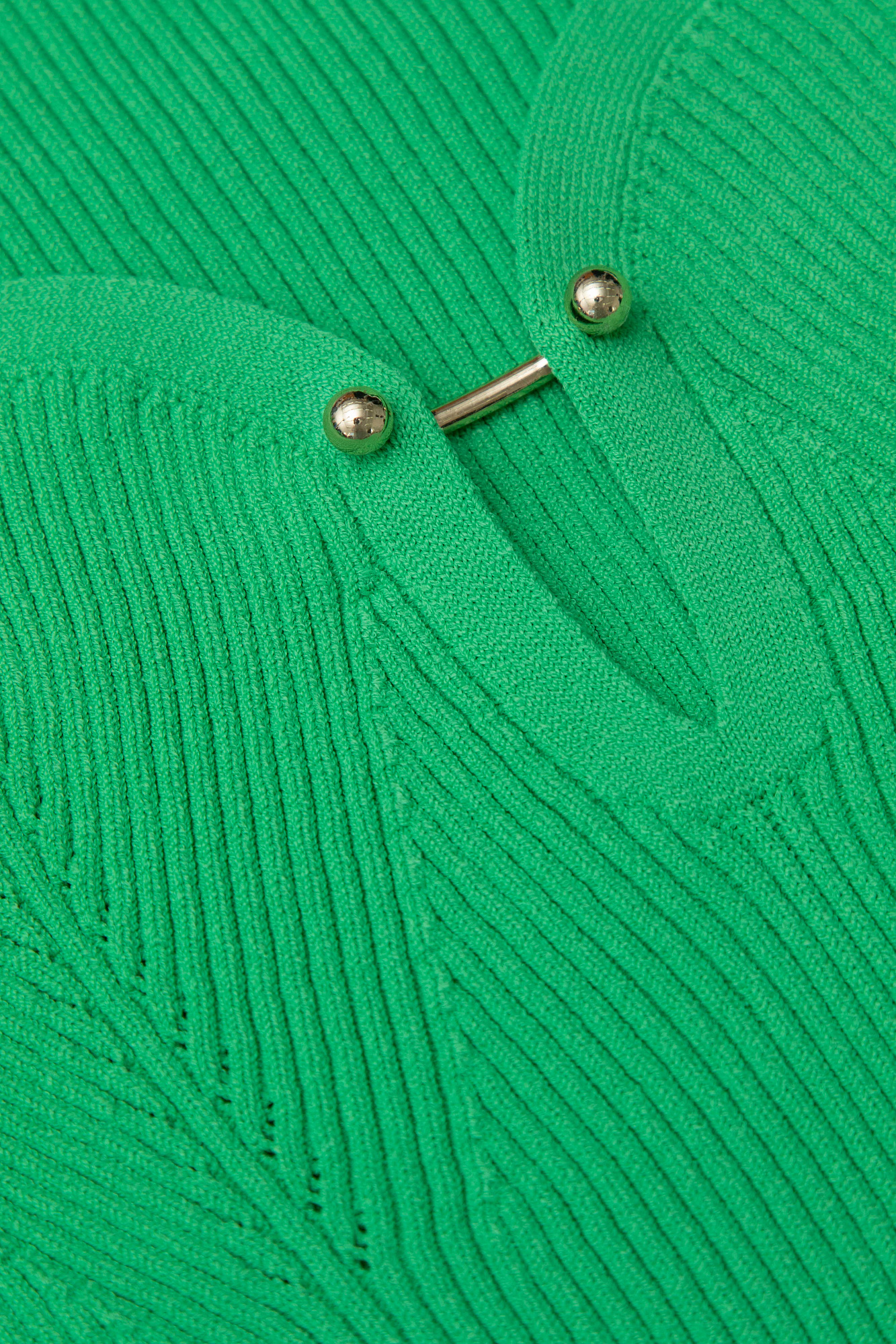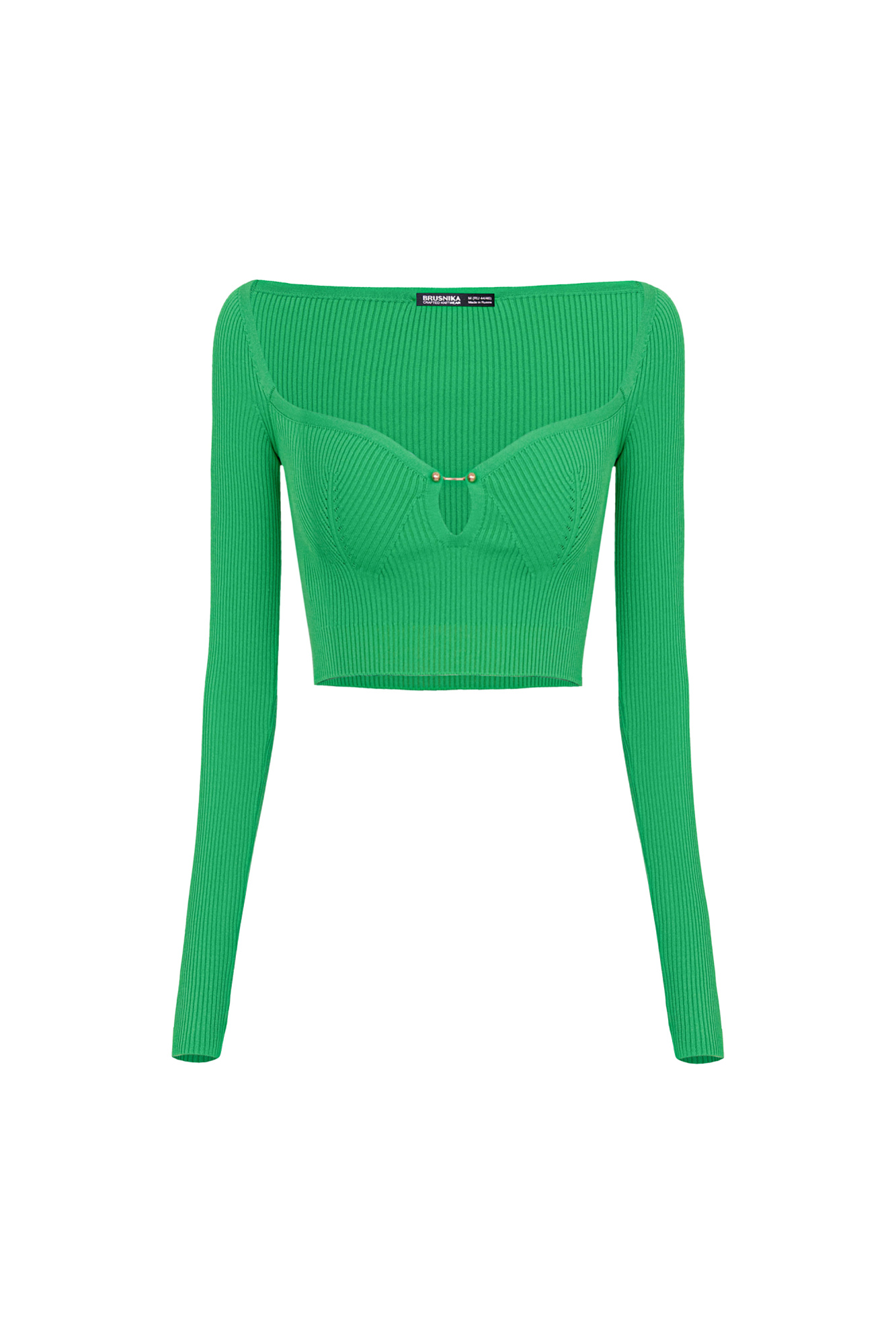 Трикотажный укороченный топ из вискозы в рубчик. Модель по фигуре с глубоким декольте и с декоративным элементом на лифе. Отлично сочетается с трикотажной юбкой из этой же коллекции.