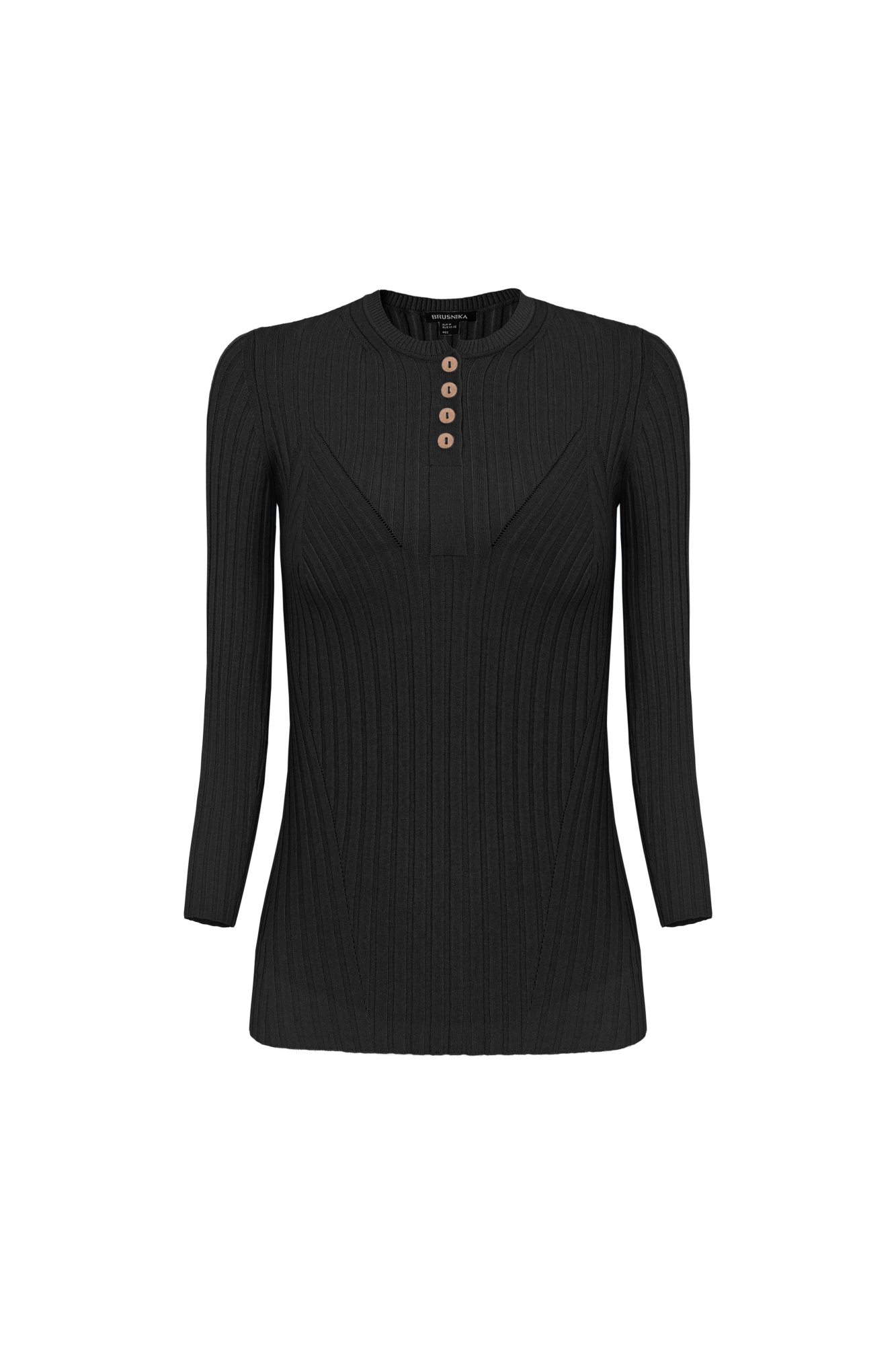 Топ из мягкой вискозы в рубчик. Модель приталенного силуэта с круглой горловиной и пуговицами.