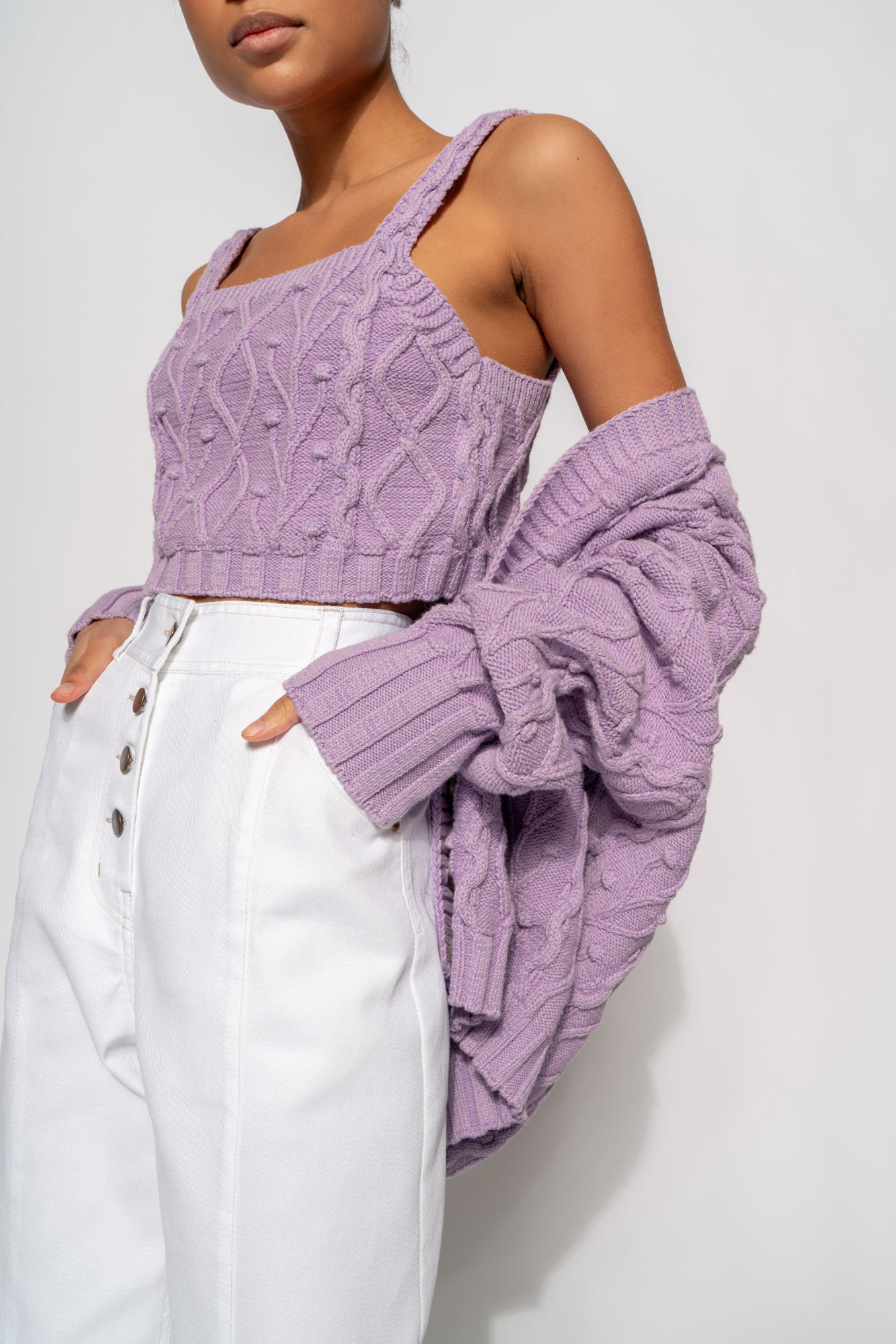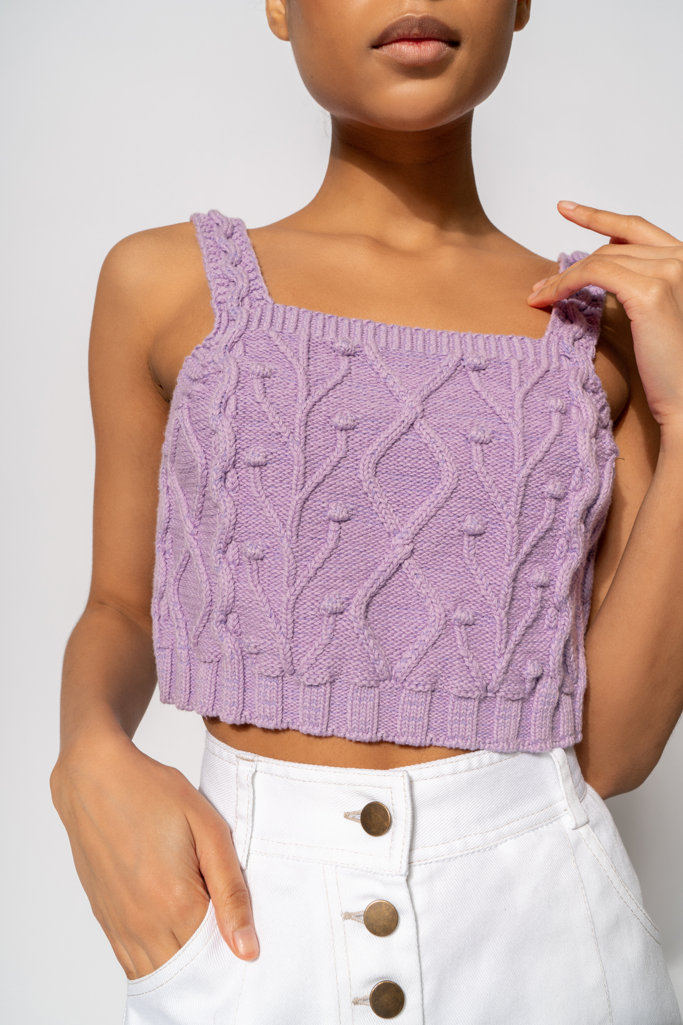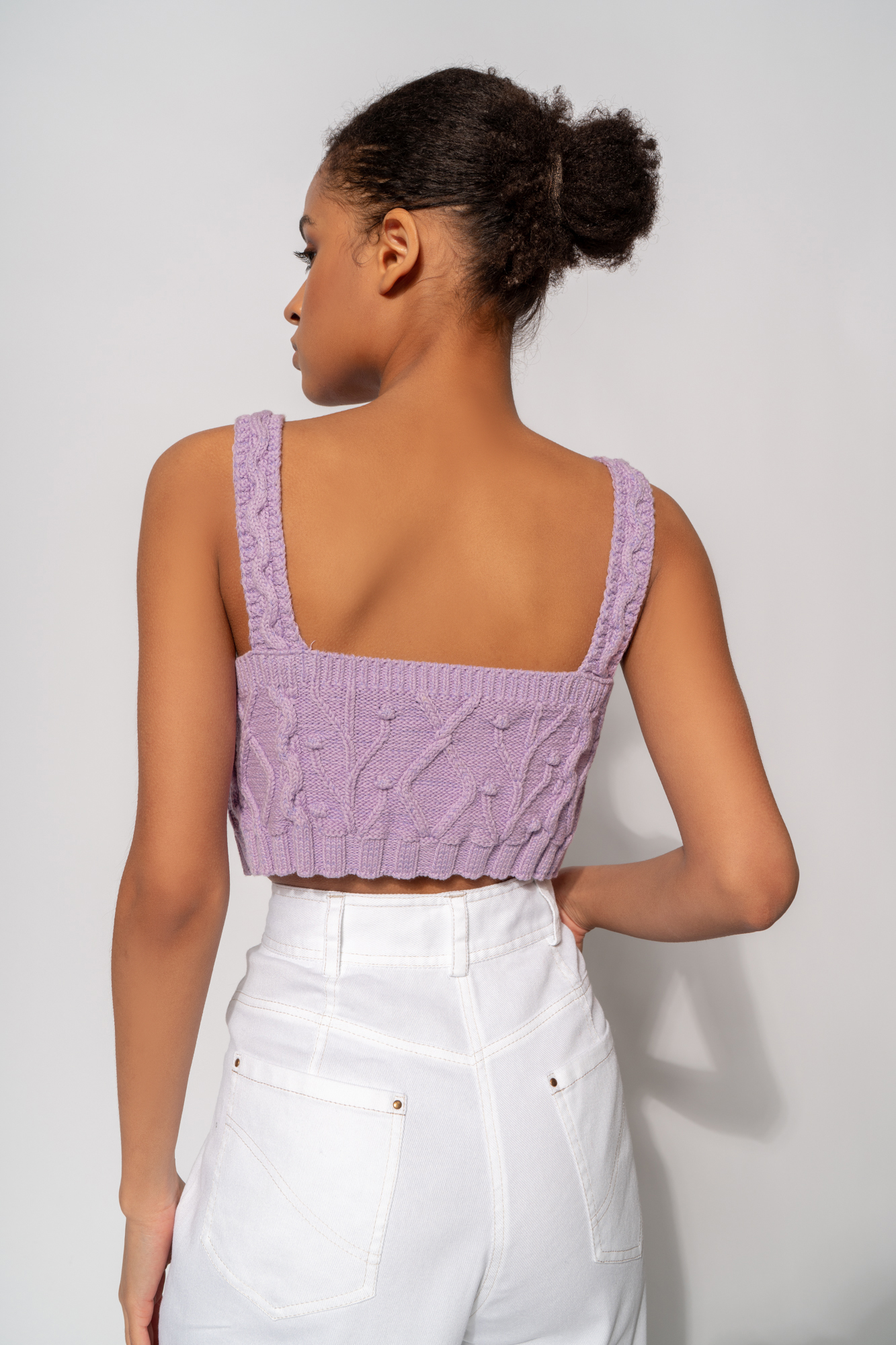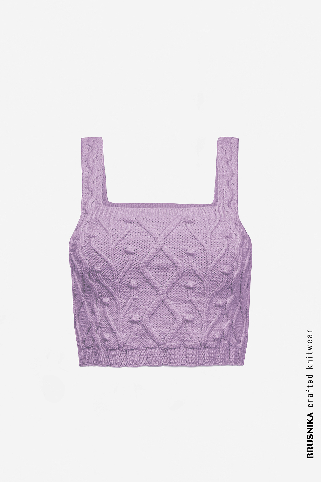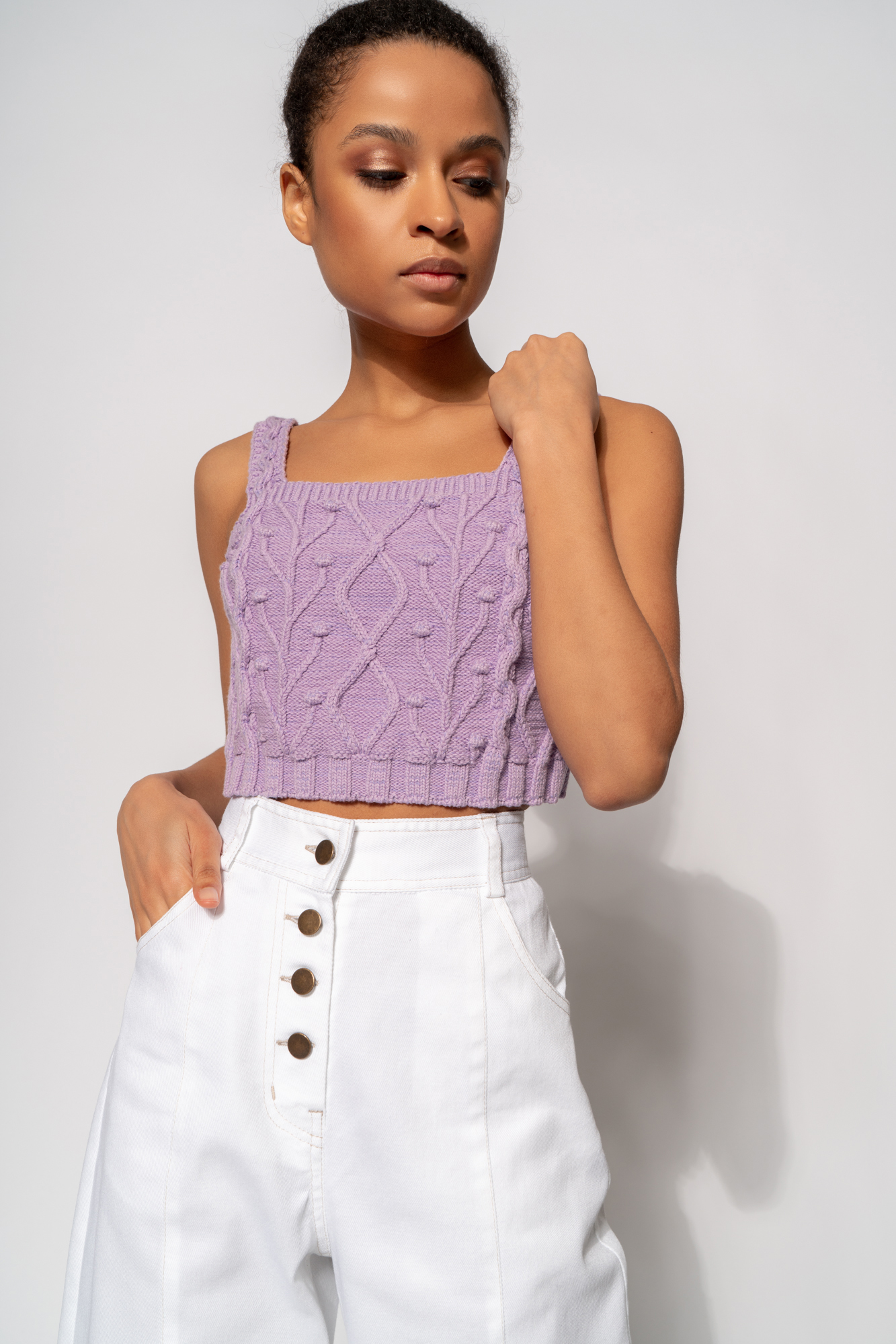 Фактурный хлопковый кроп-топ на широких лямках сочетается как с брюками, так и с юбками.