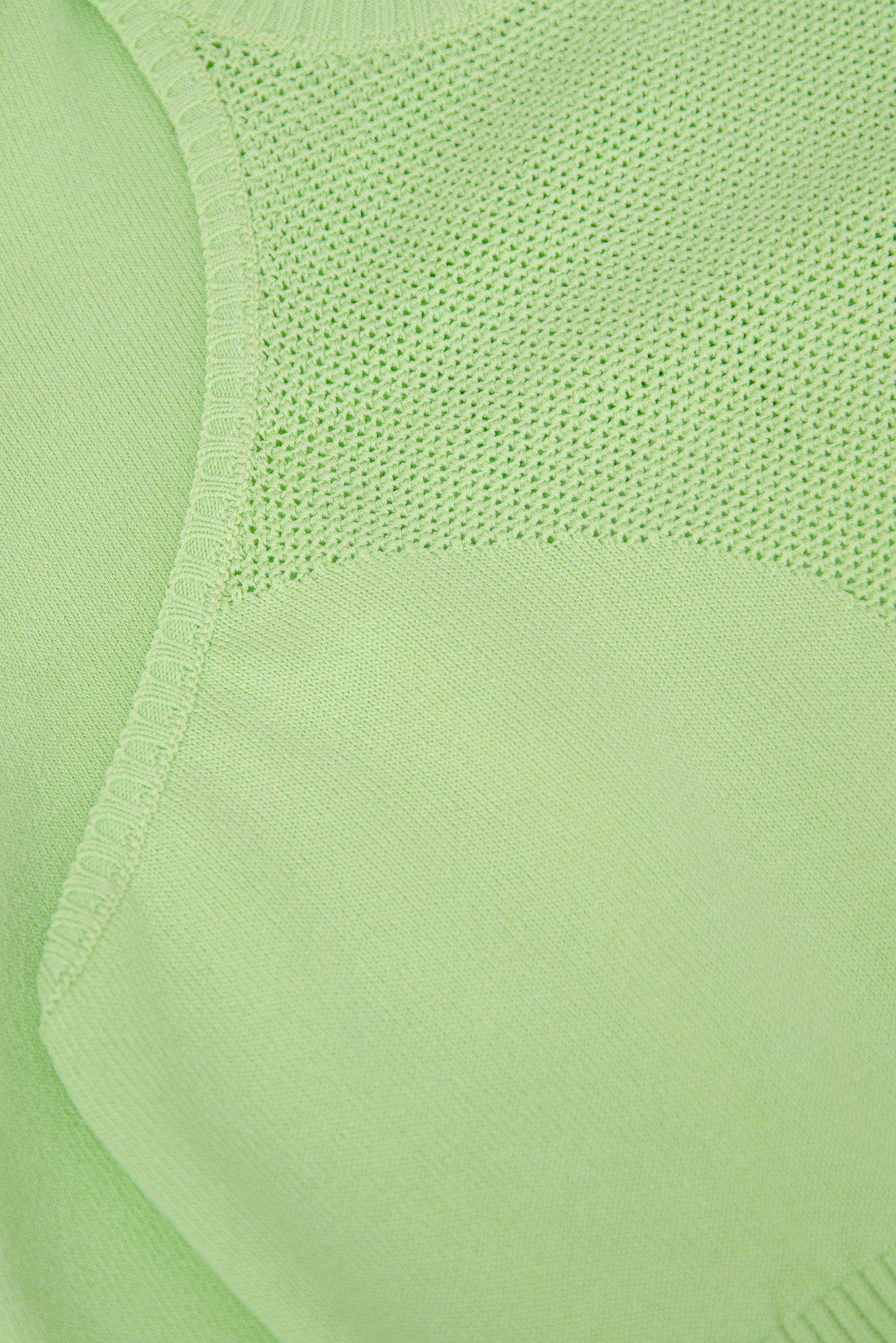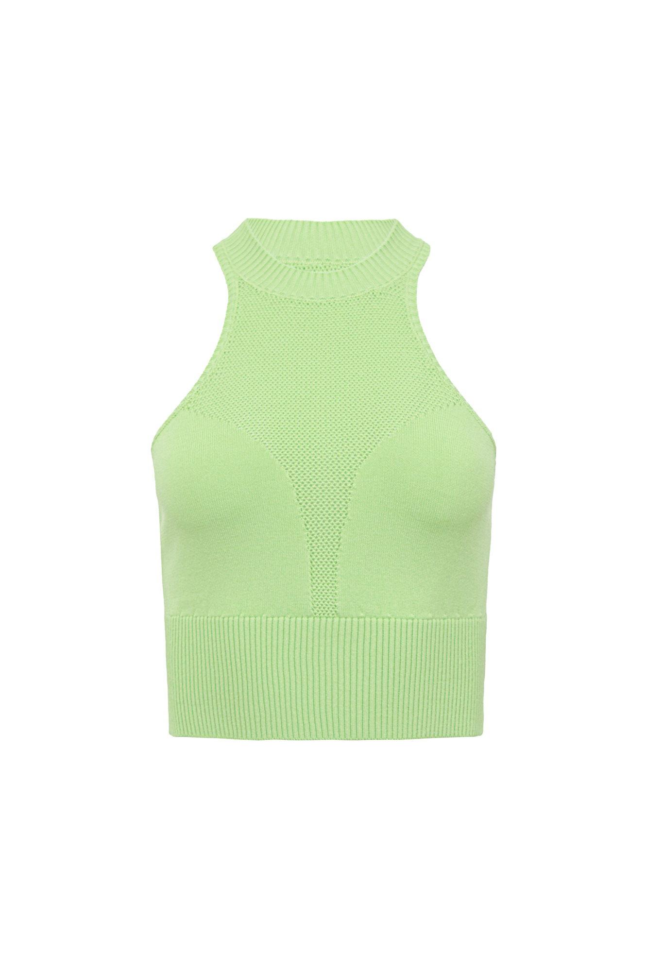 Спортивный топ из вискозы с акцентом на зону декольте. Модель приталенного силуэта, с глубокой проймой и широким поясом в рубчик.