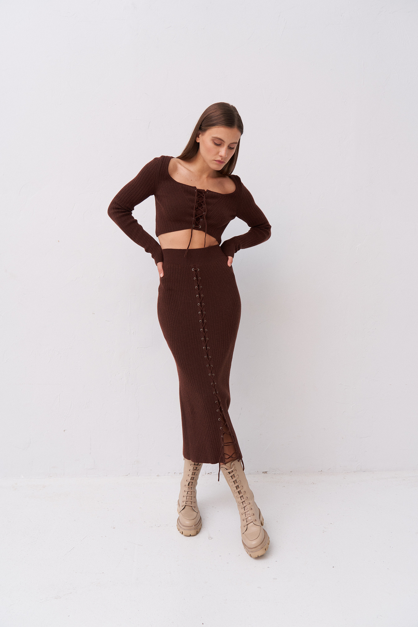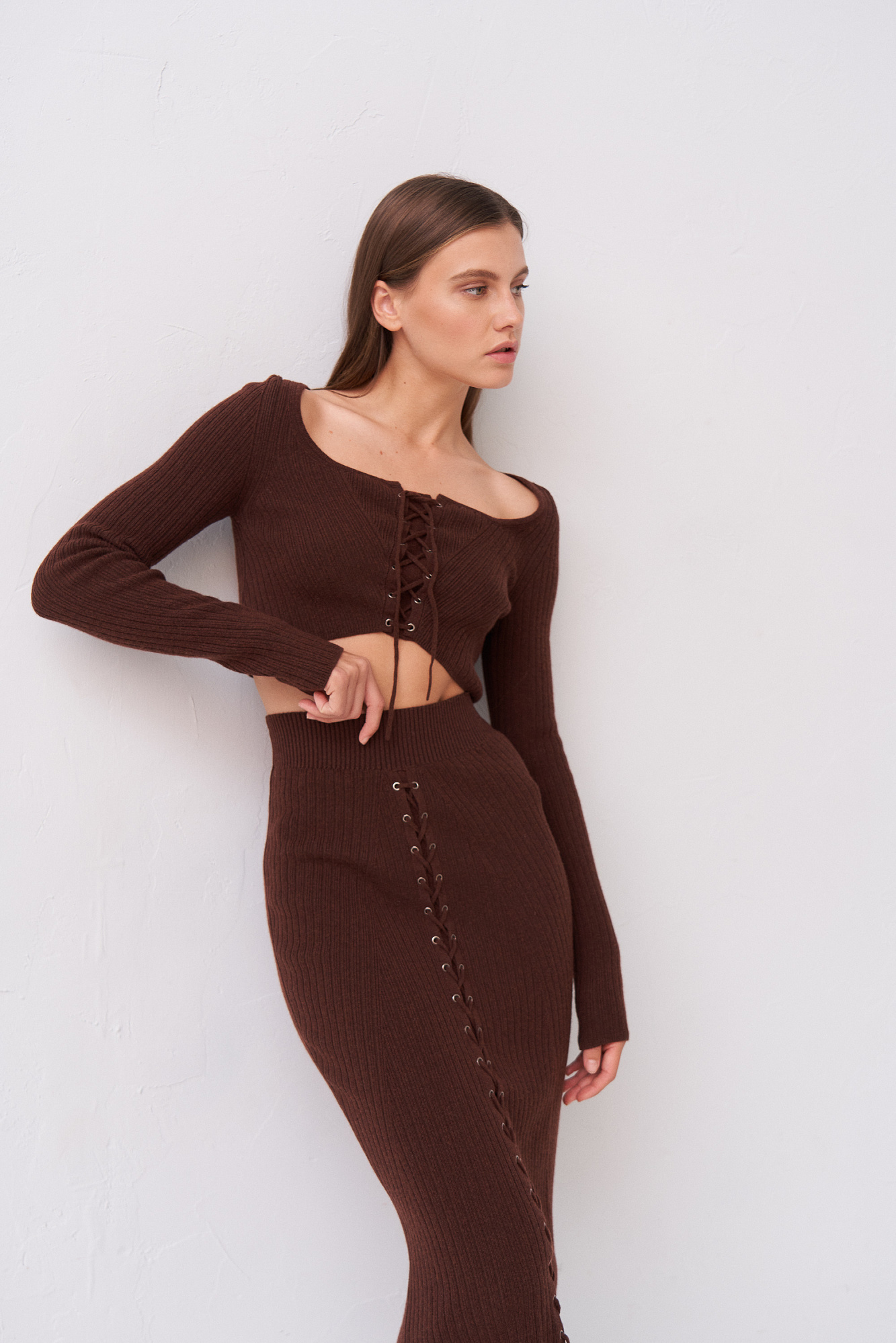 Кашемировый топ с длинным рукавом и шнуровкой.