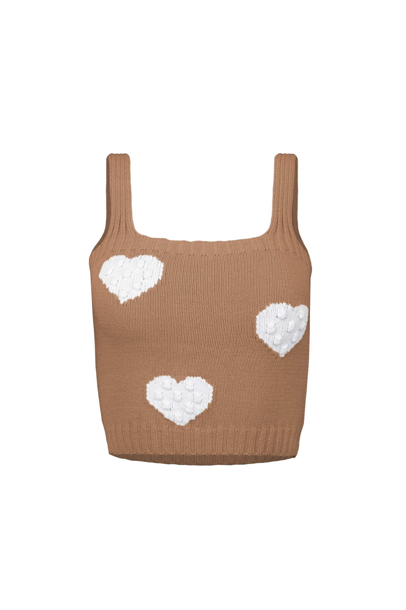Трикотажный топ из хлопка с фактурными сердцами на бретелях. Края изделия в рубчик.