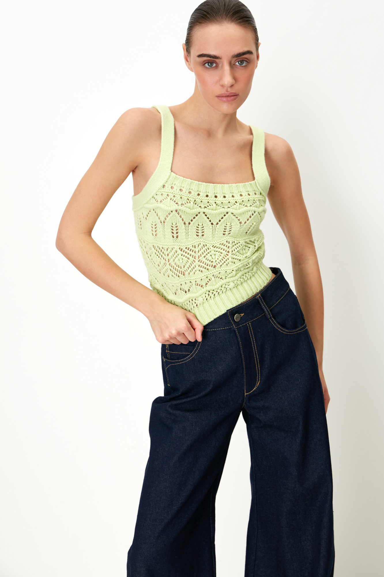 Ажурный топ с добавлением шерсти альпака с квадратным вырезом на широких бретелях.