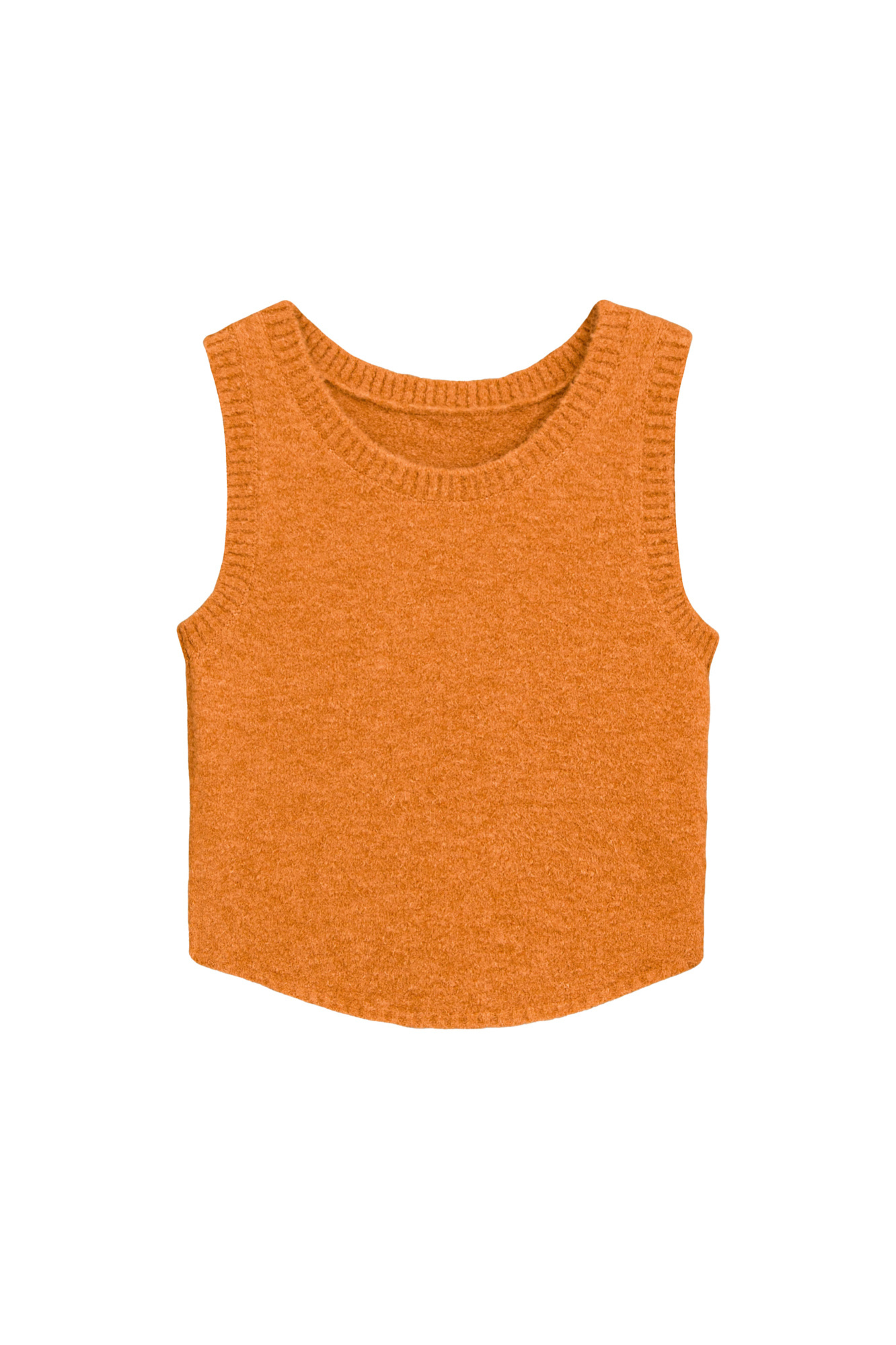 Укороченный трикотажный топ из шерсти с круглым вырезом. Края изделия в рубчик.